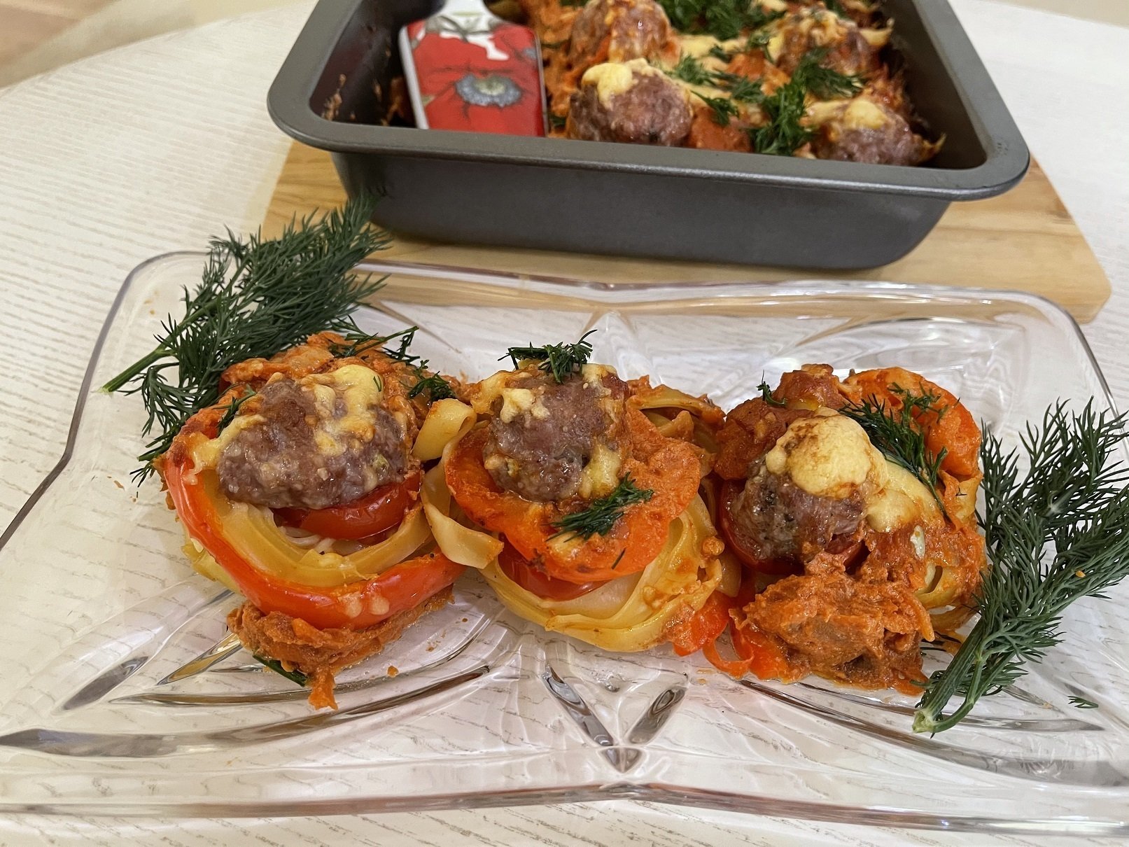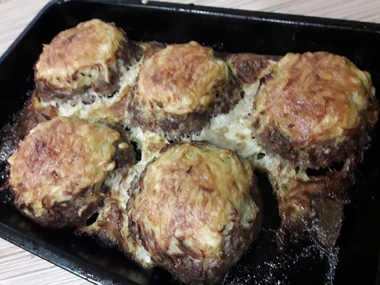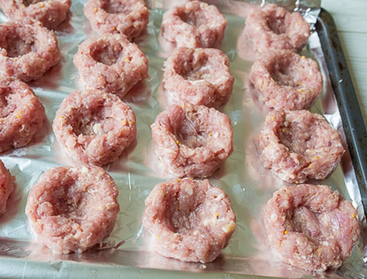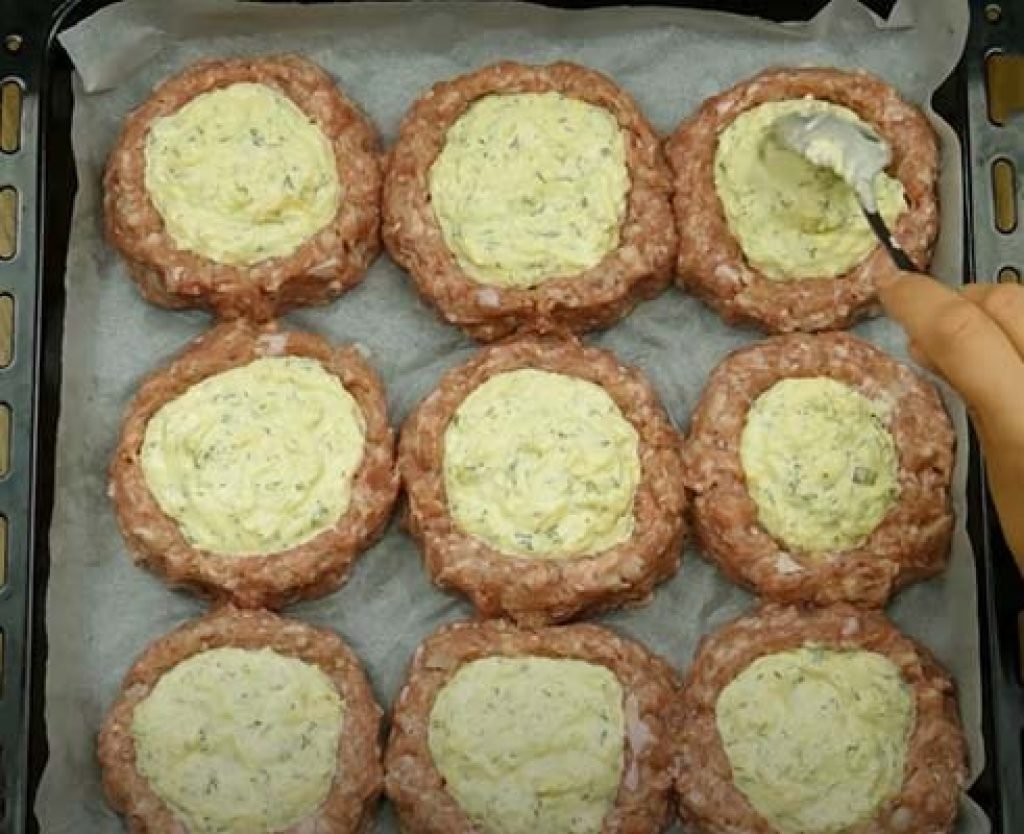 Гнёзда с фаршем в духовке и перепелиными яйцами