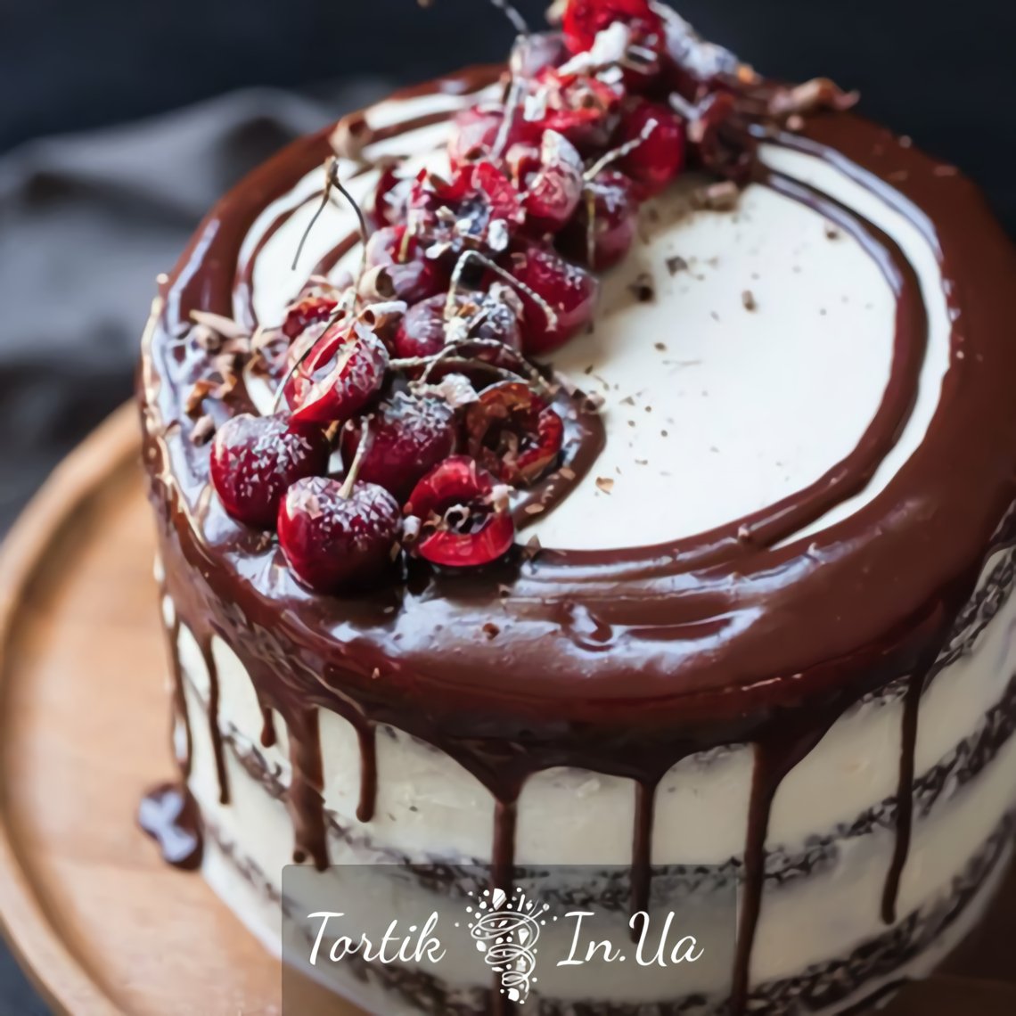 Торт с шоколадными коржами и вишней