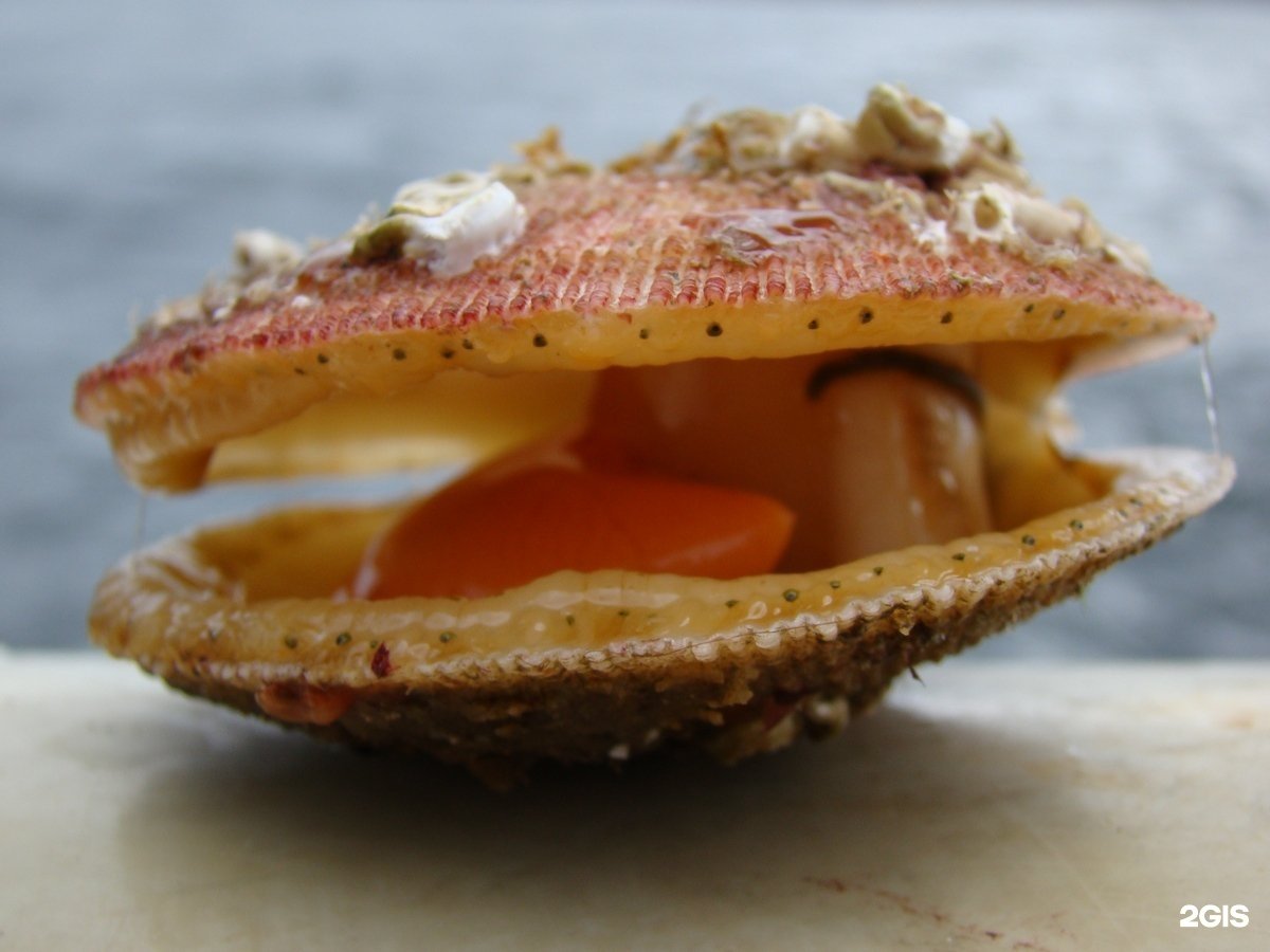 Гребешок с икрой на раковине