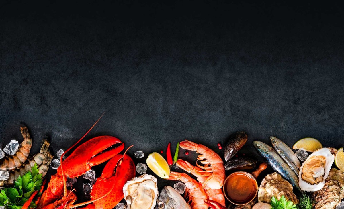 Морепродукты на темном фоне