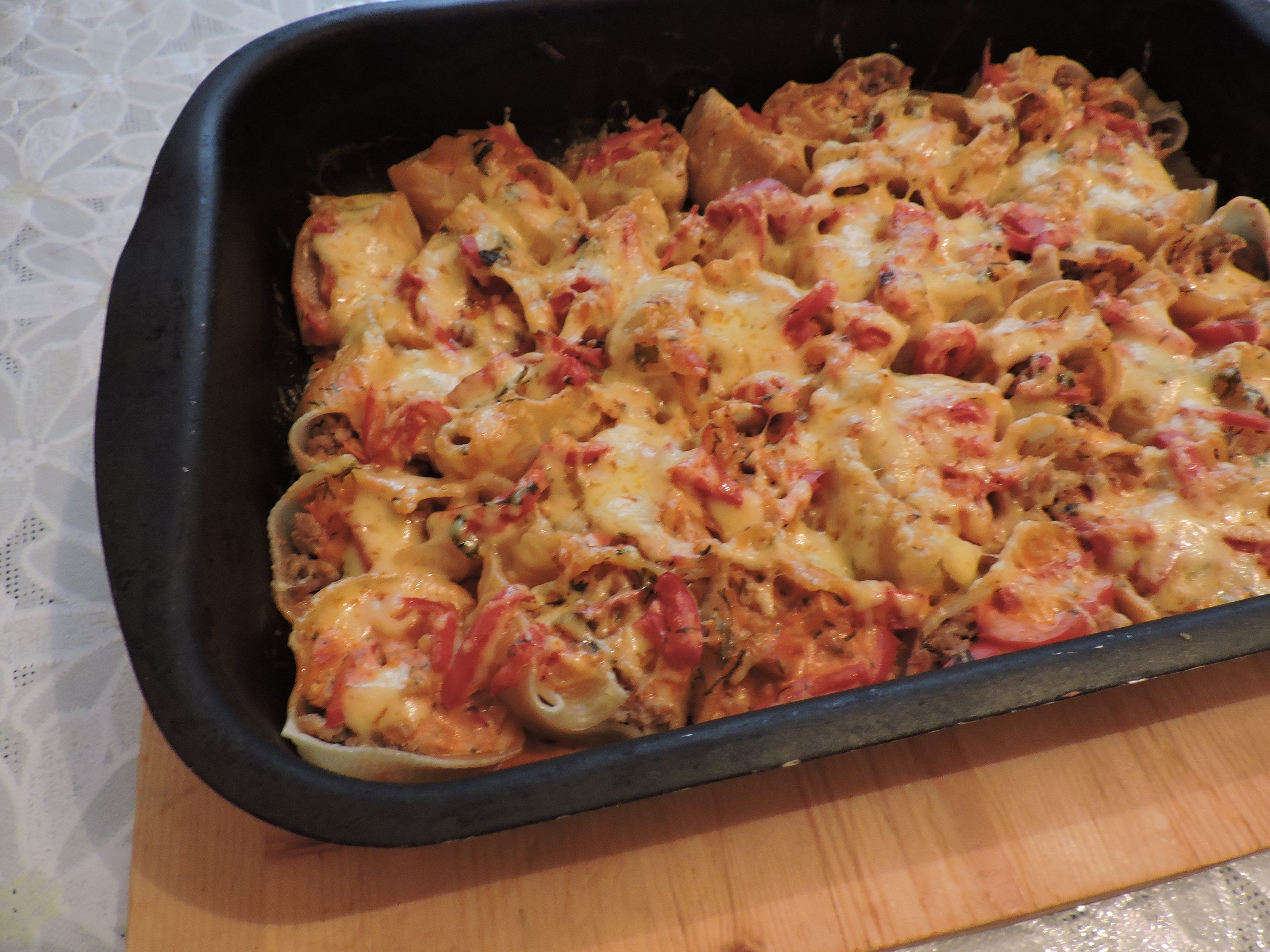 Крупные макароны фаршированные фаршем в духовке