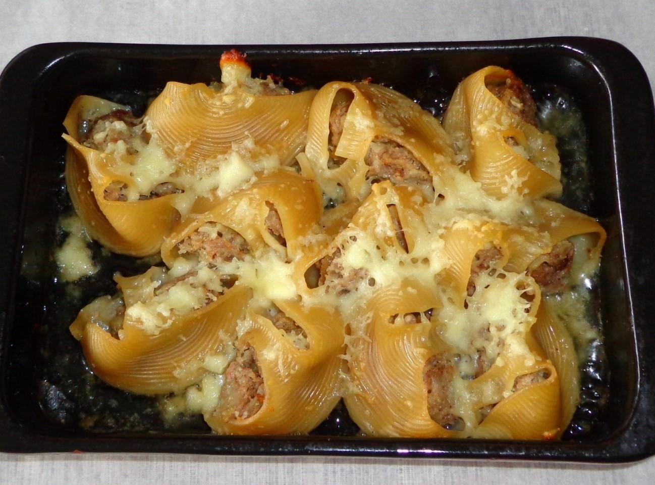 Ракушки с фаршем в духовке