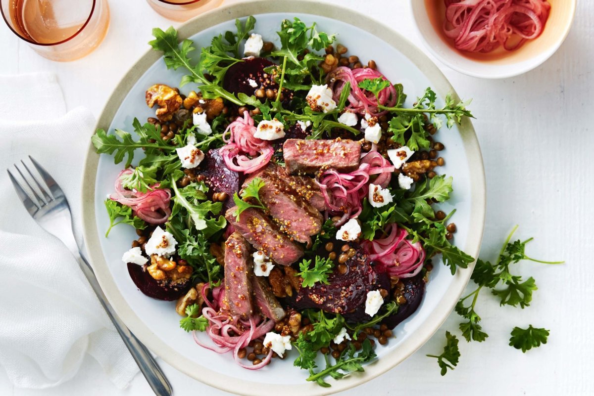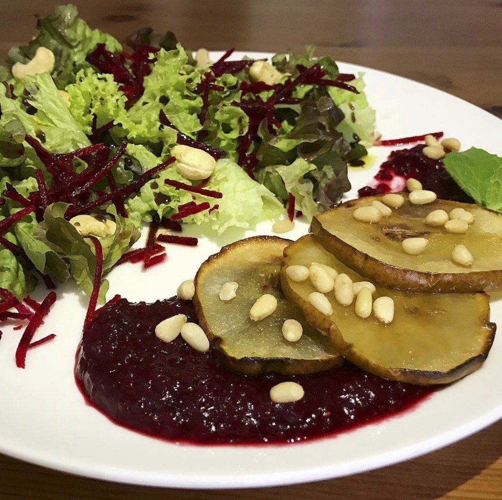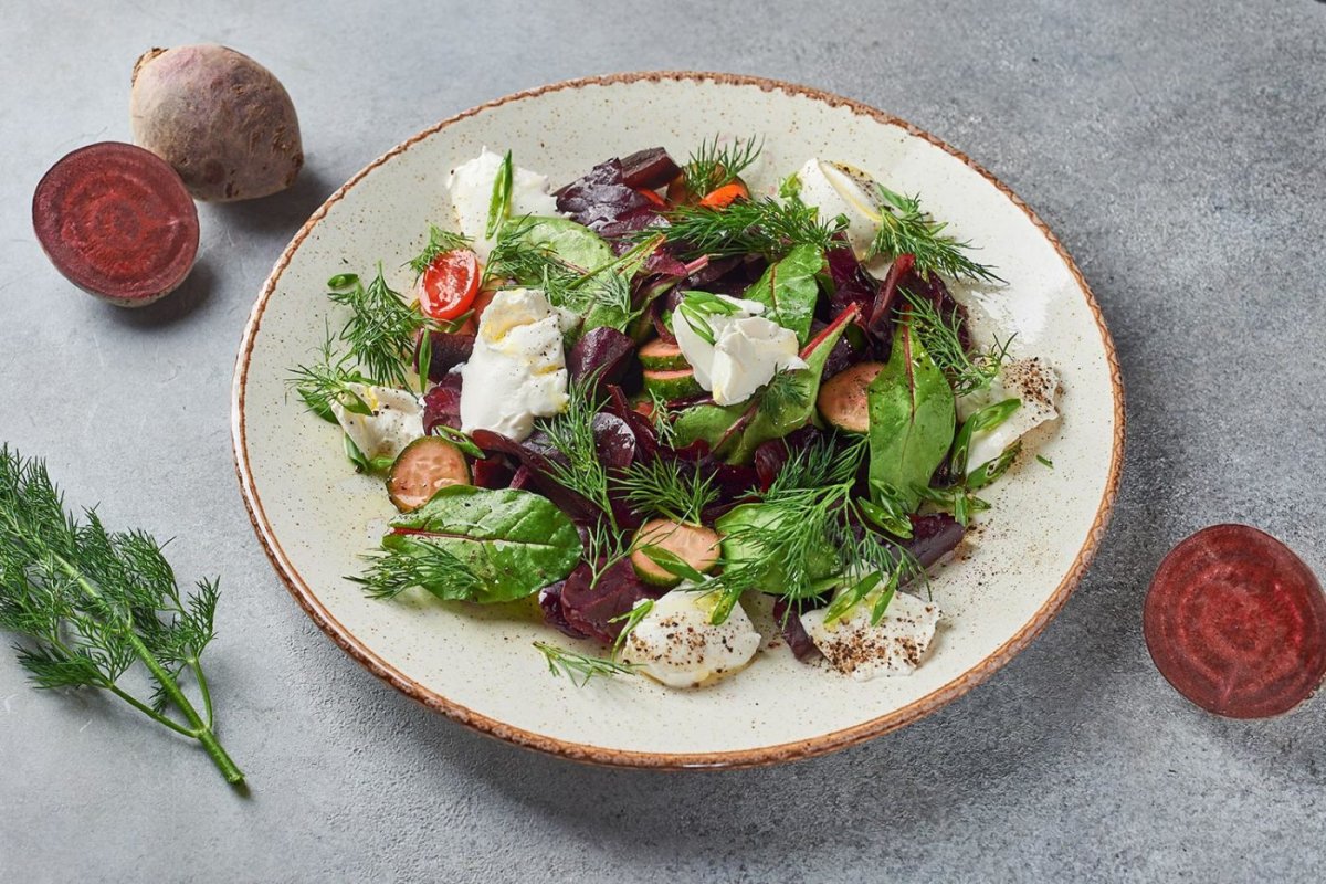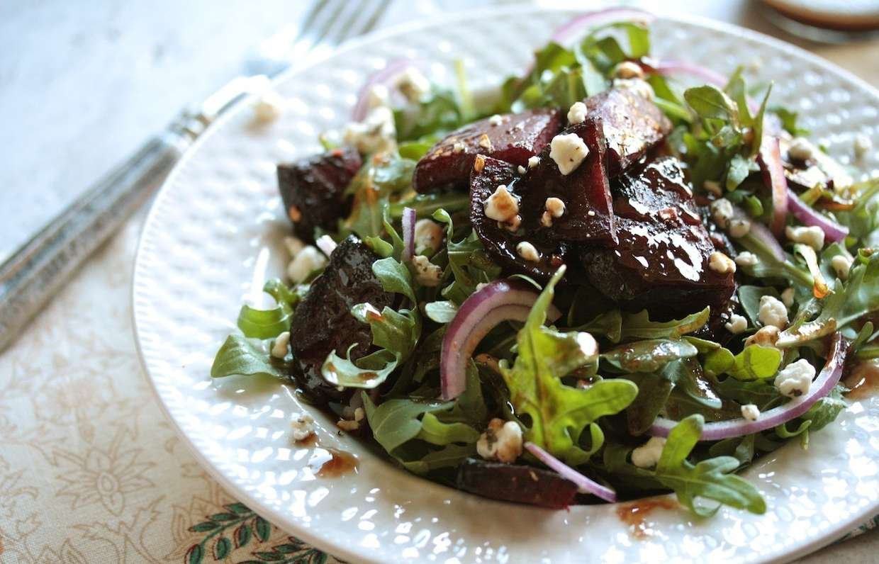 Салат руккола свекла кедровые орешки Фета бальзамический