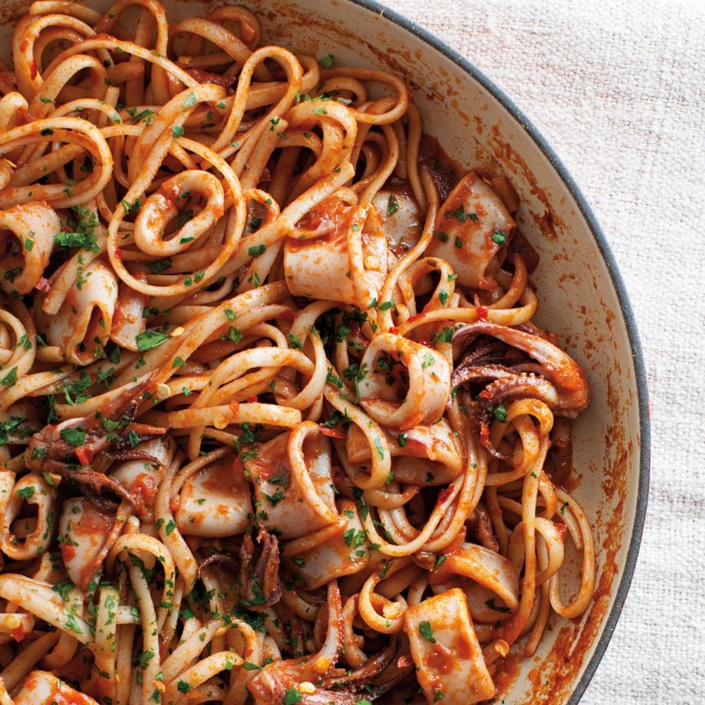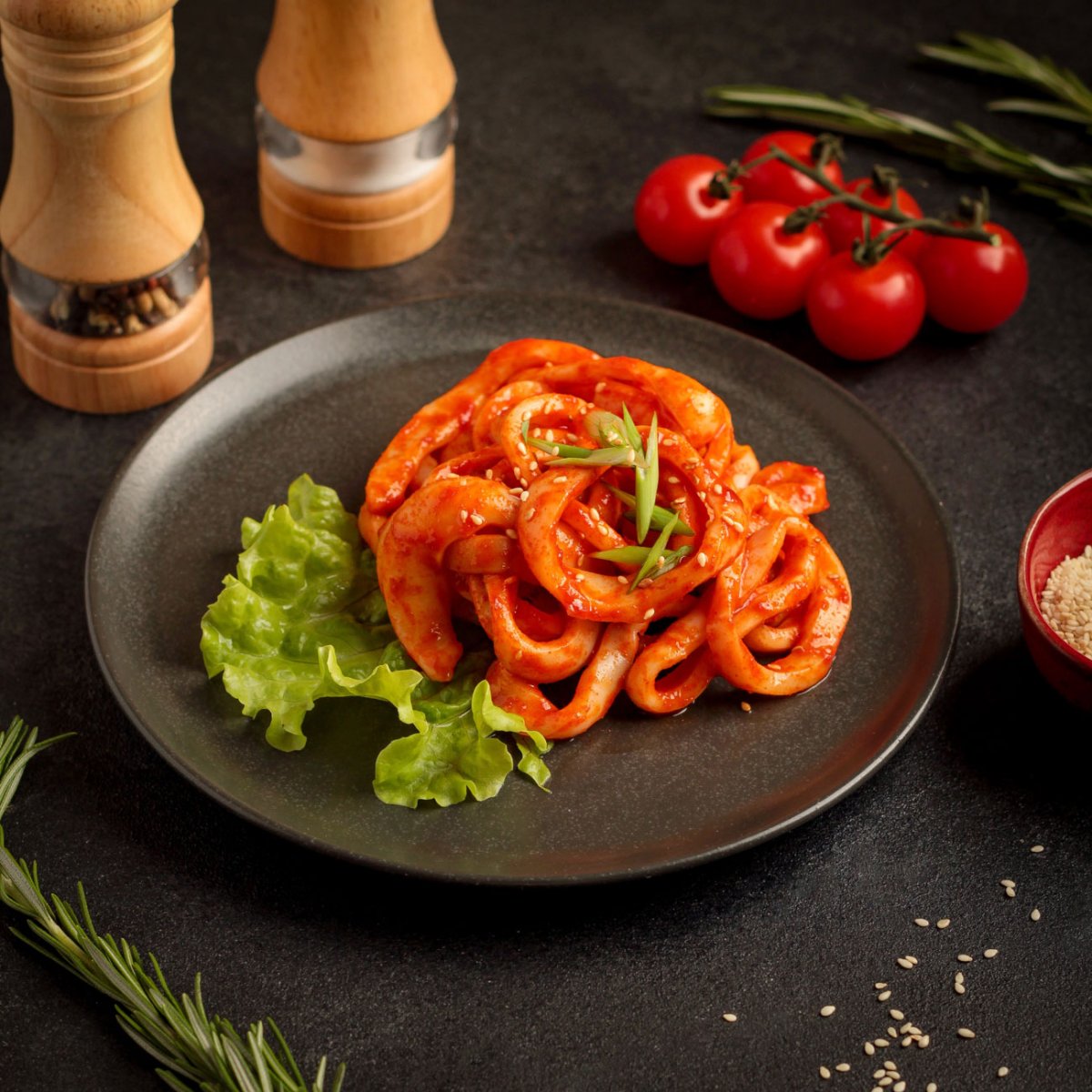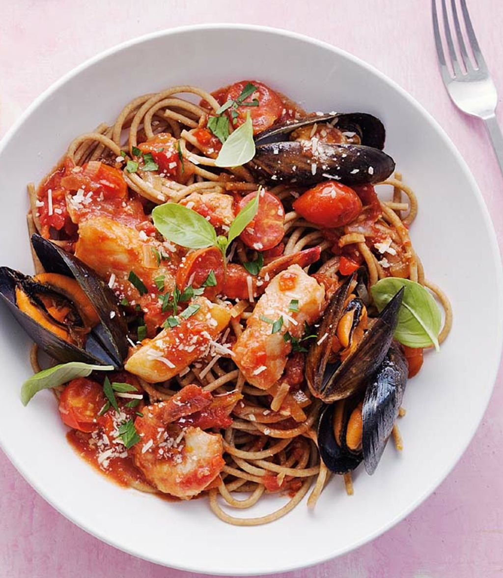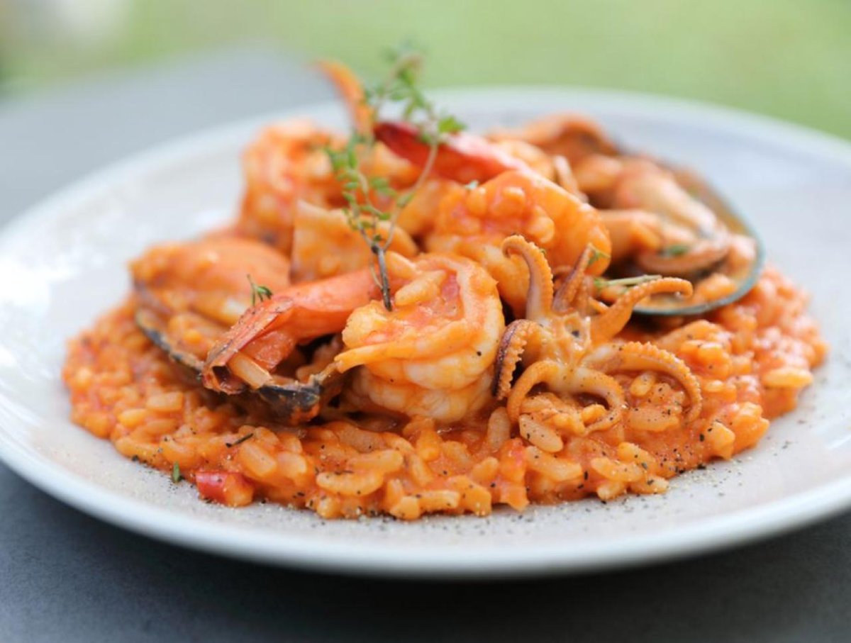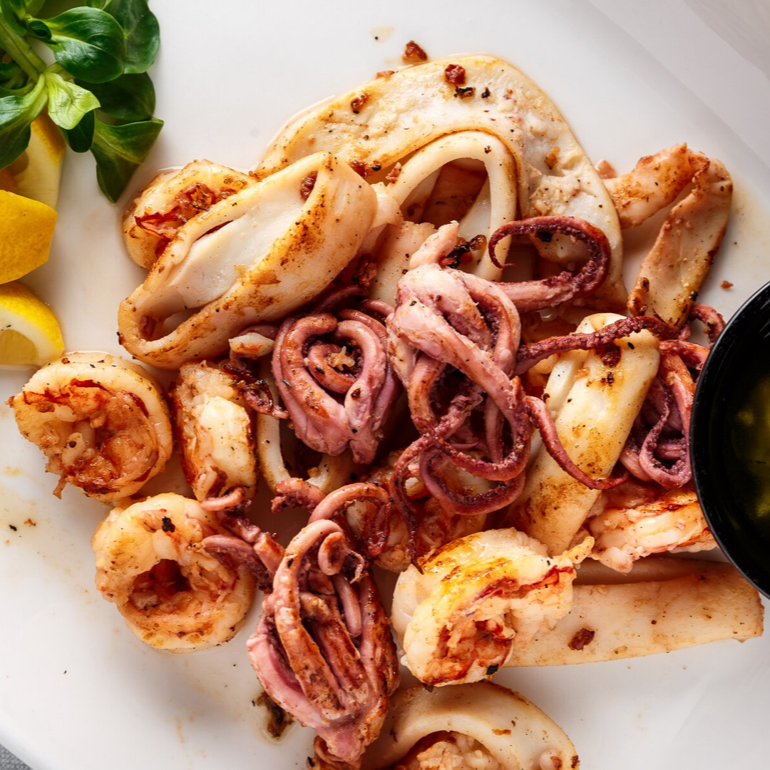 Паккери с креветками и кальмарами в сливочно-томатном соусе
