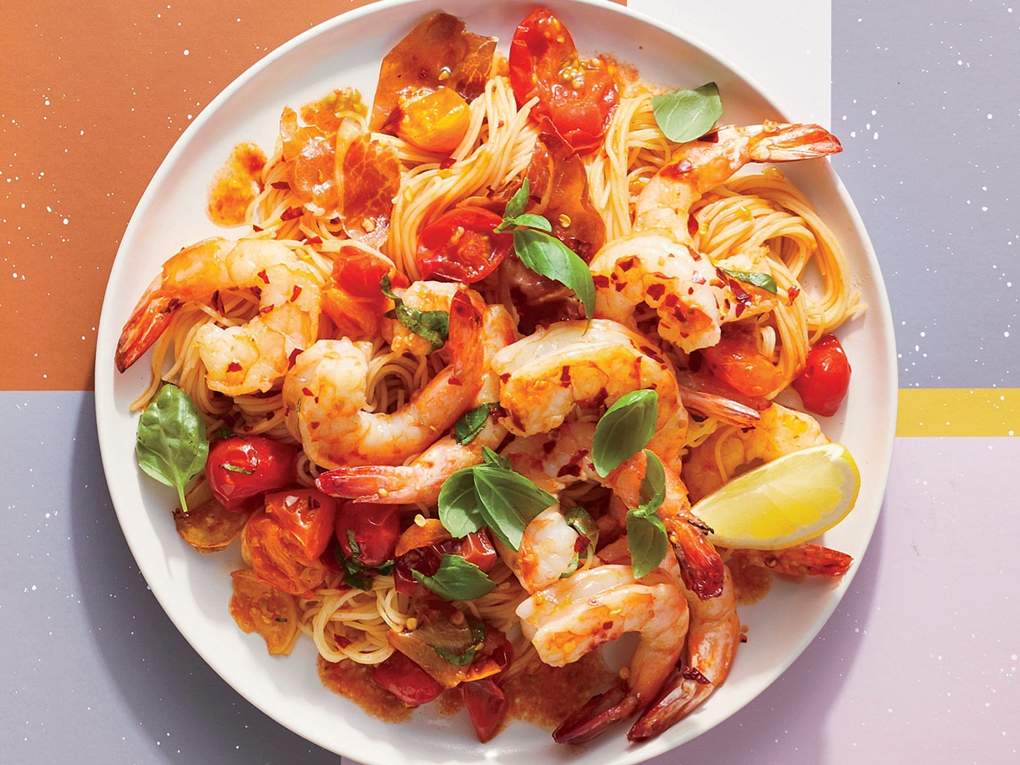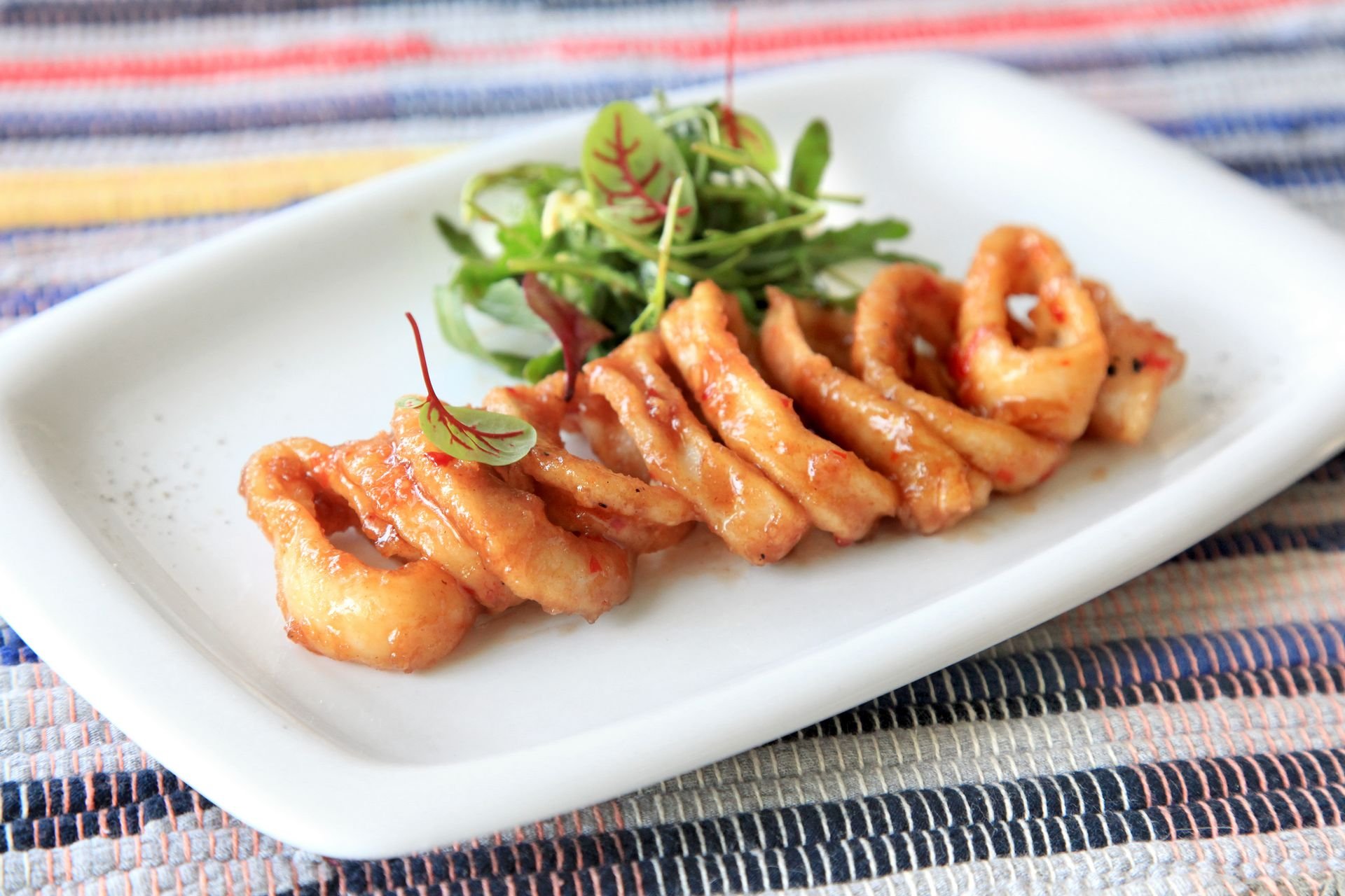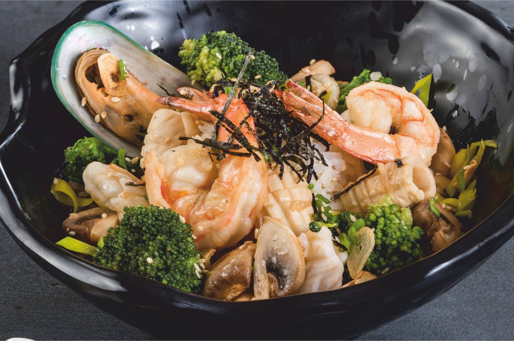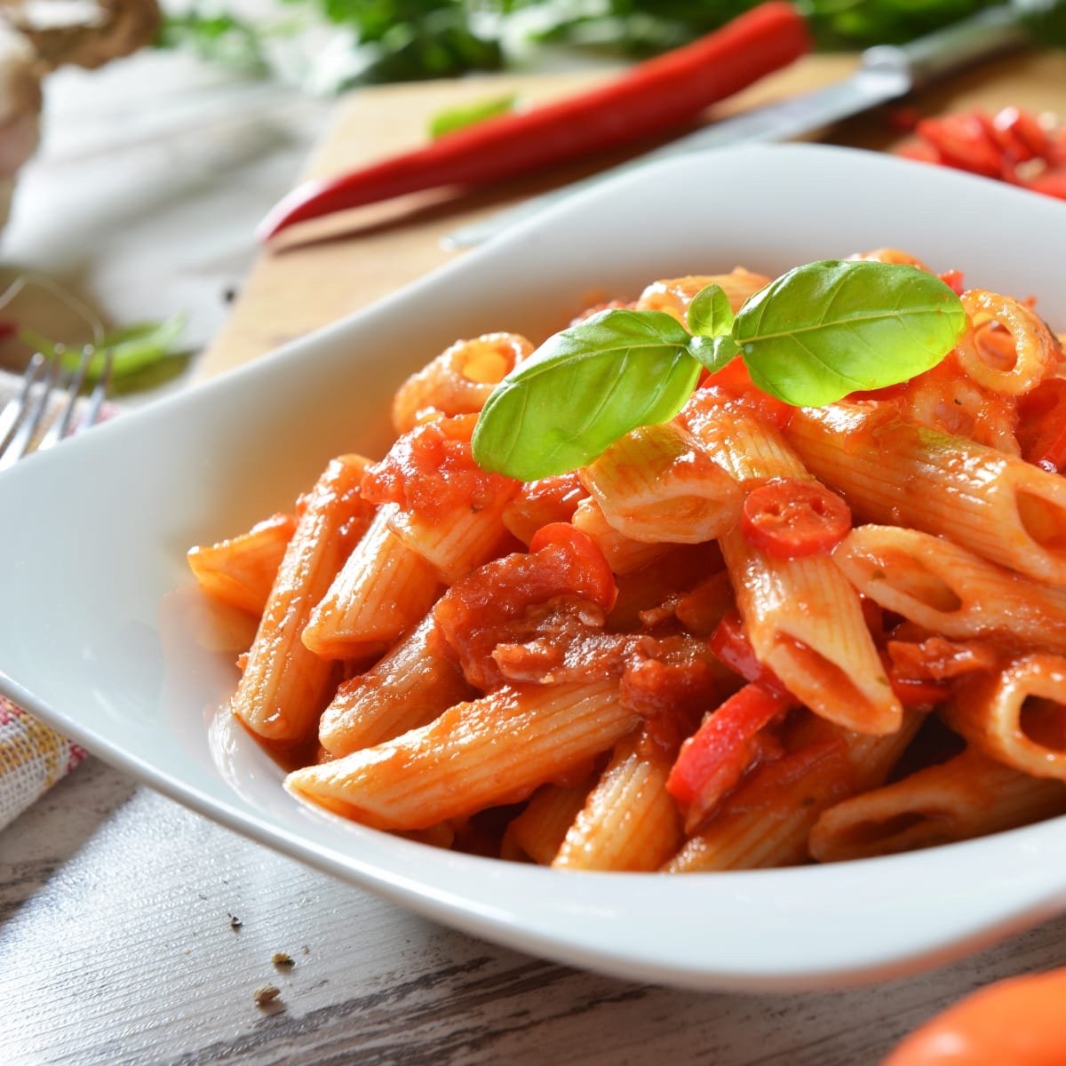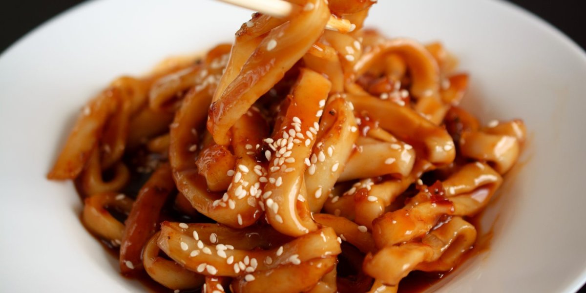 Паккери с креветками и кальмарами в сливочно-томатном соусе
