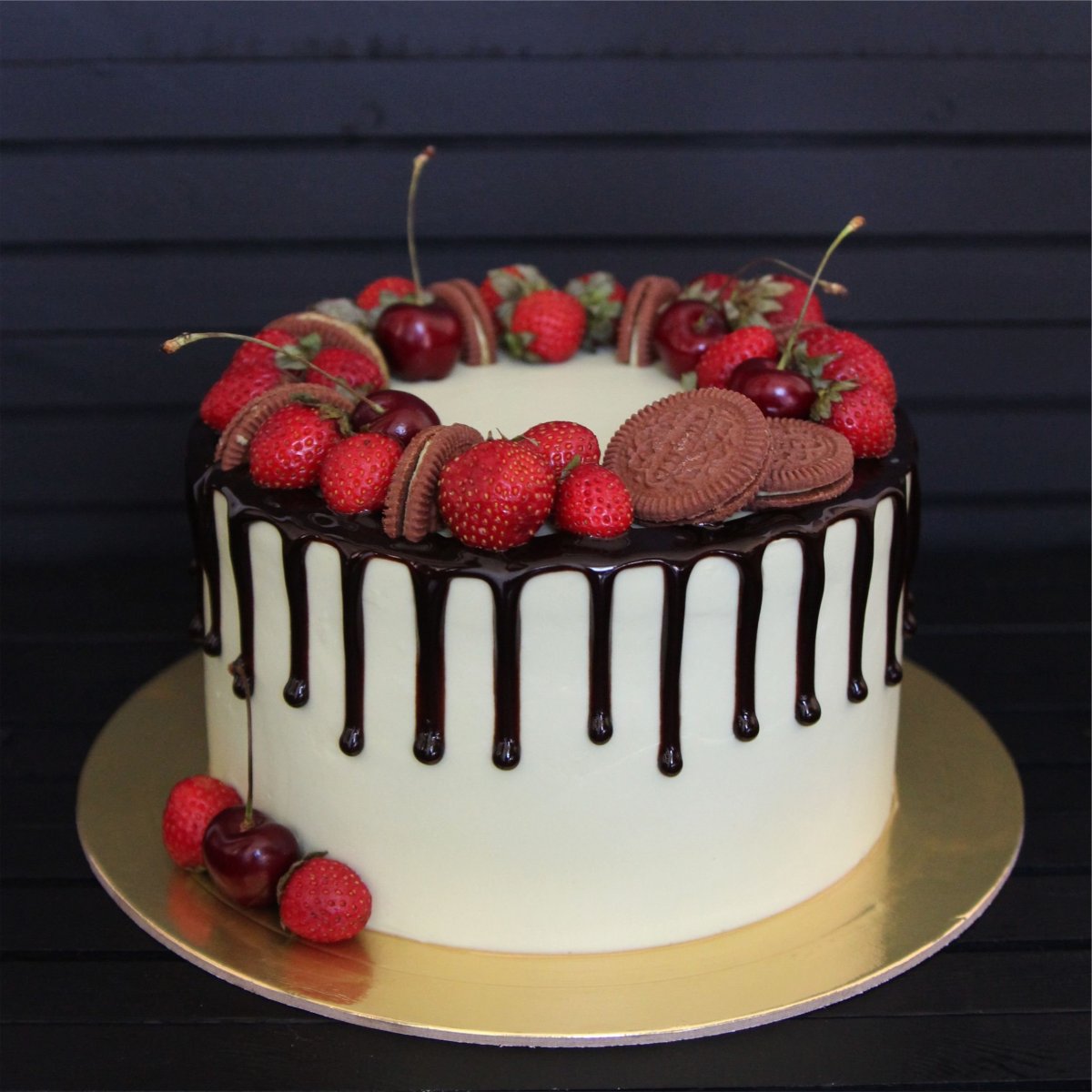 Украшение торта Орео и ягодами