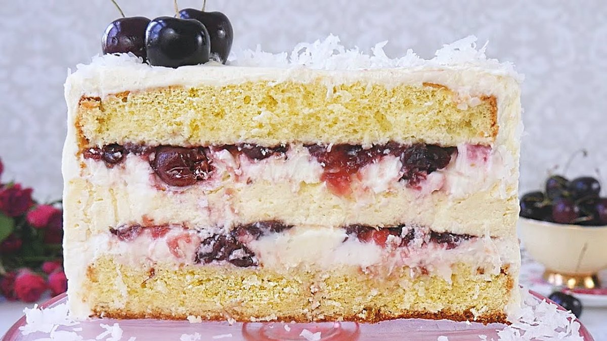 Вишнево кокосовый торт
