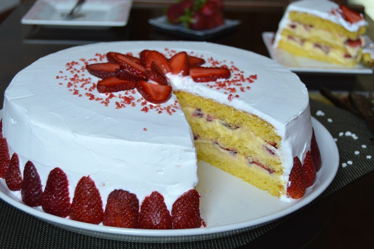 Бисквитный торт с клубникой
