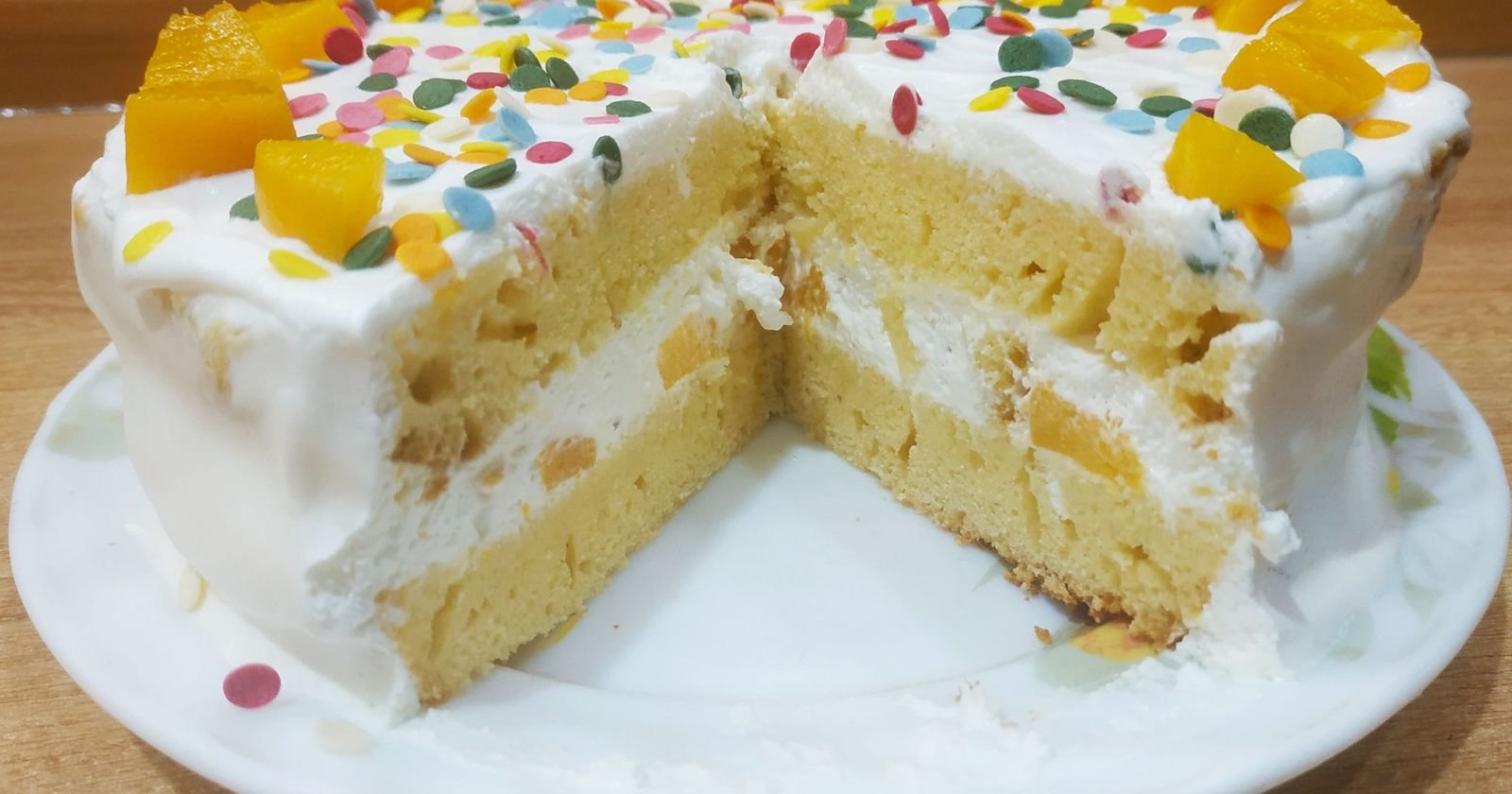 Бисквитный торт со сливками