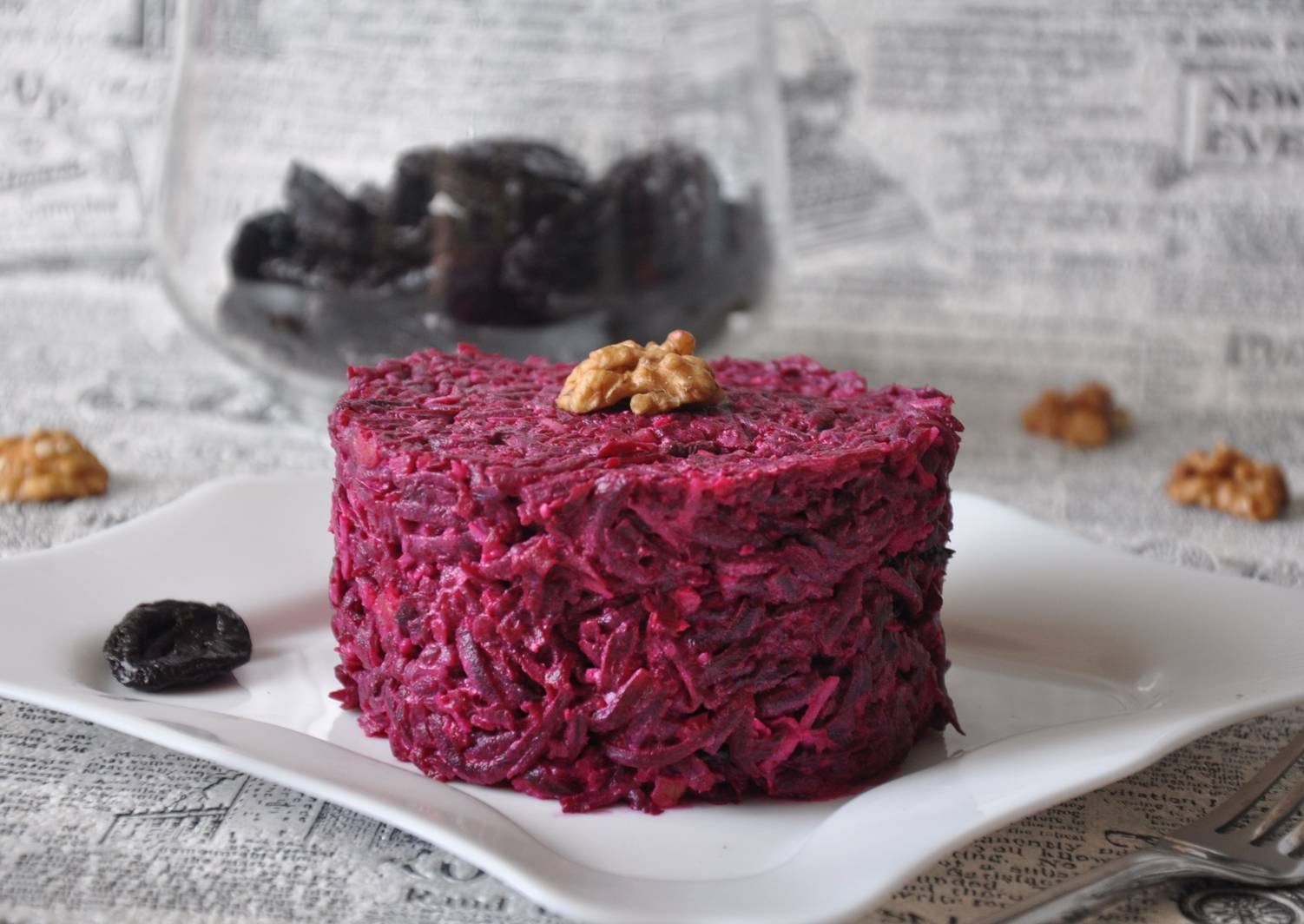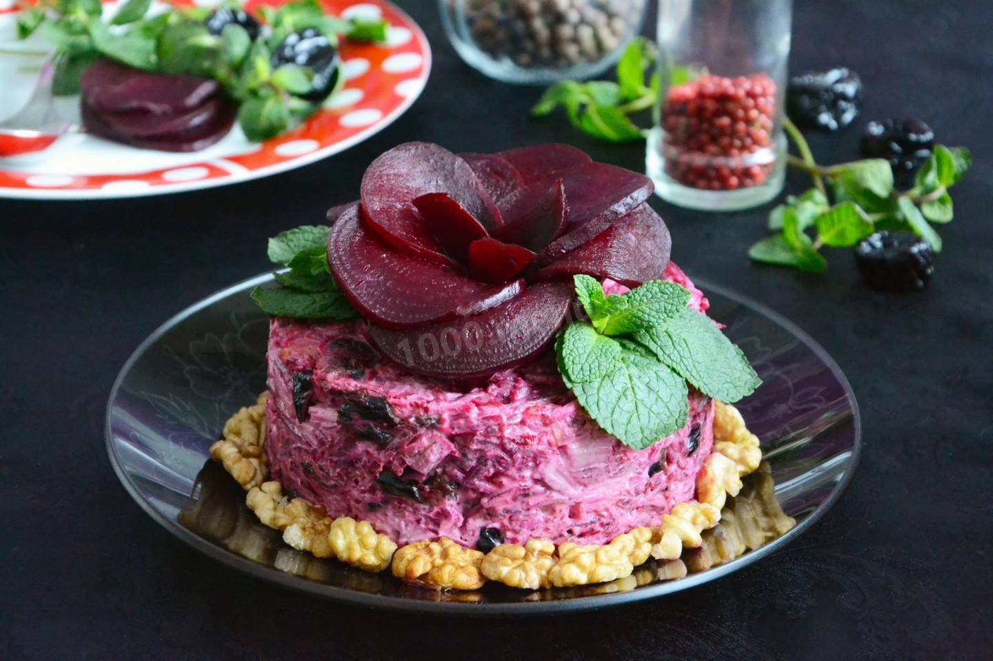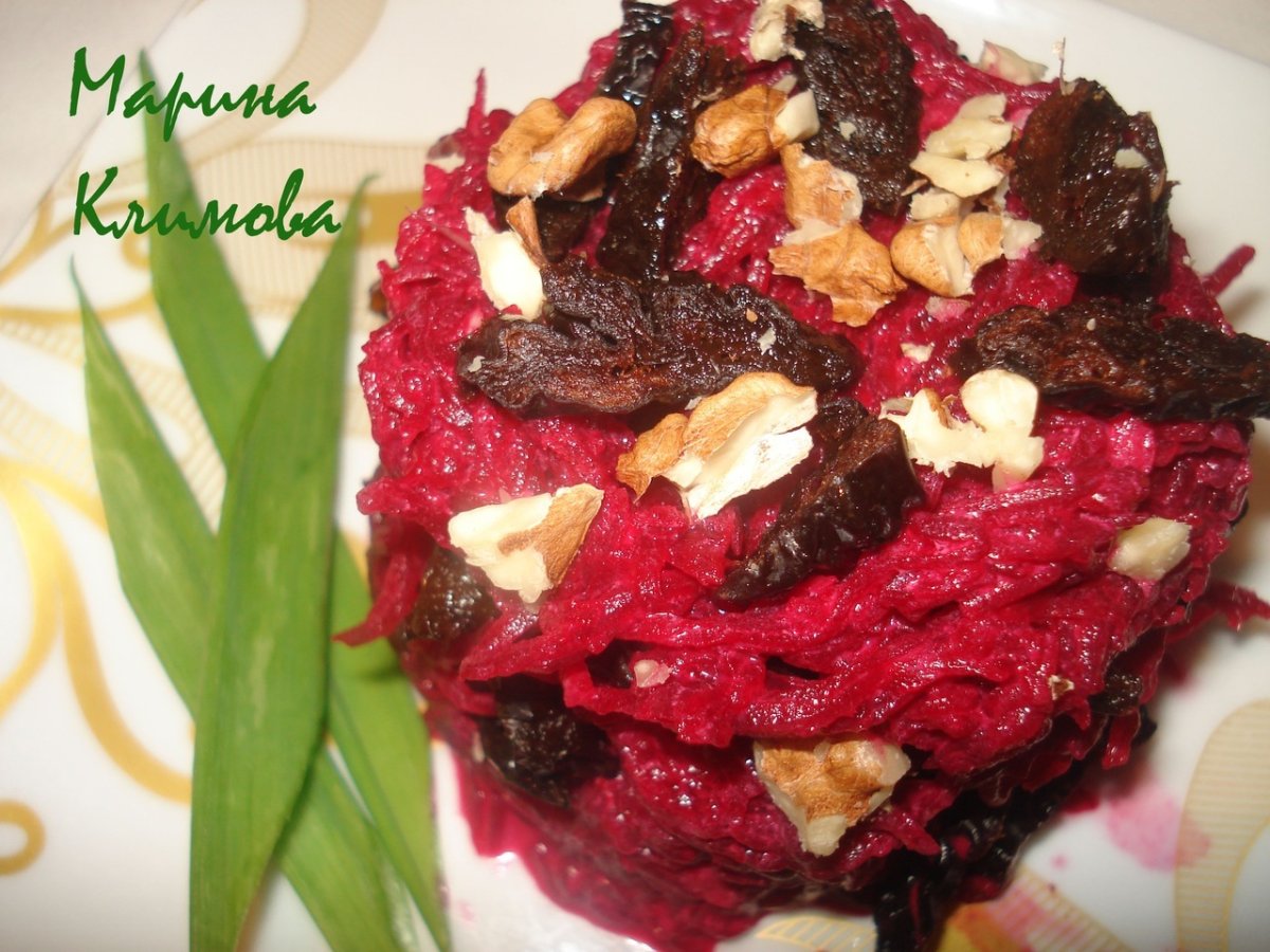 Свекольный салат с черносливом и грецкими орехами