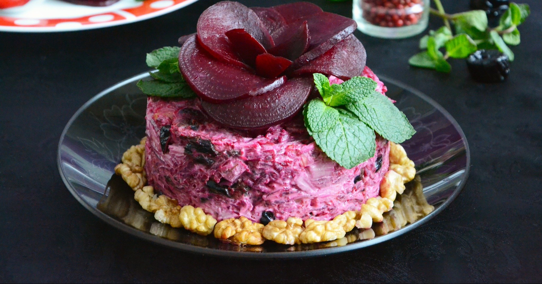 Свекольный салат с орехами и черносливом