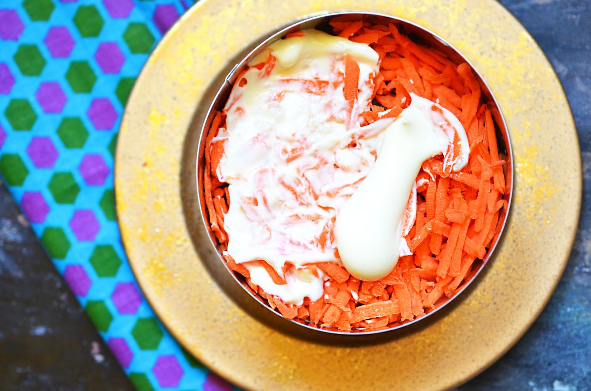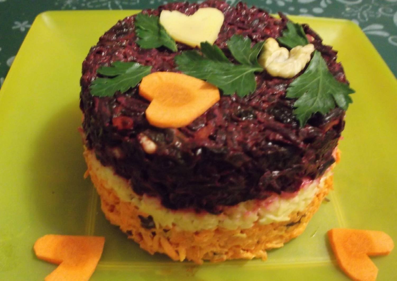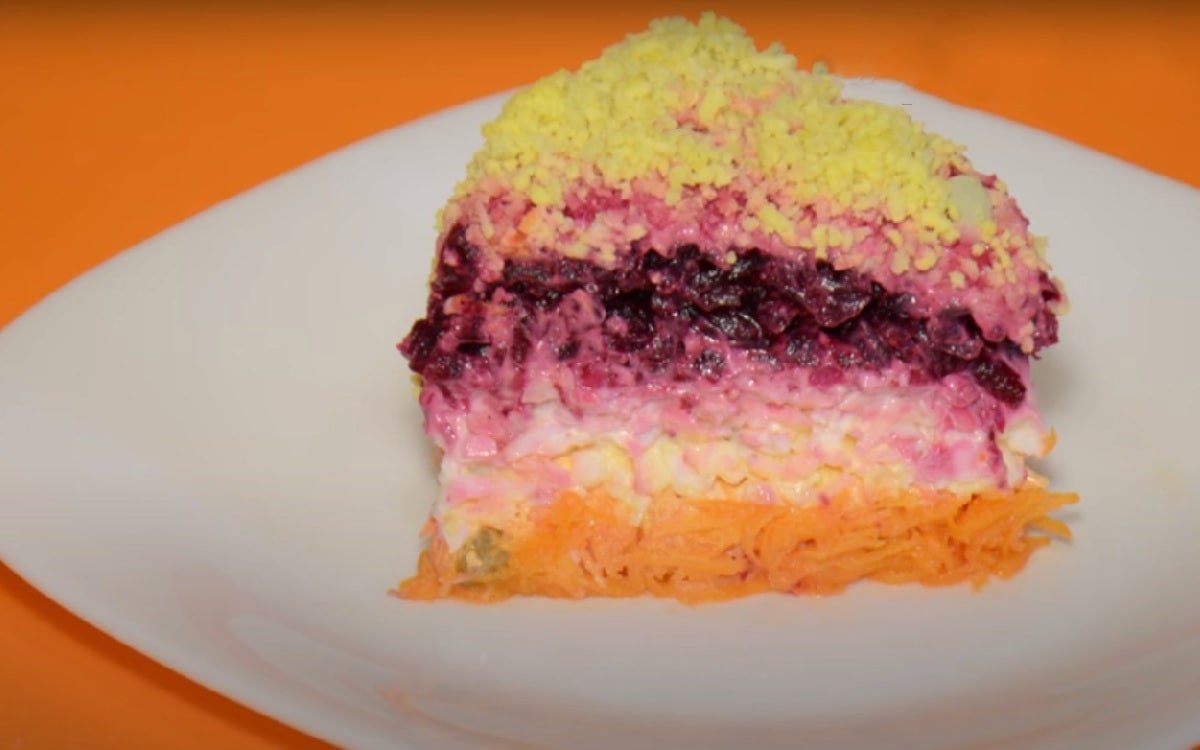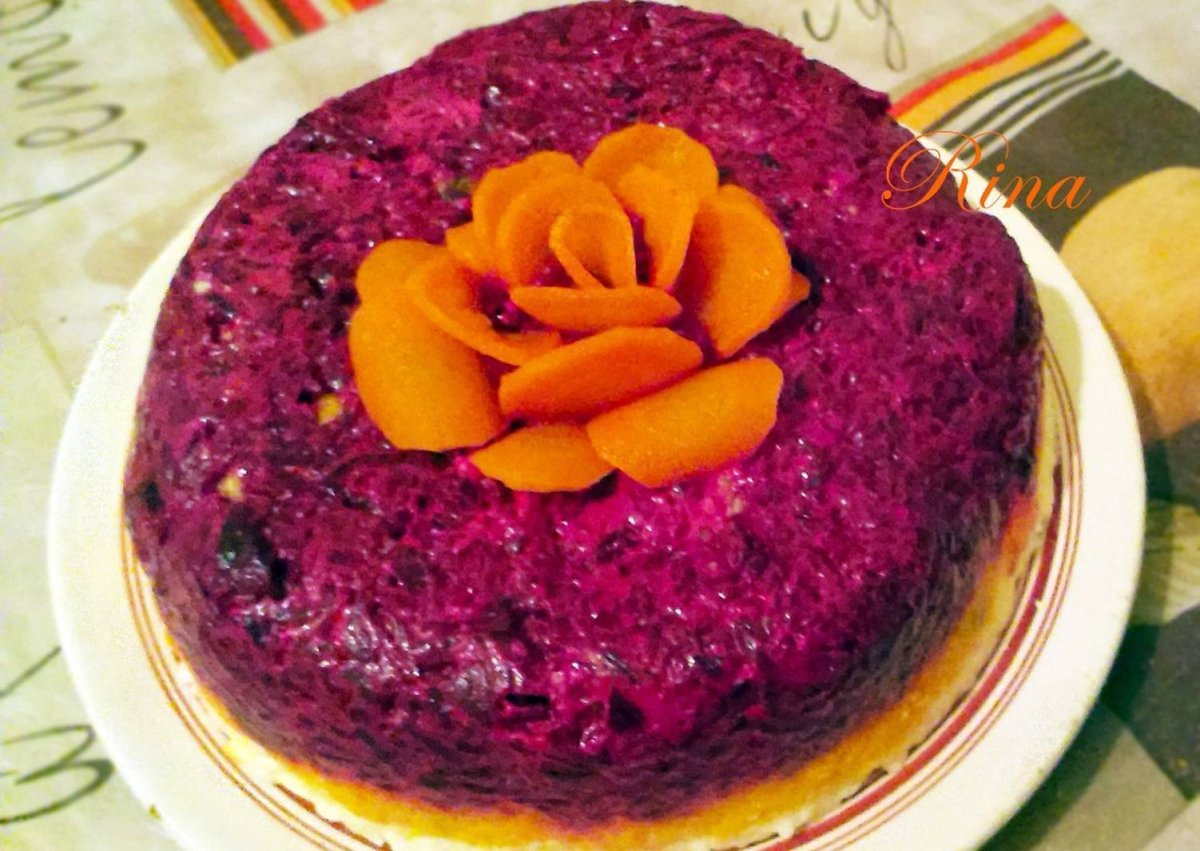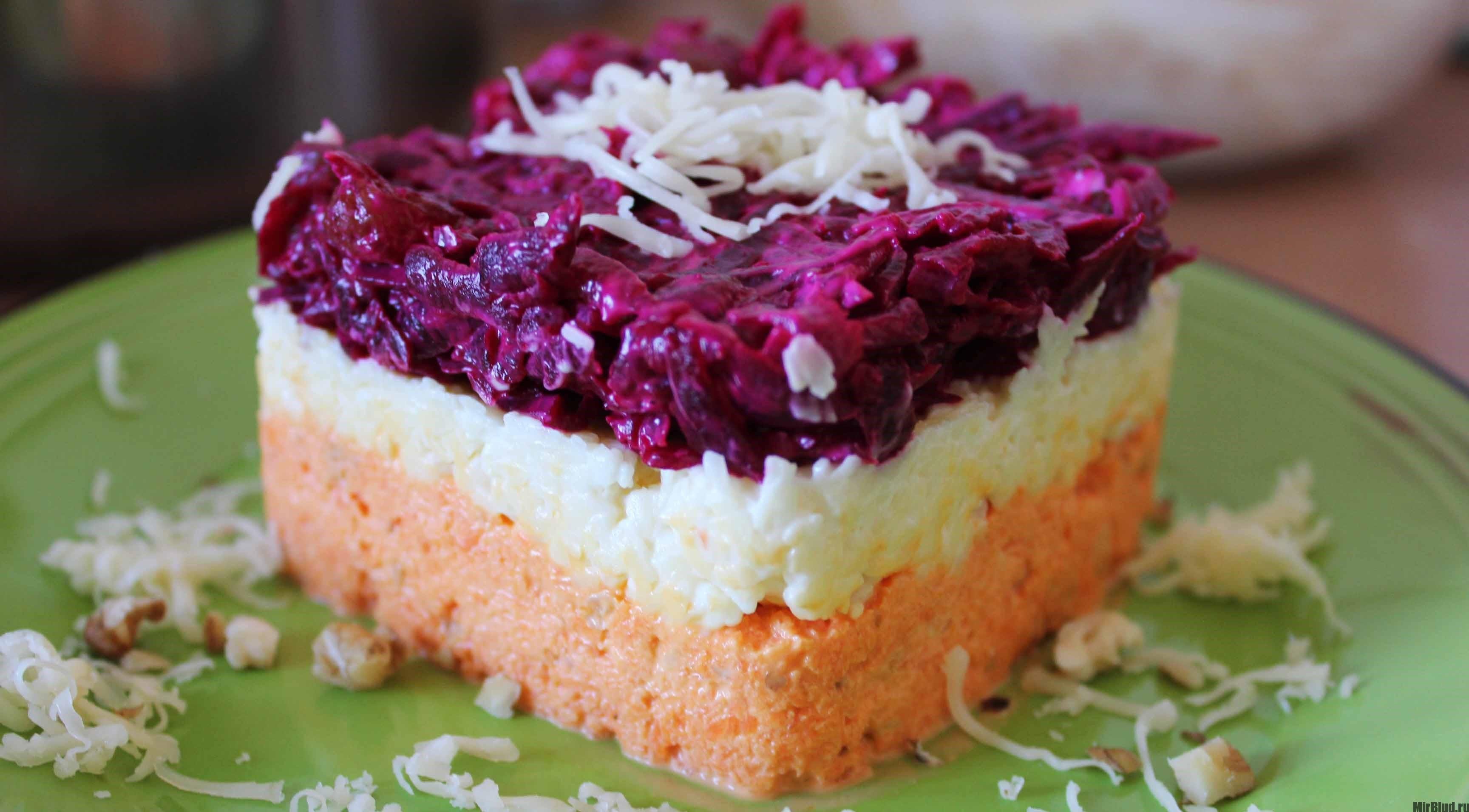 Слоеный салат со свеклой и морковью