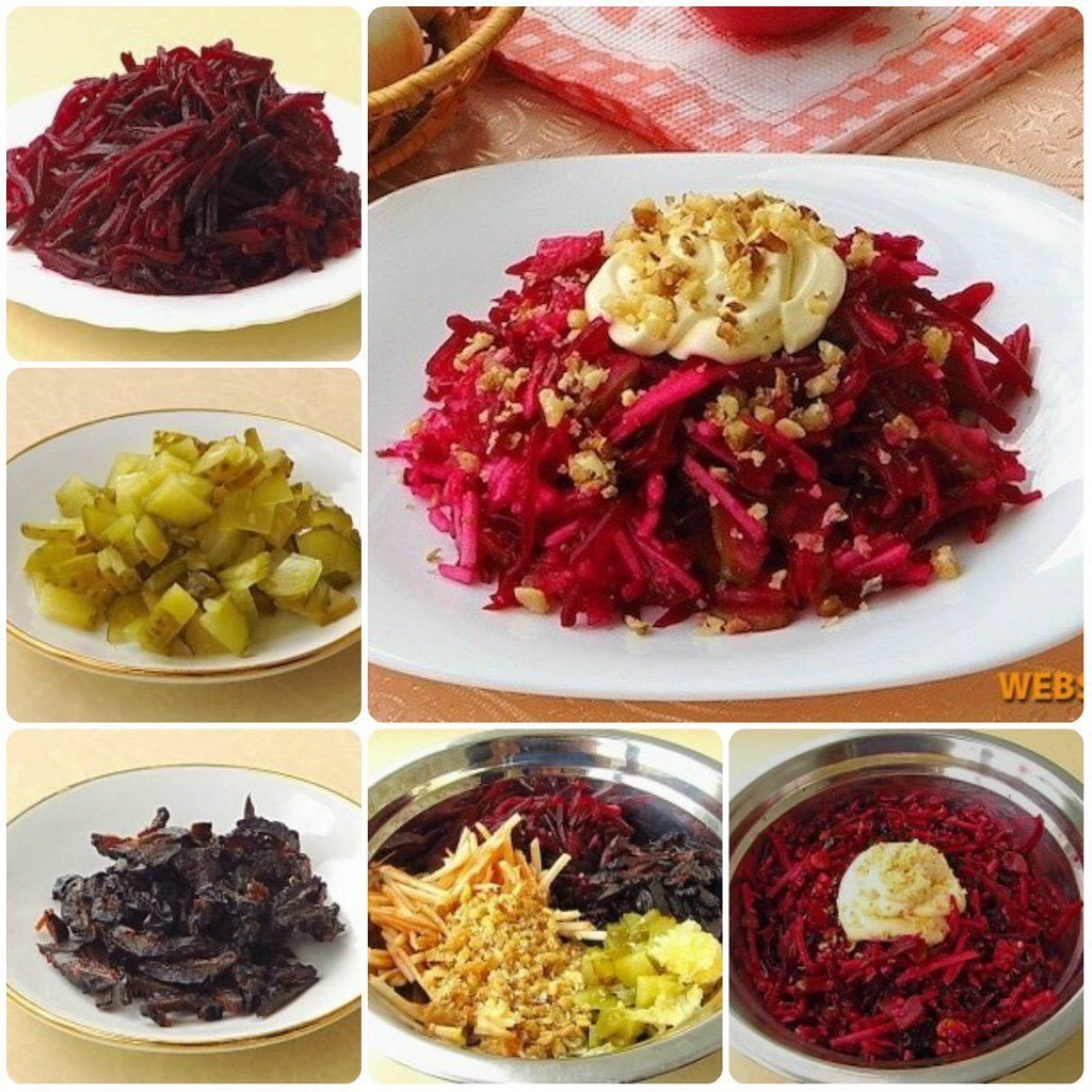 Салат свекла с черносливом и грецким орехом