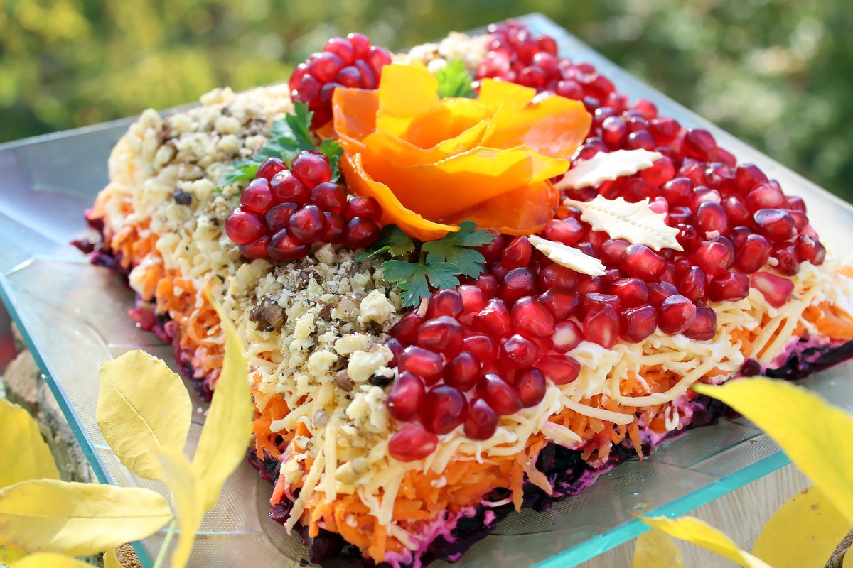 Украшение салата гранатом