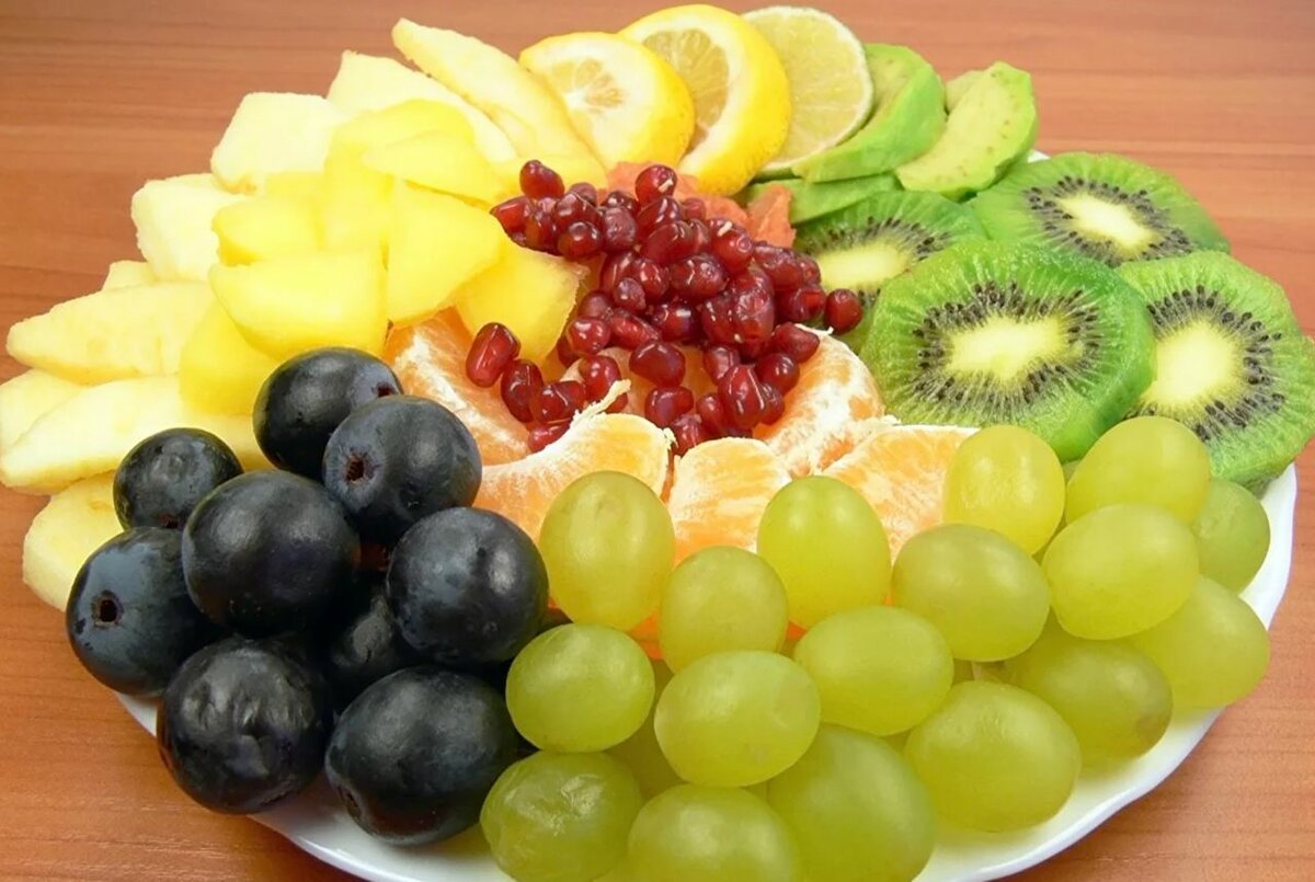 Ассорти фруктовое апельсины яблоки виноград киви груша