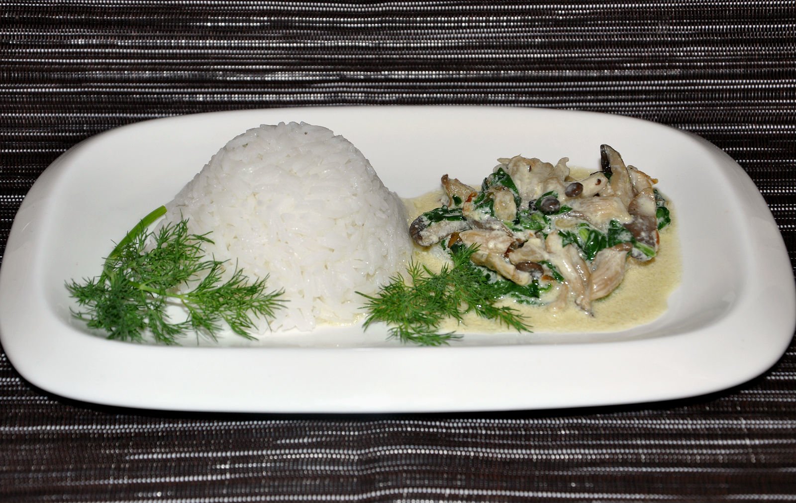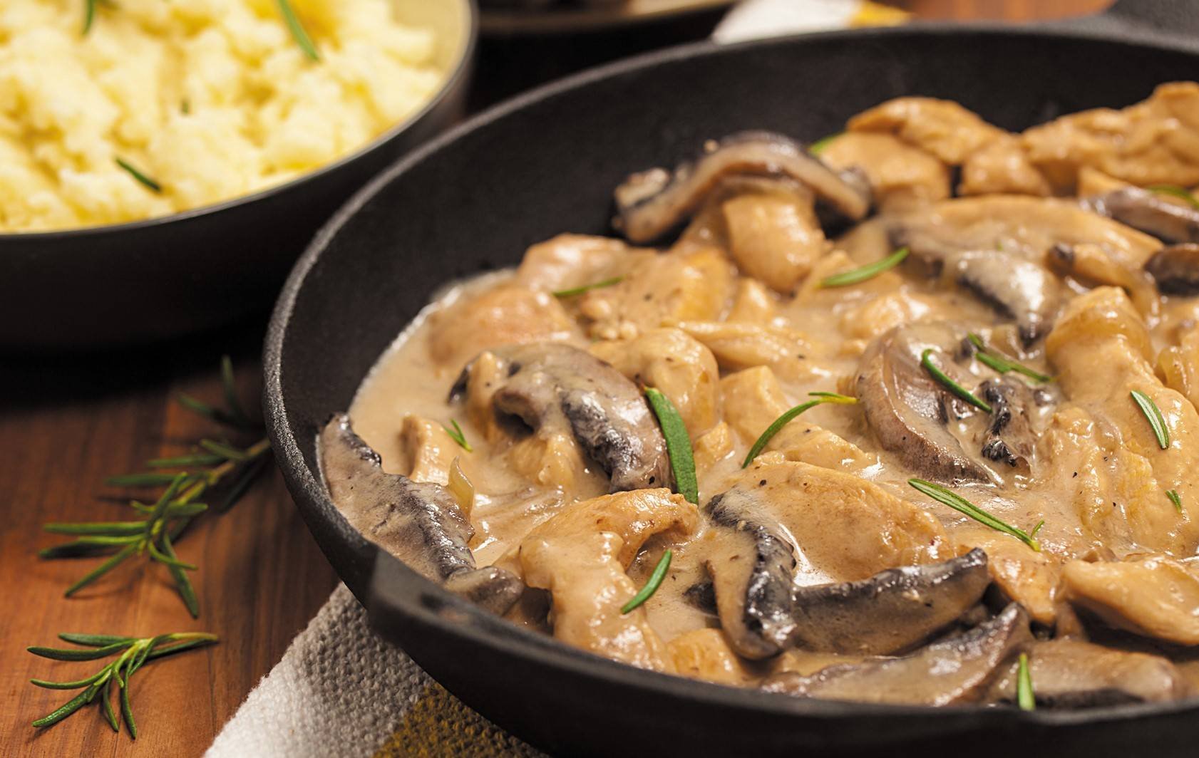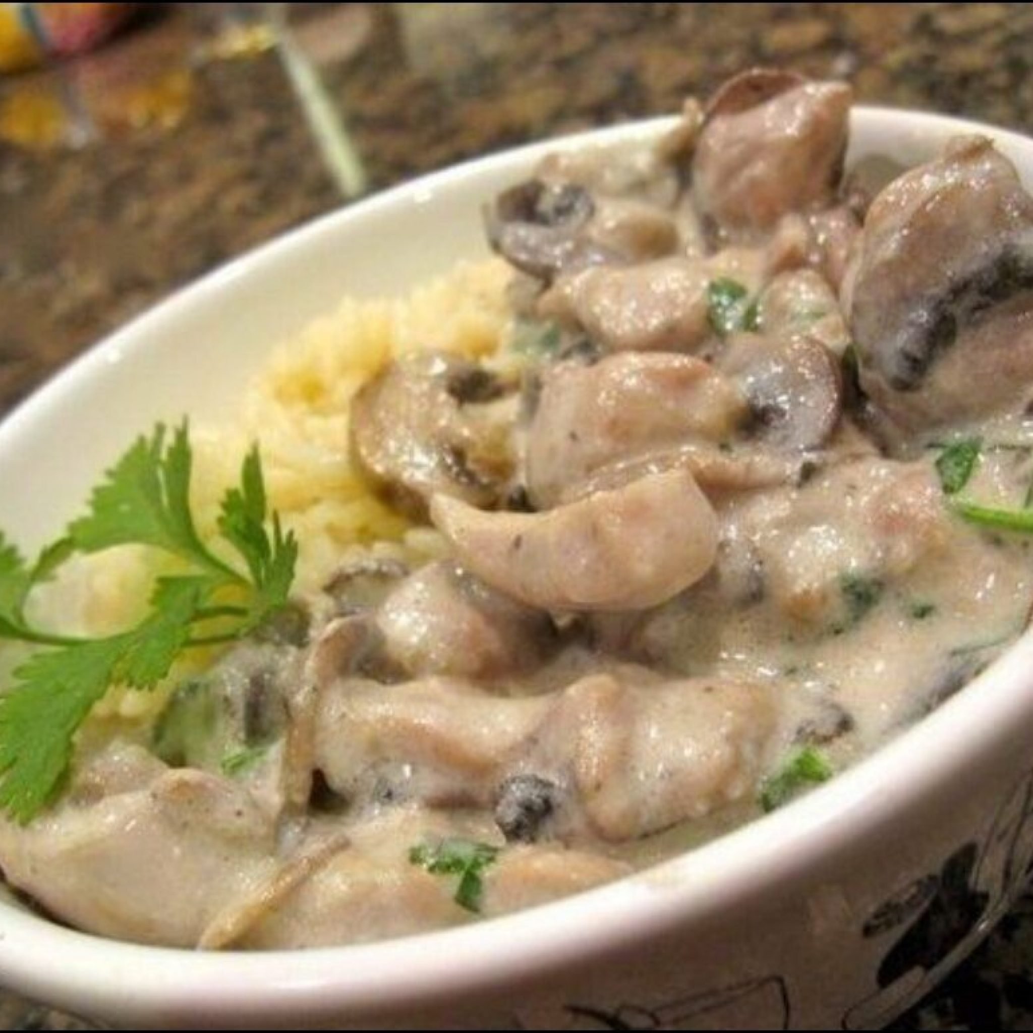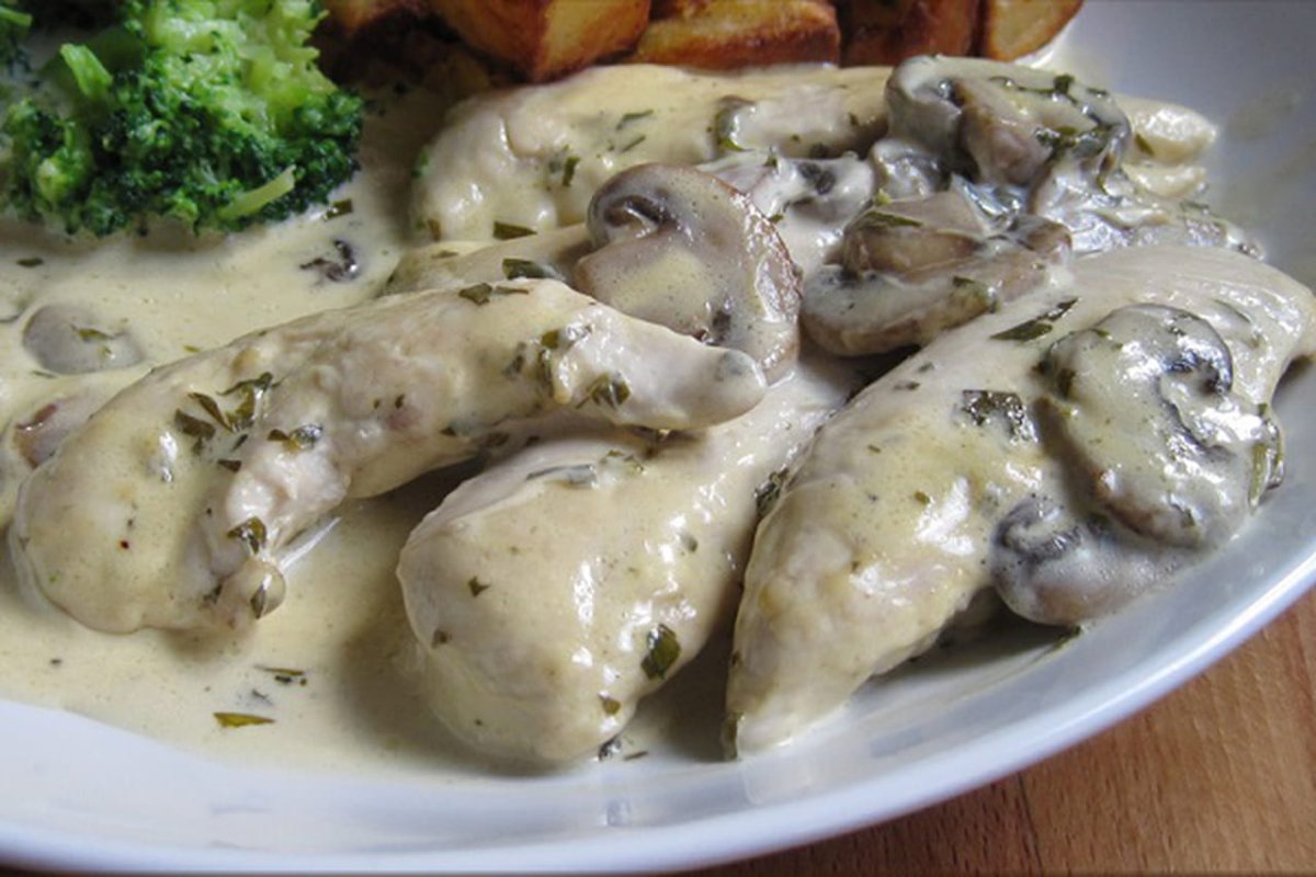 Паста с грибами и курицей в сливочном соусе и курицей.