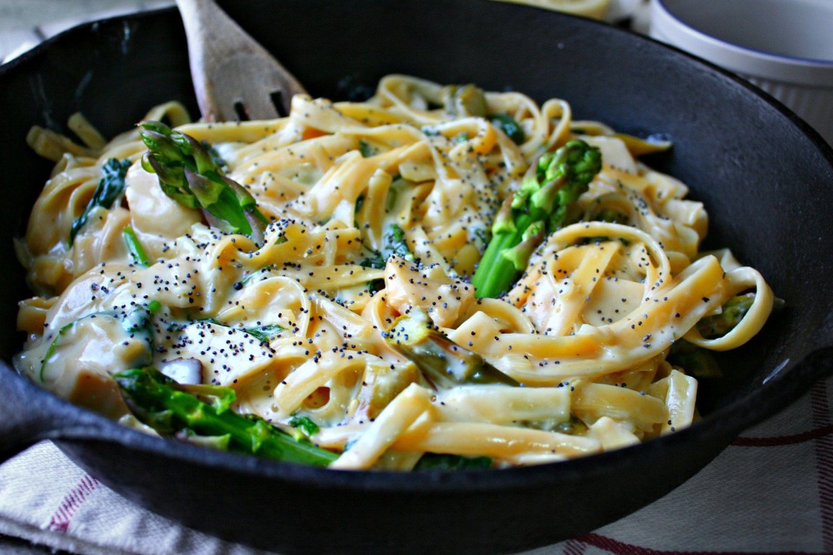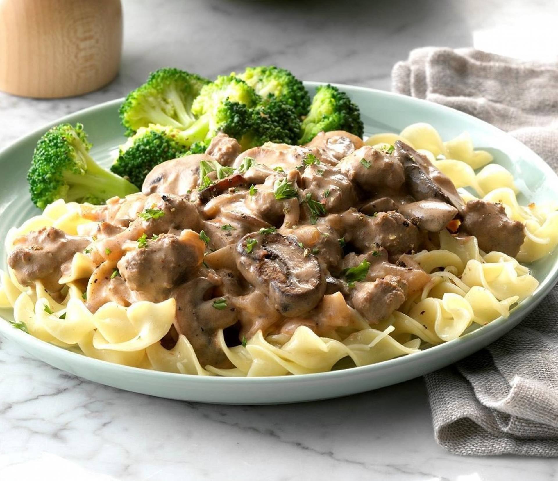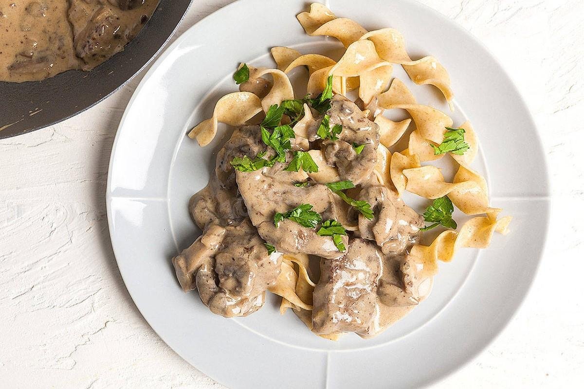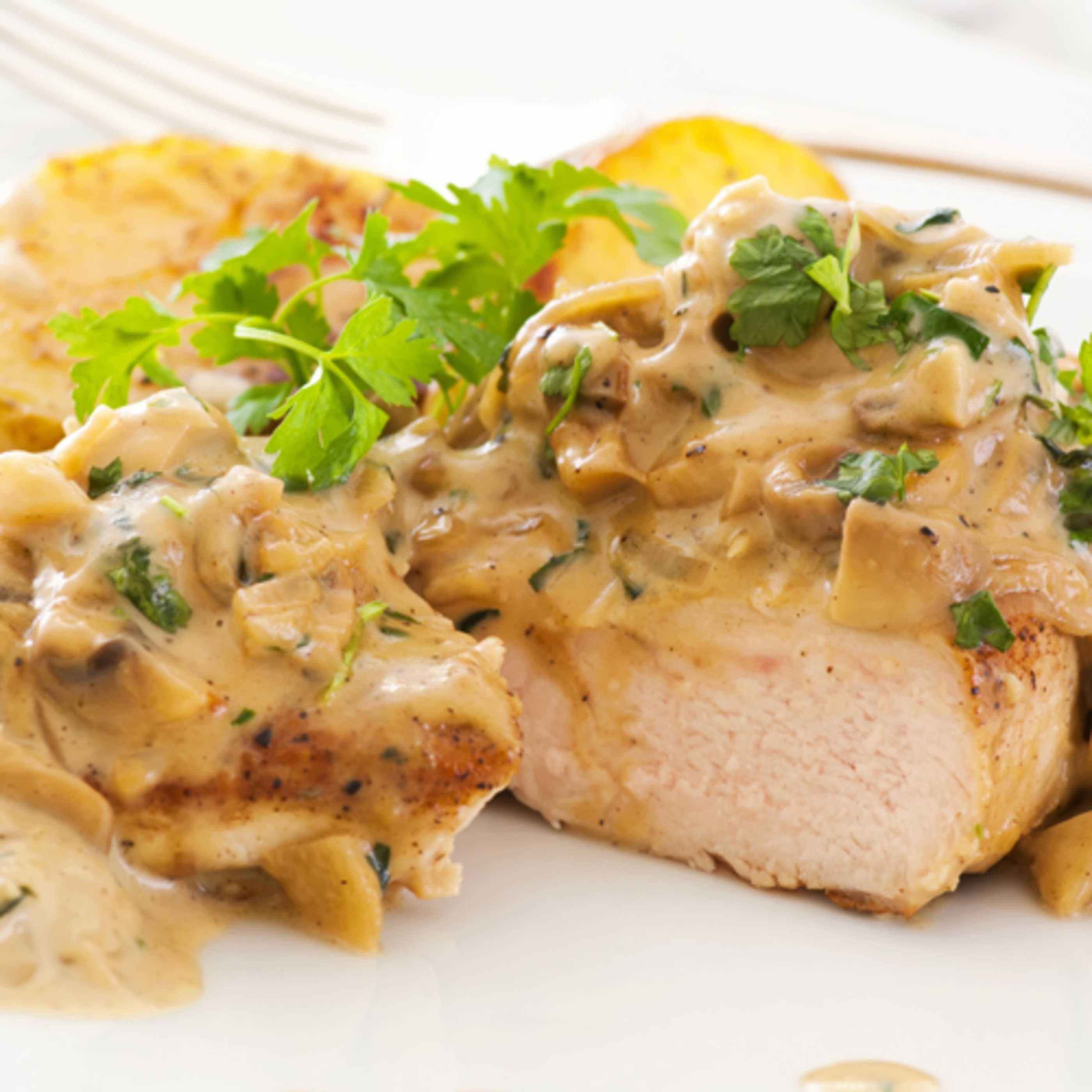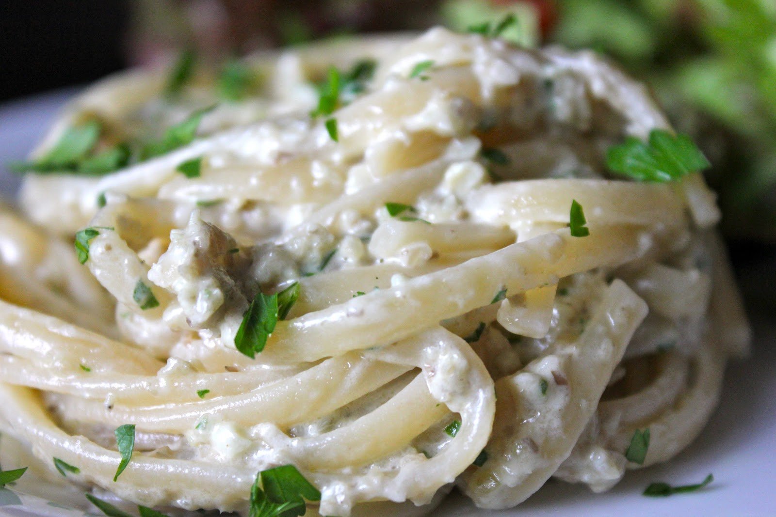 Паста с грибами и курицей в сливочном соусе и курицей.