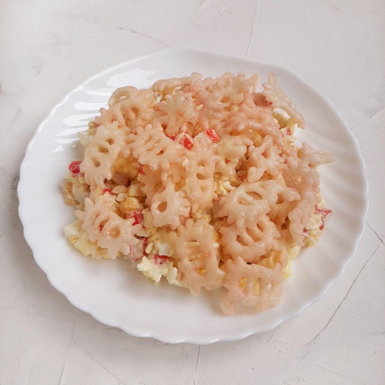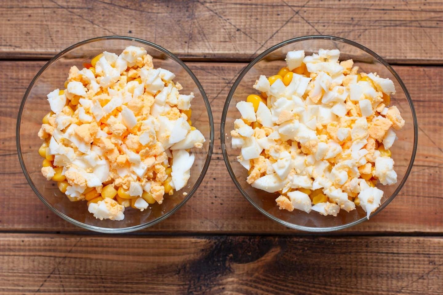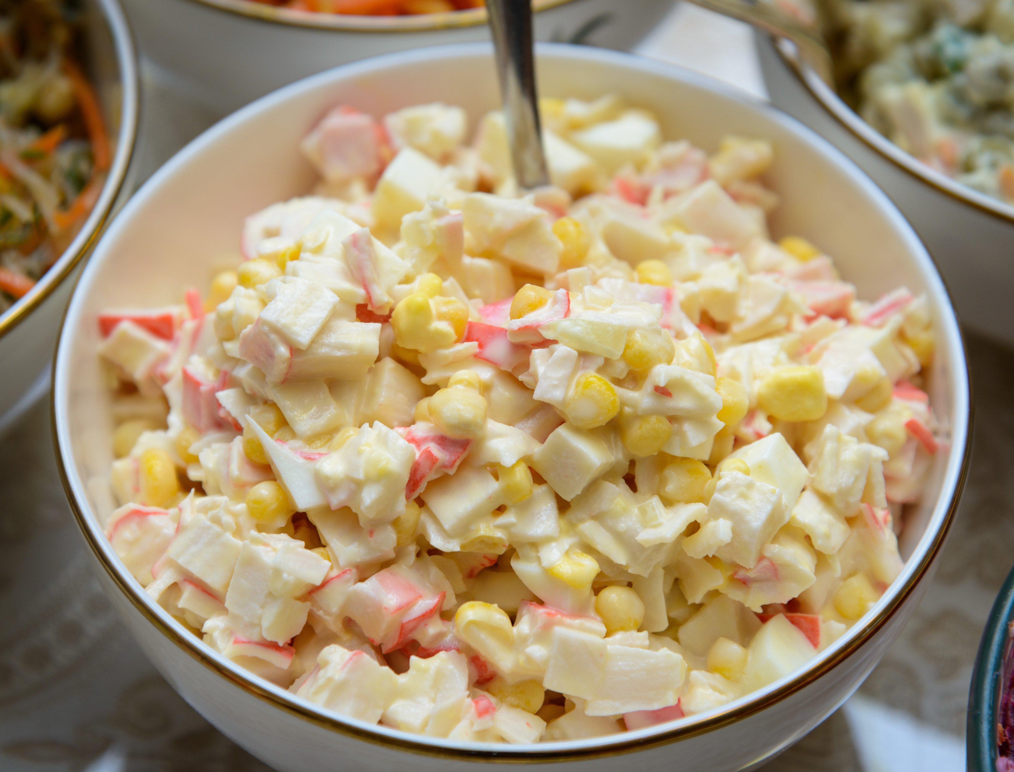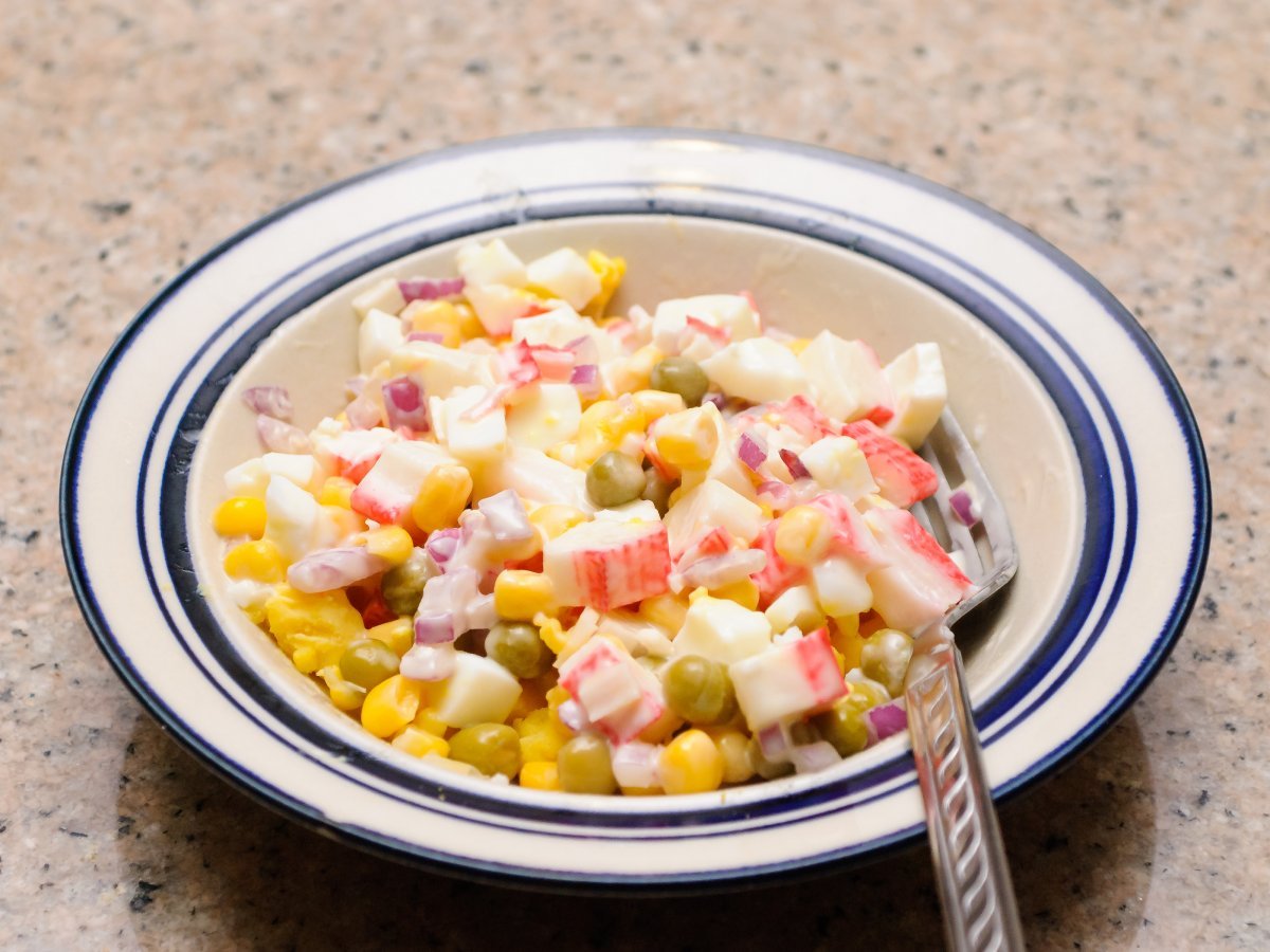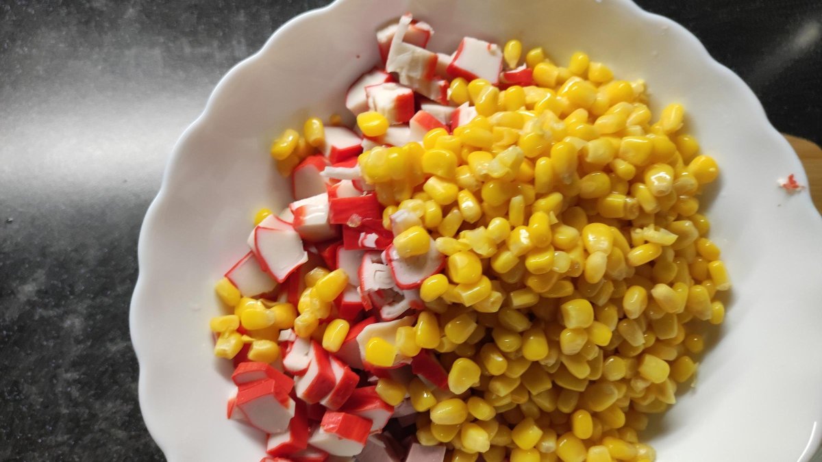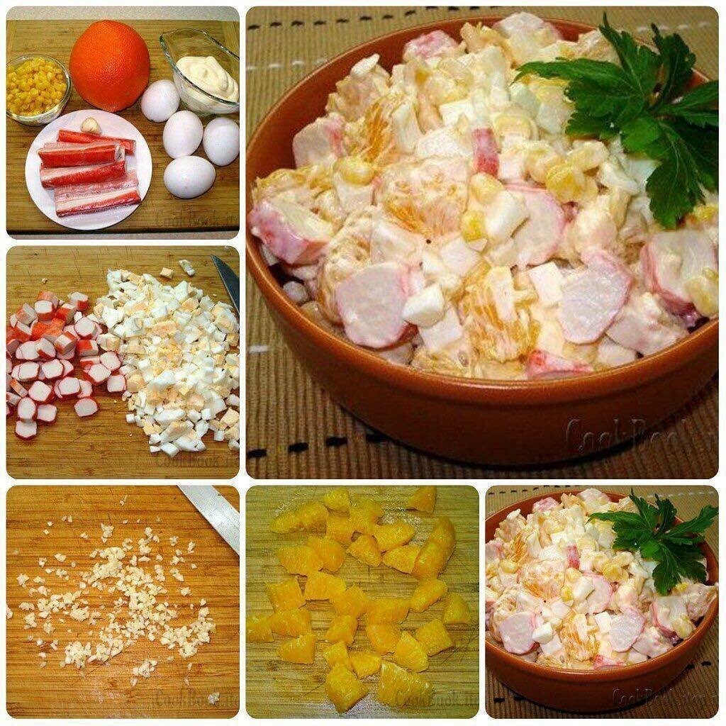 Салат с крабовыми палочками и кукурузой и яйцом и рисом