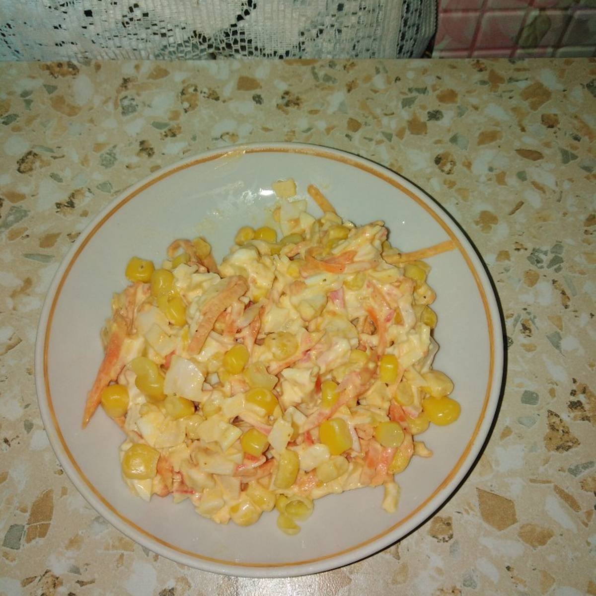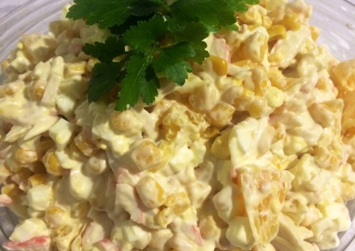 Салат с плавленным сыром и крабовыми палочками и кукурузой