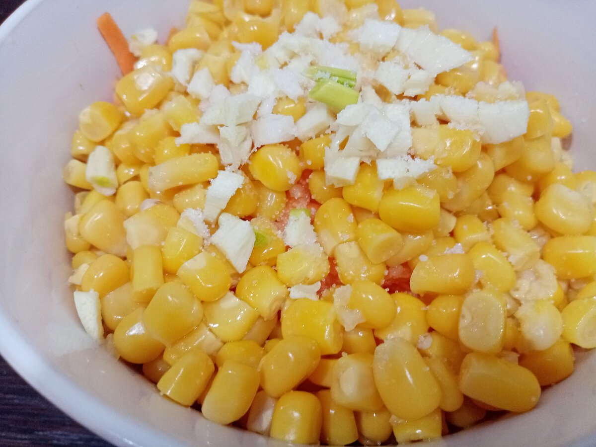 Салат с кальмарами и крабовыми палочками и кукурузой