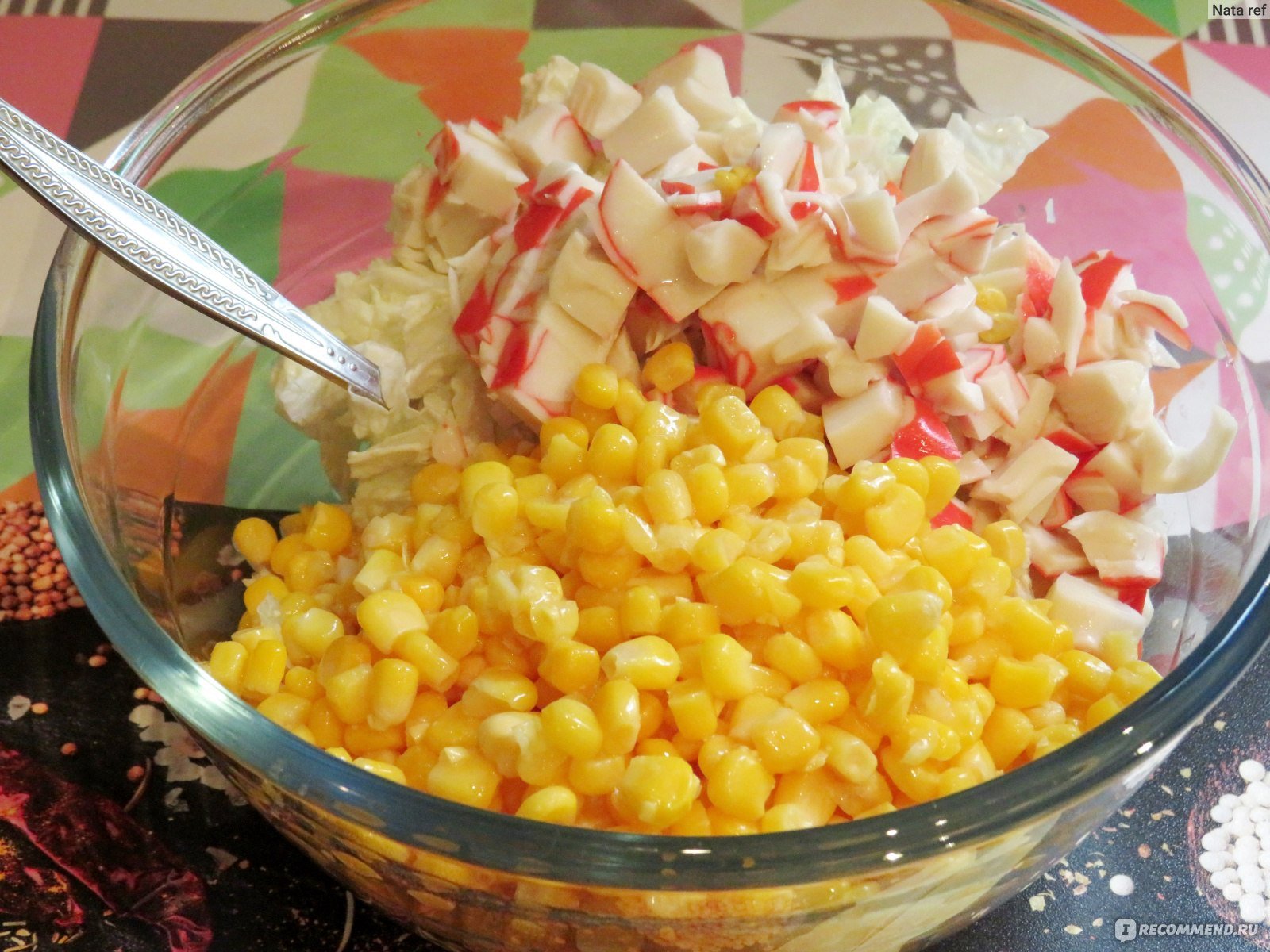 Салат с пекинской капустой и крабовыми палочками и кукурузой