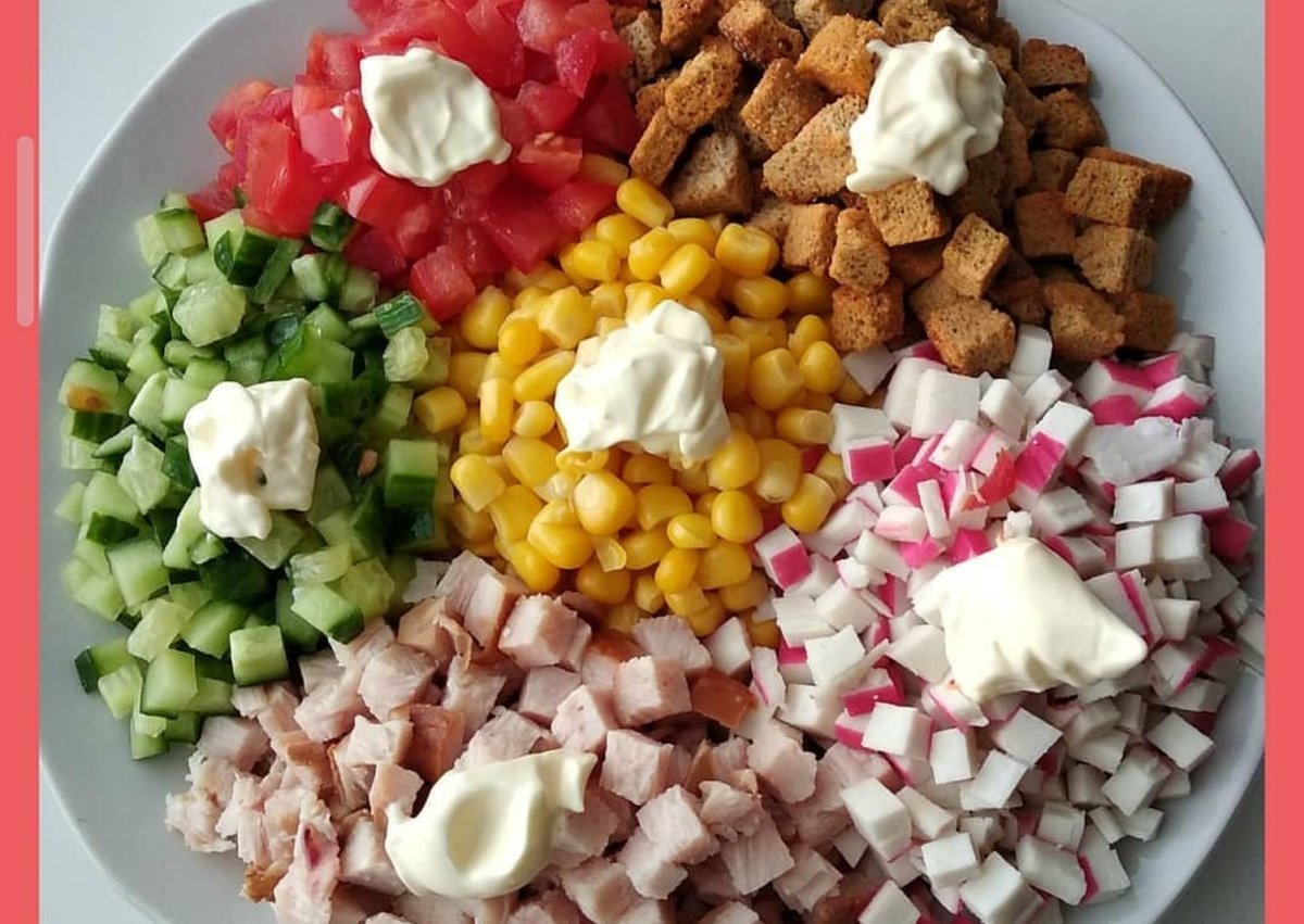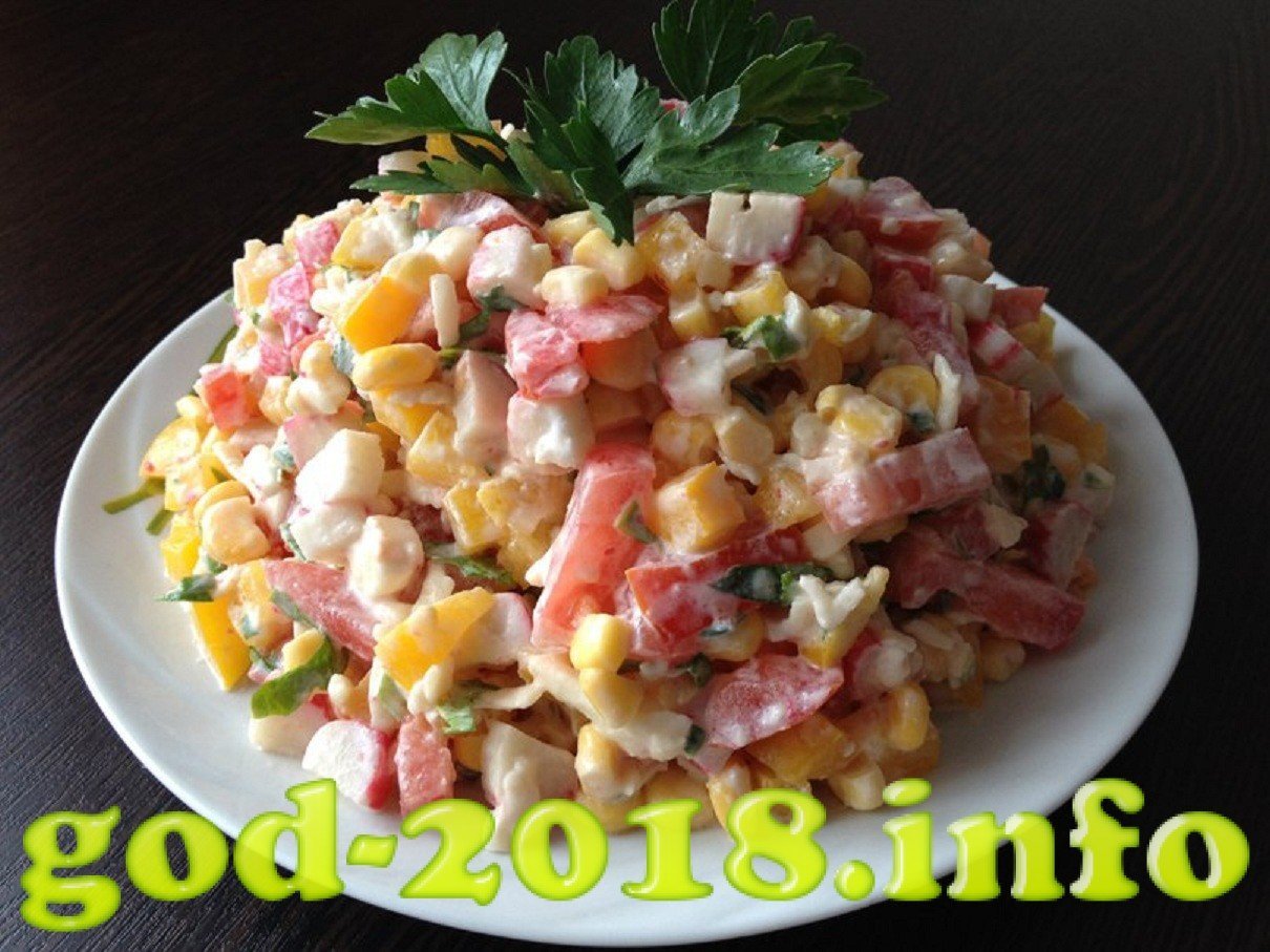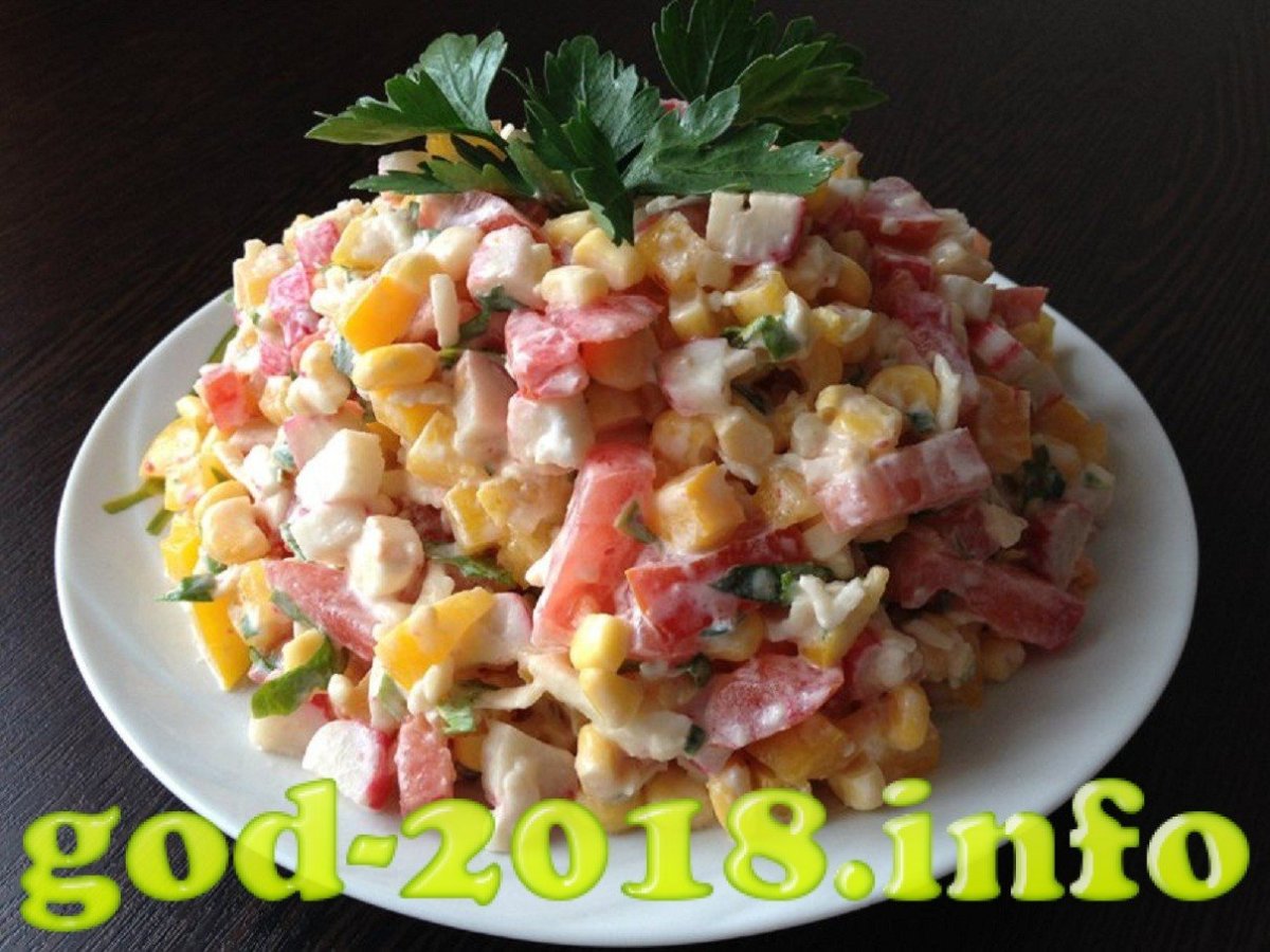 Салат с крабовыми палочками и кукурузой и колбасой копченой