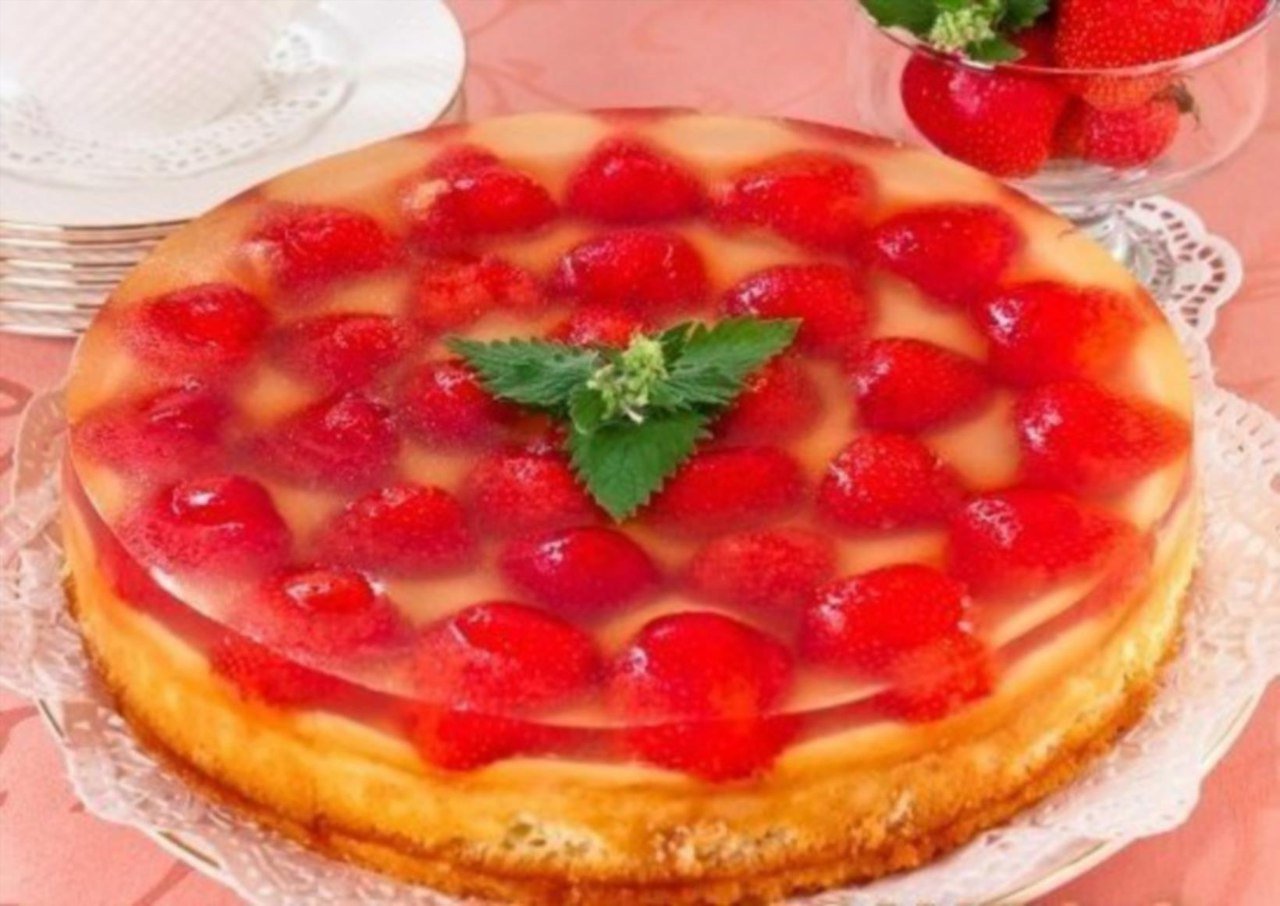 Торт с клубникой и желатином