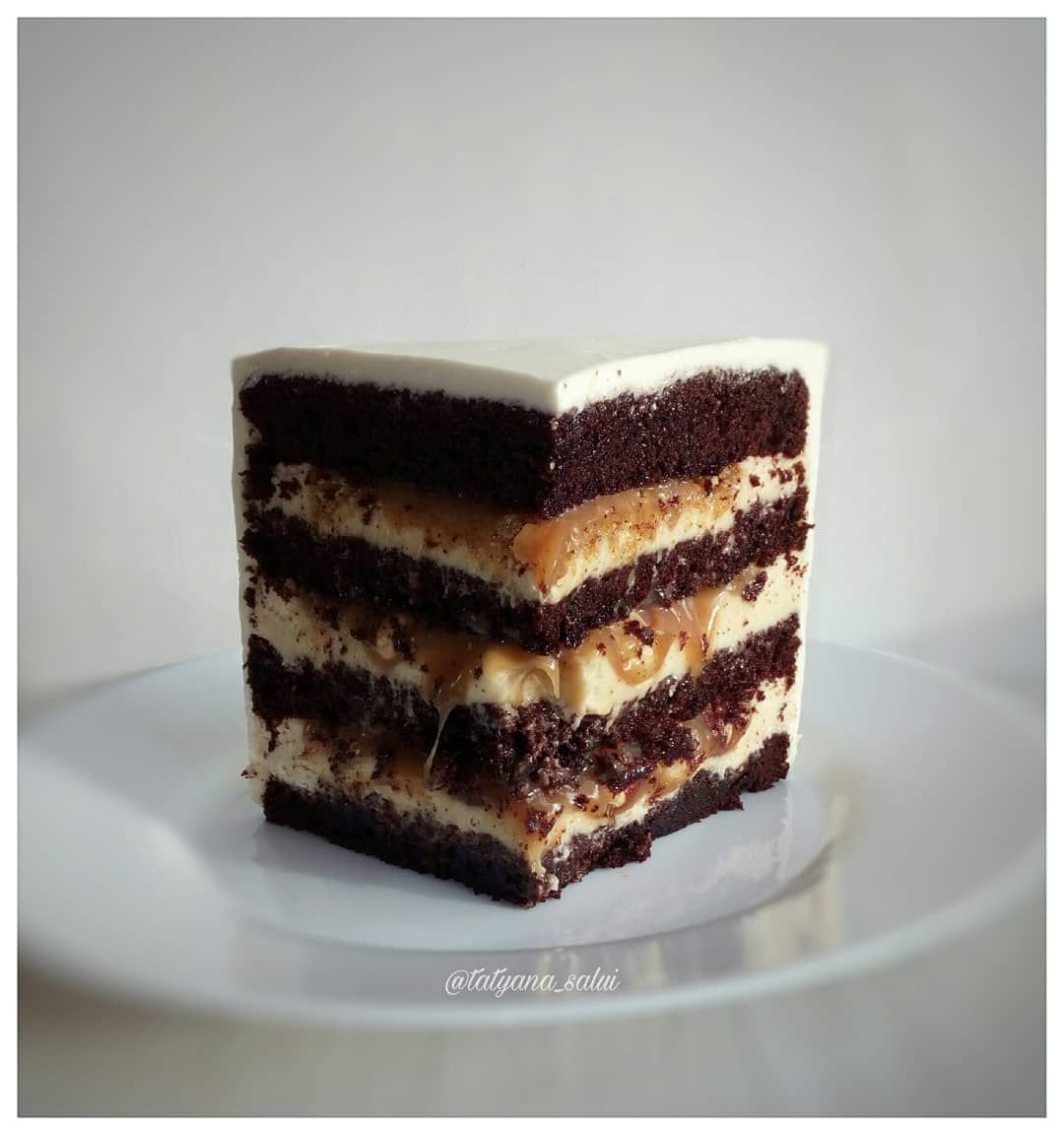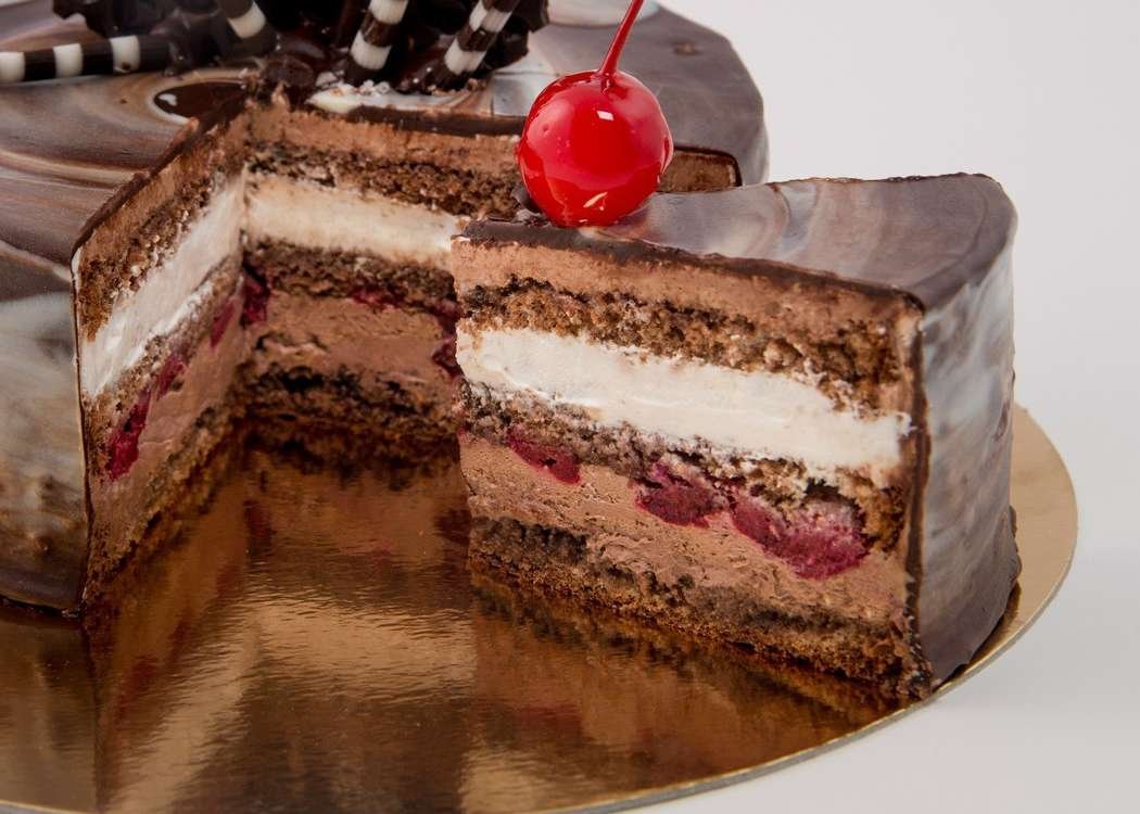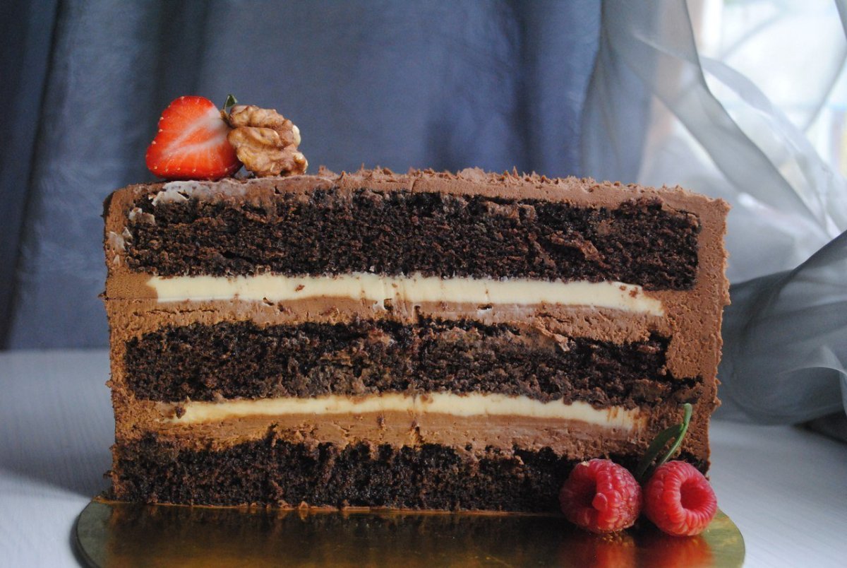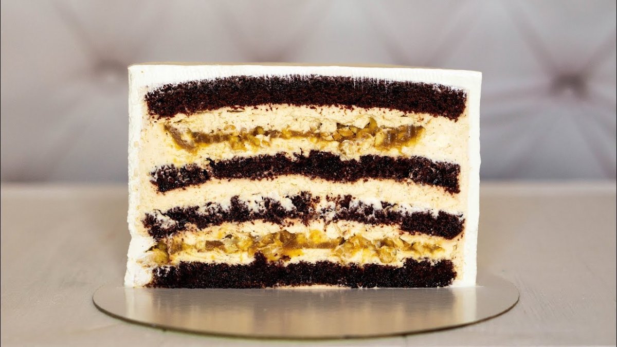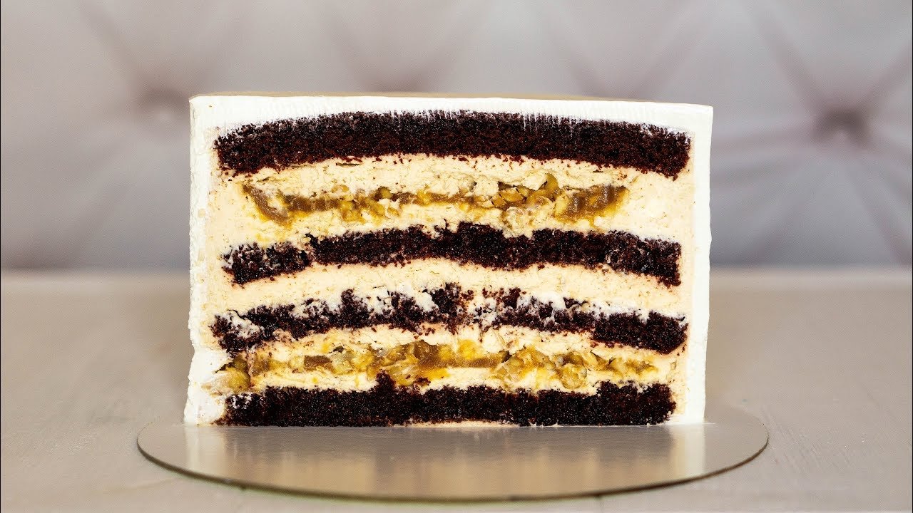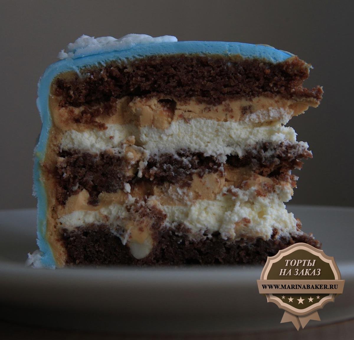 Торт с шоколадным бисквитом и вишней и кремом чиз