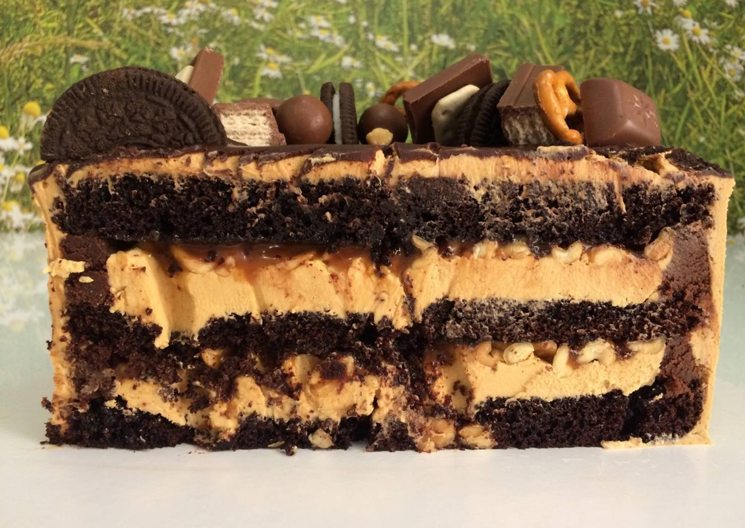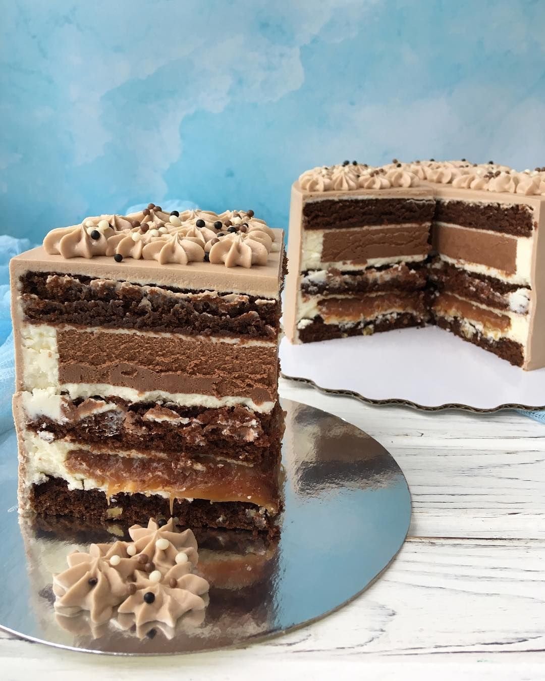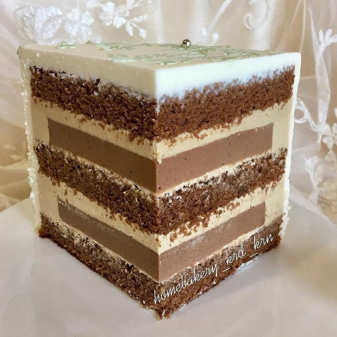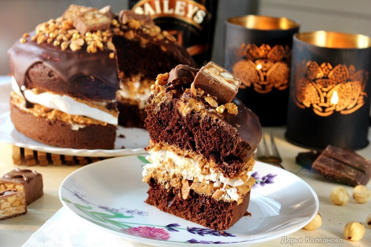 Торт с шоколадным бисквитом и вишней и кремом чиз