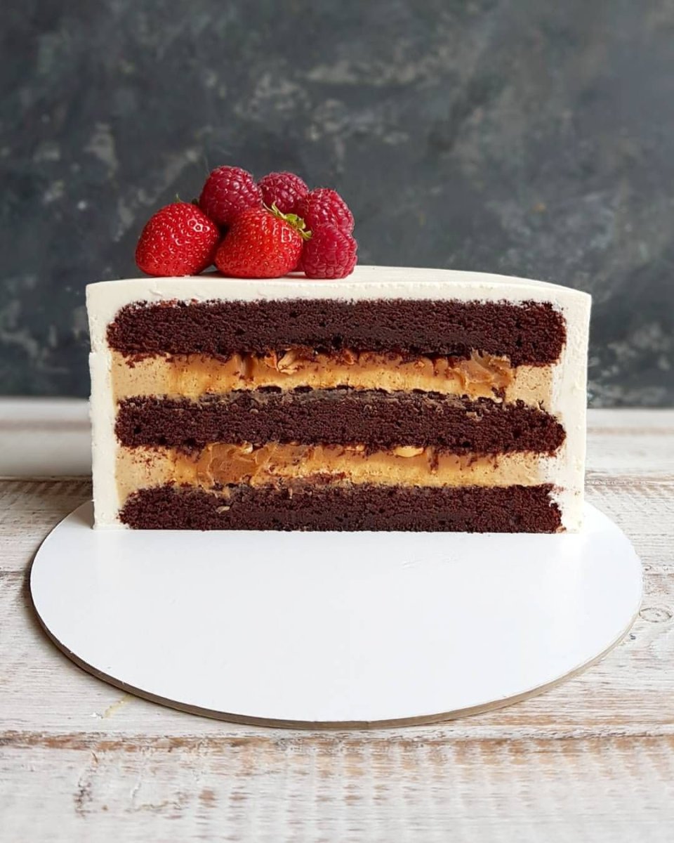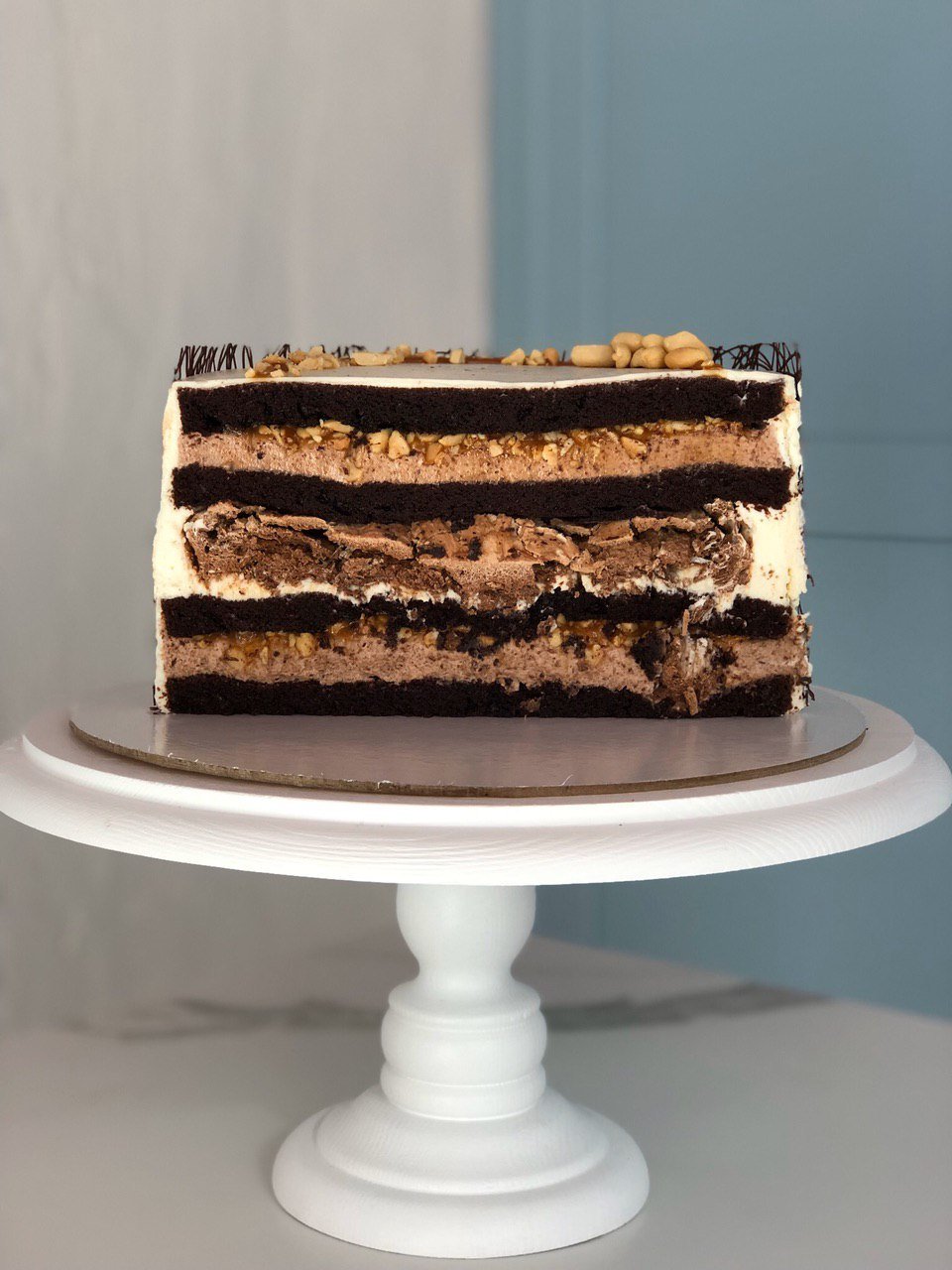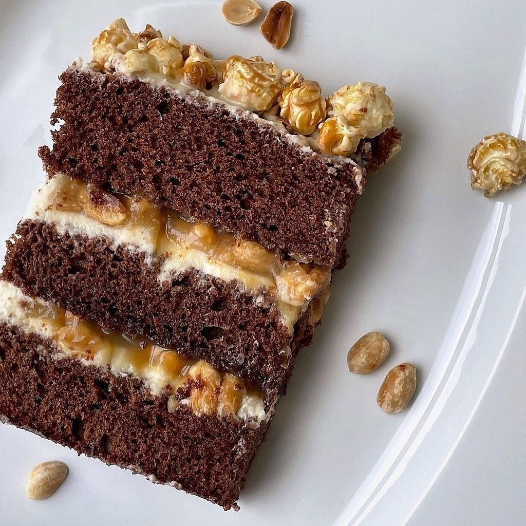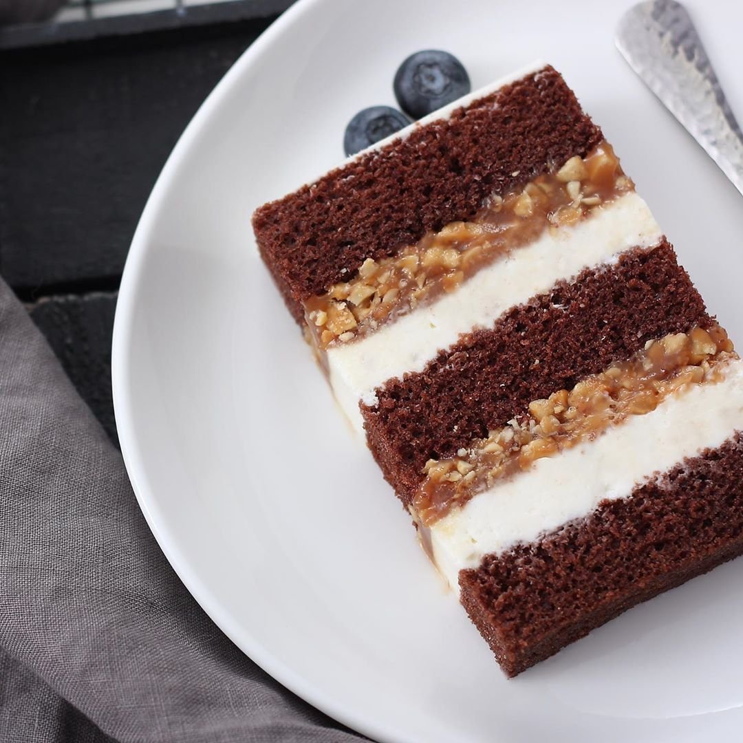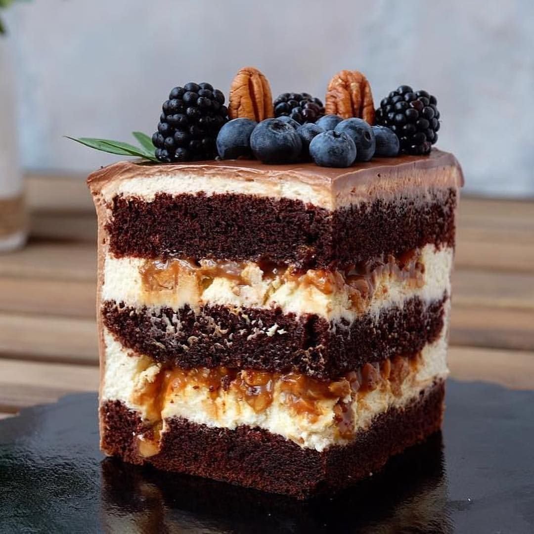 Торт с шоколадным бисквитом и вишней и кремом чиз