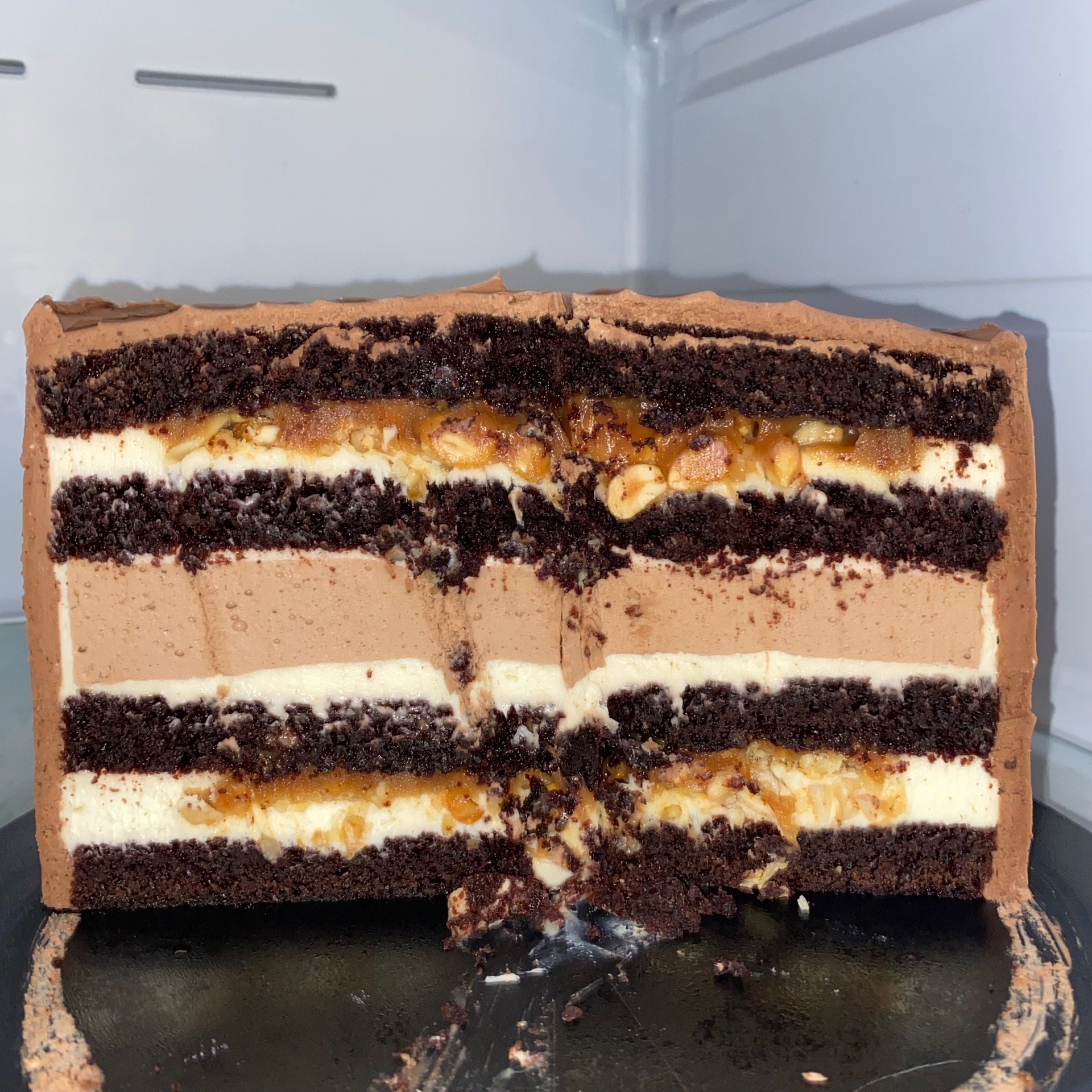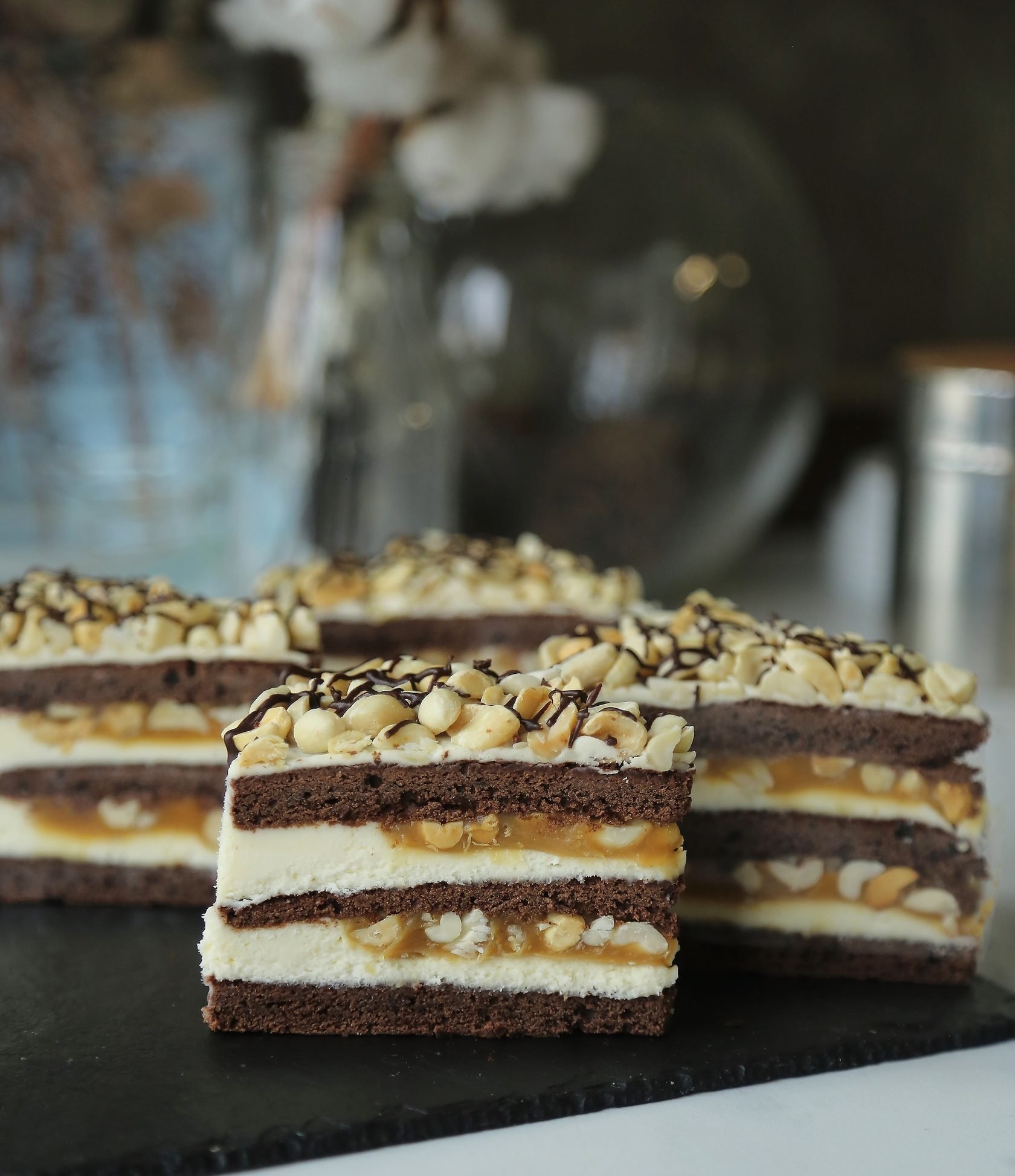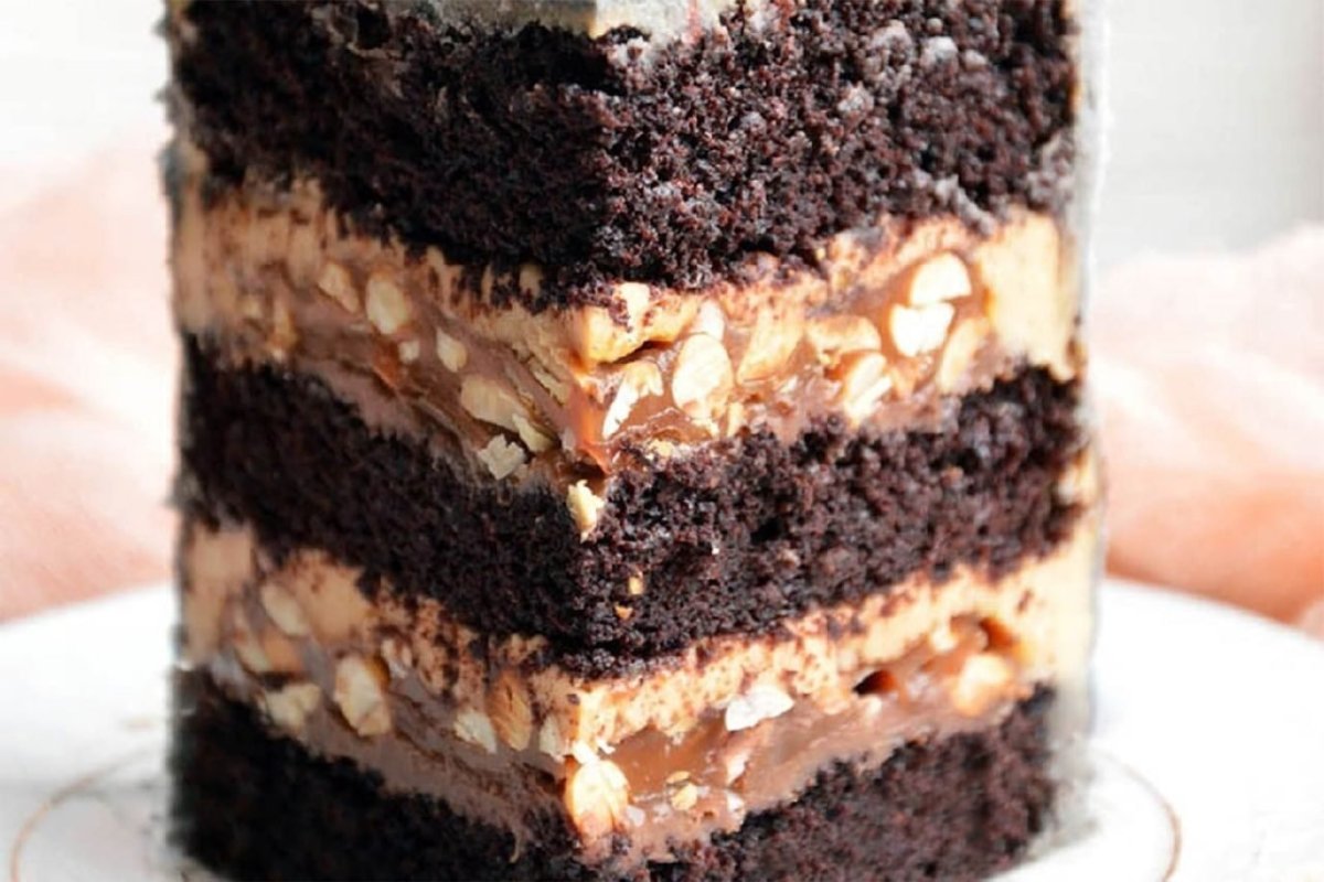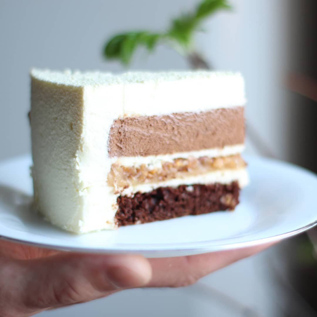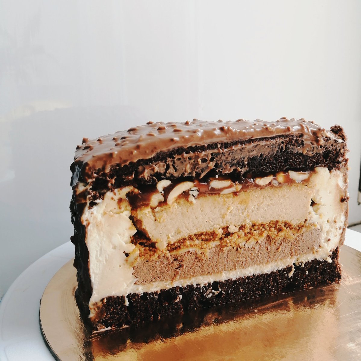 Торт с шоколадным бисквитом и вишней и кремом чиз