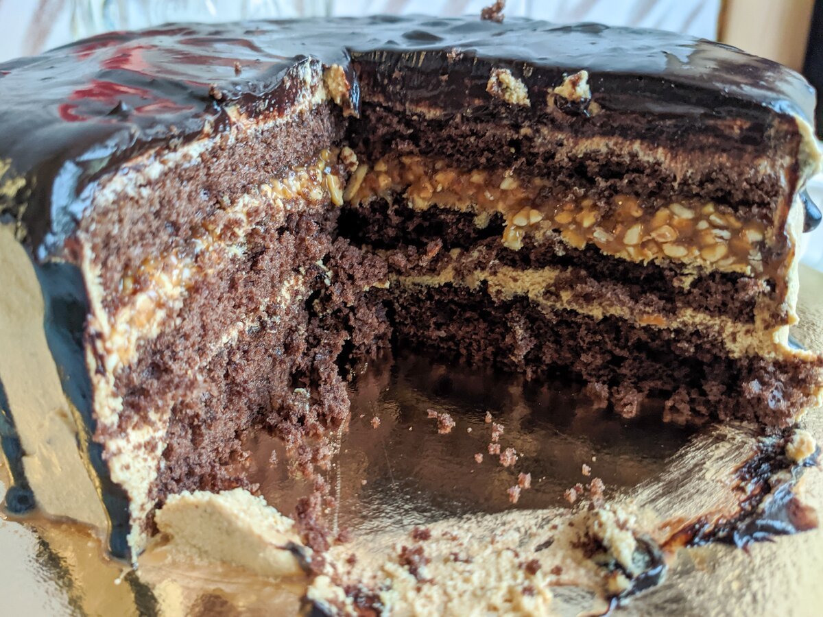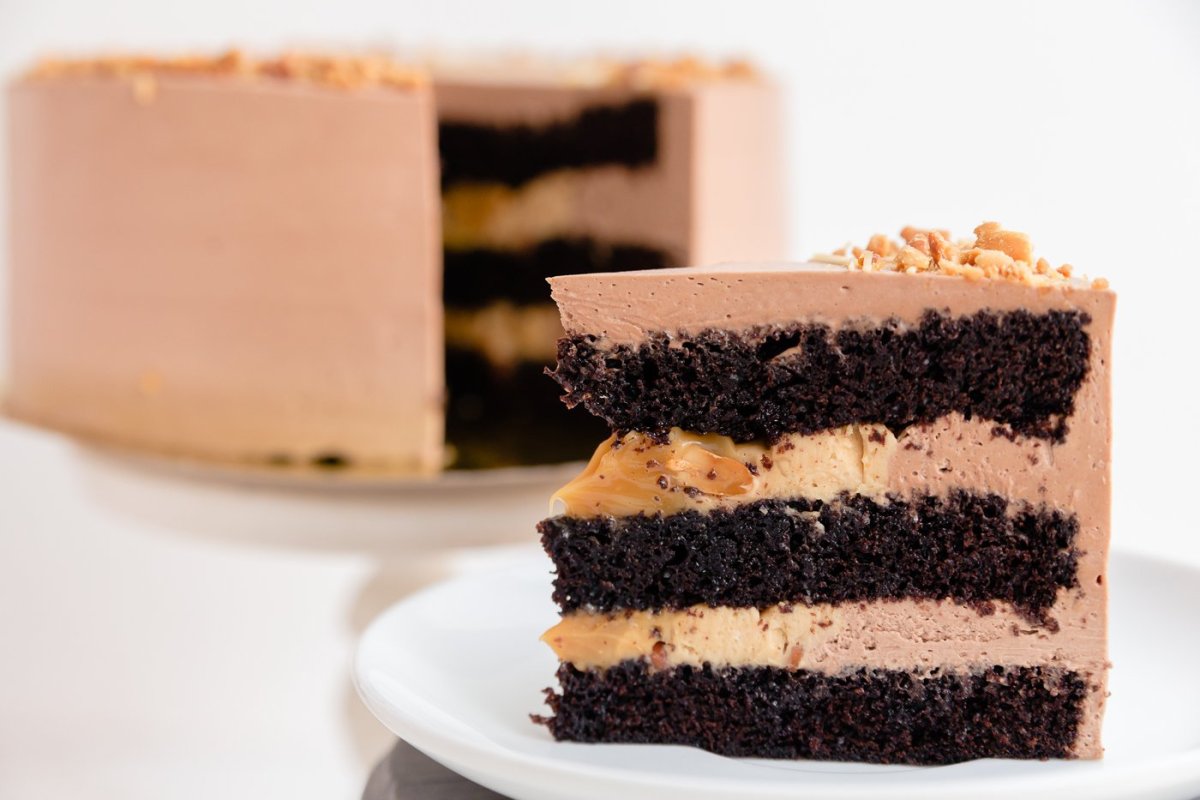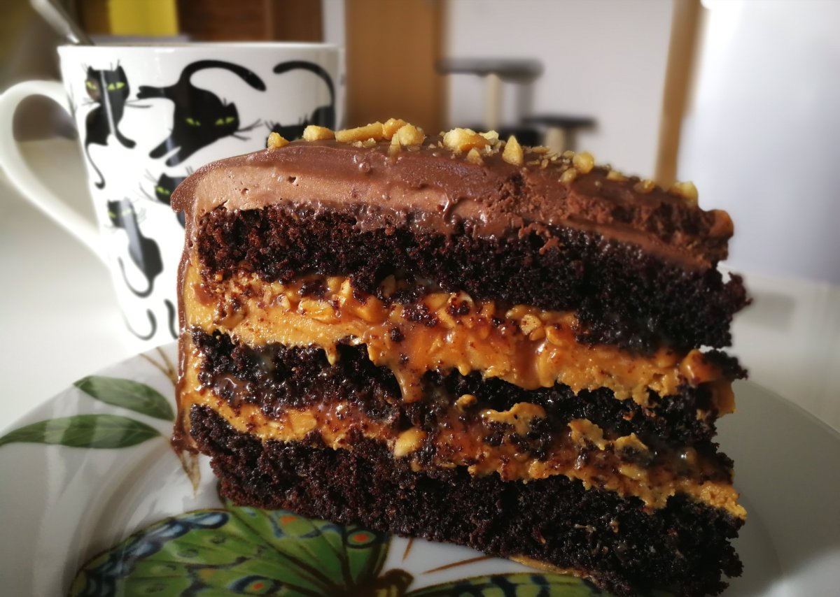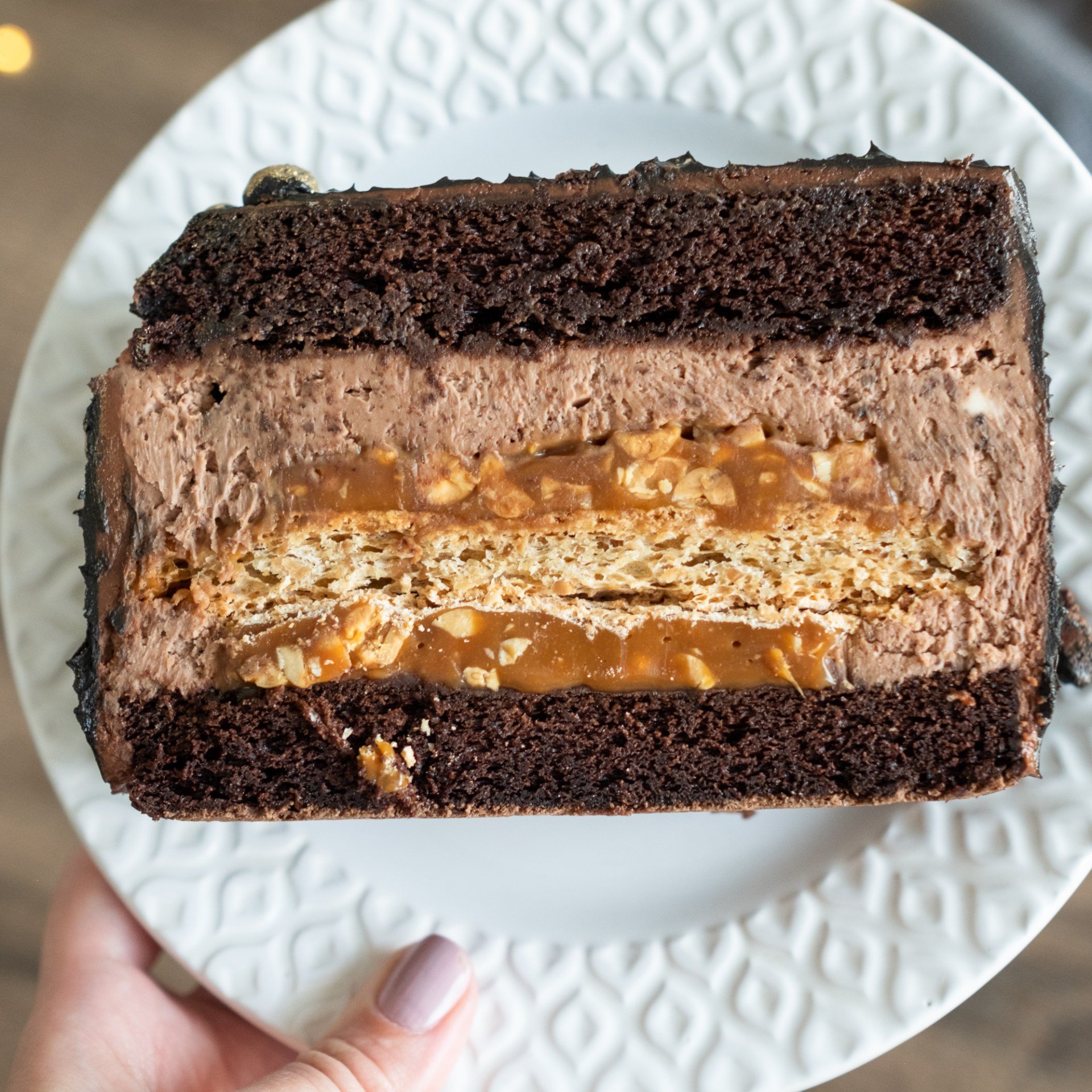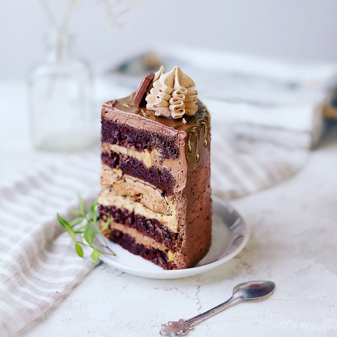 Торт с шоколадным бисквитом и вишней и кремом чиз