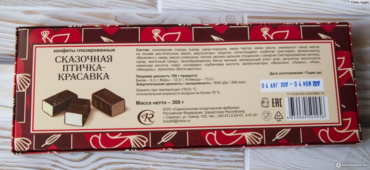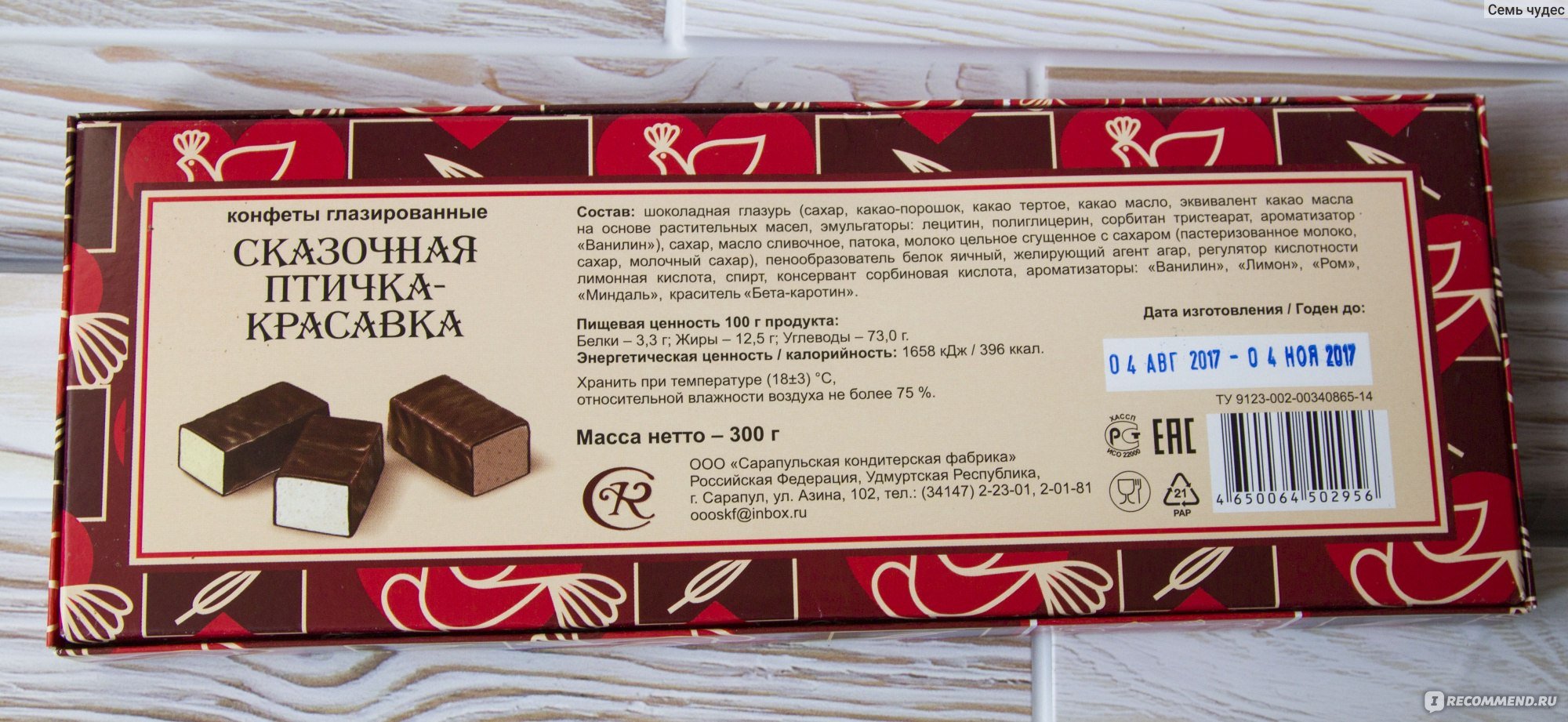 Сказочная птичка красавка Сарапульская кондитерская фабрика