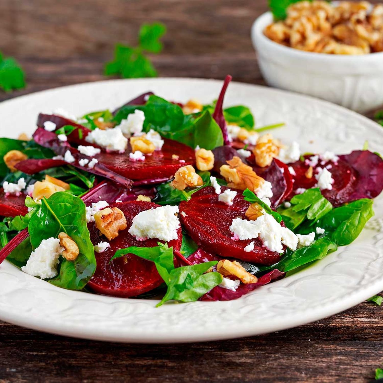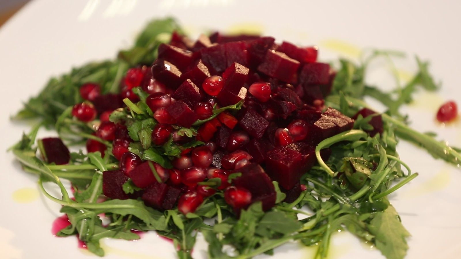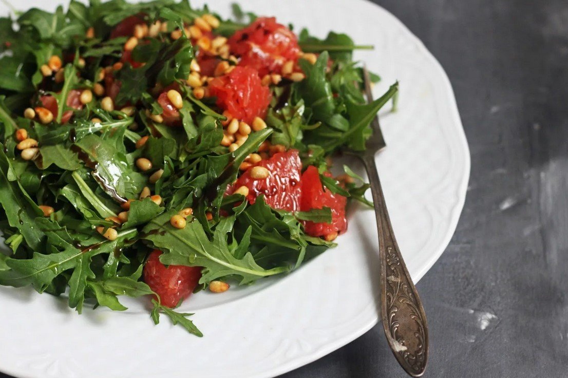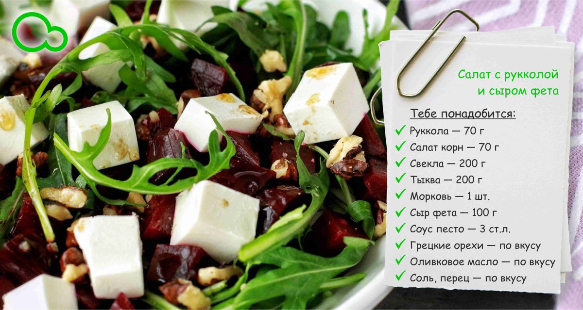 Салат с рукколой свеклой и сыром и кедровыми орешками