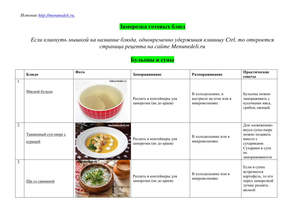 Таблицу 100 блюд, которые можно заморозить дома