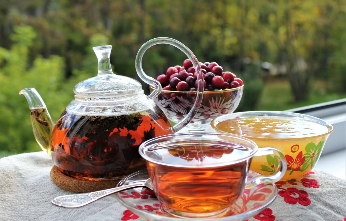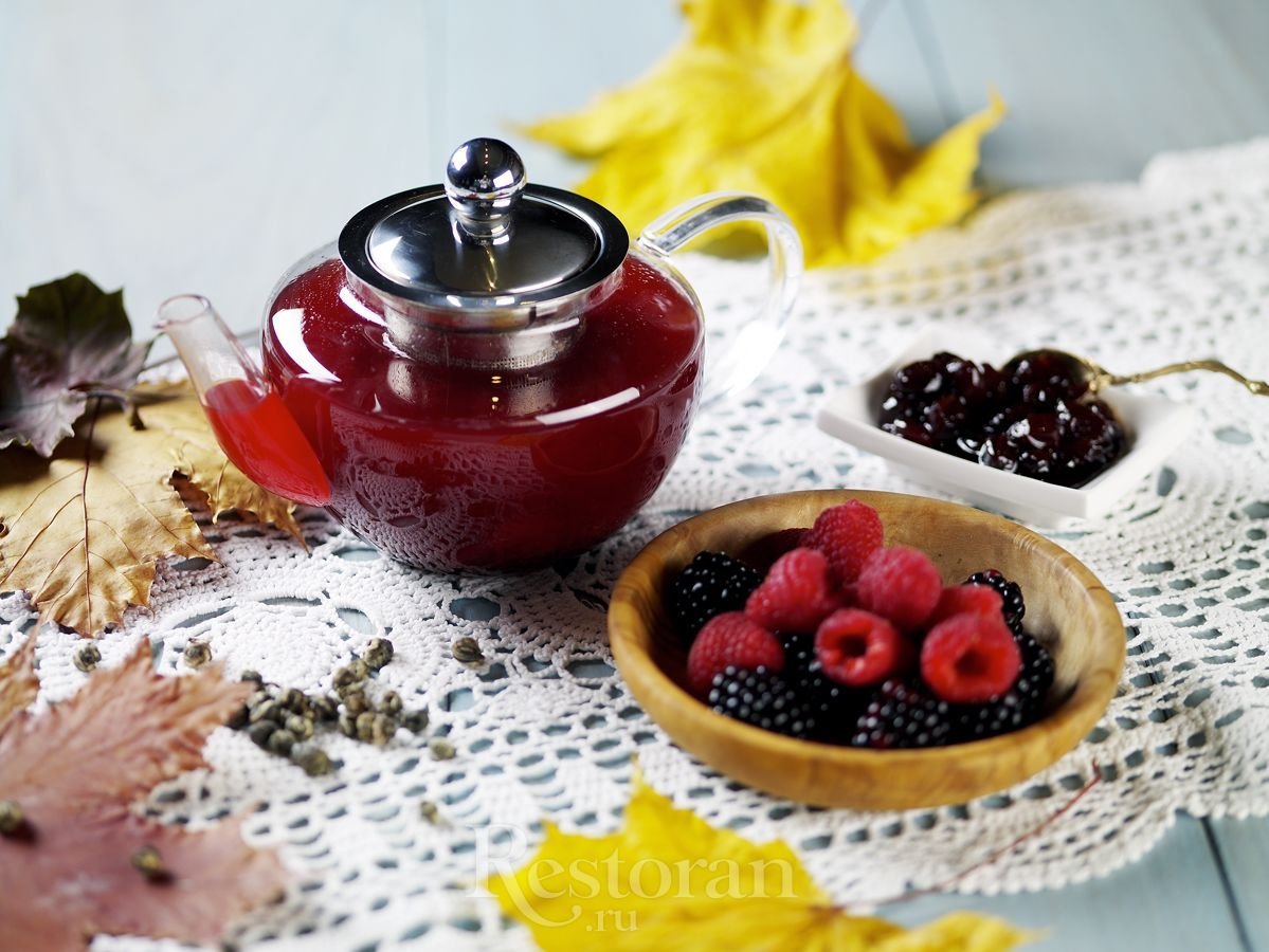 Ягодный чай в чайнике