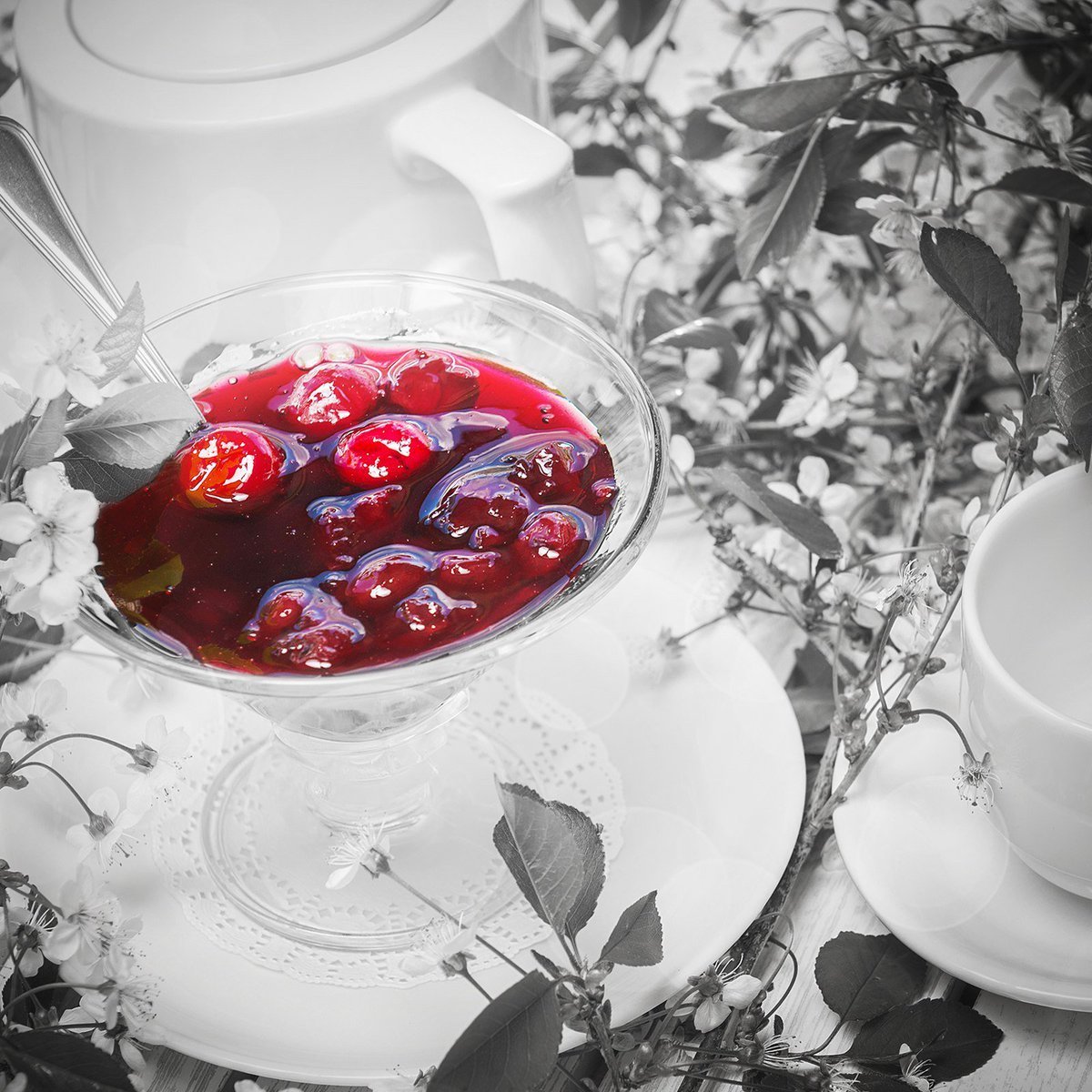 Чаепитие с вишневым вареньем
