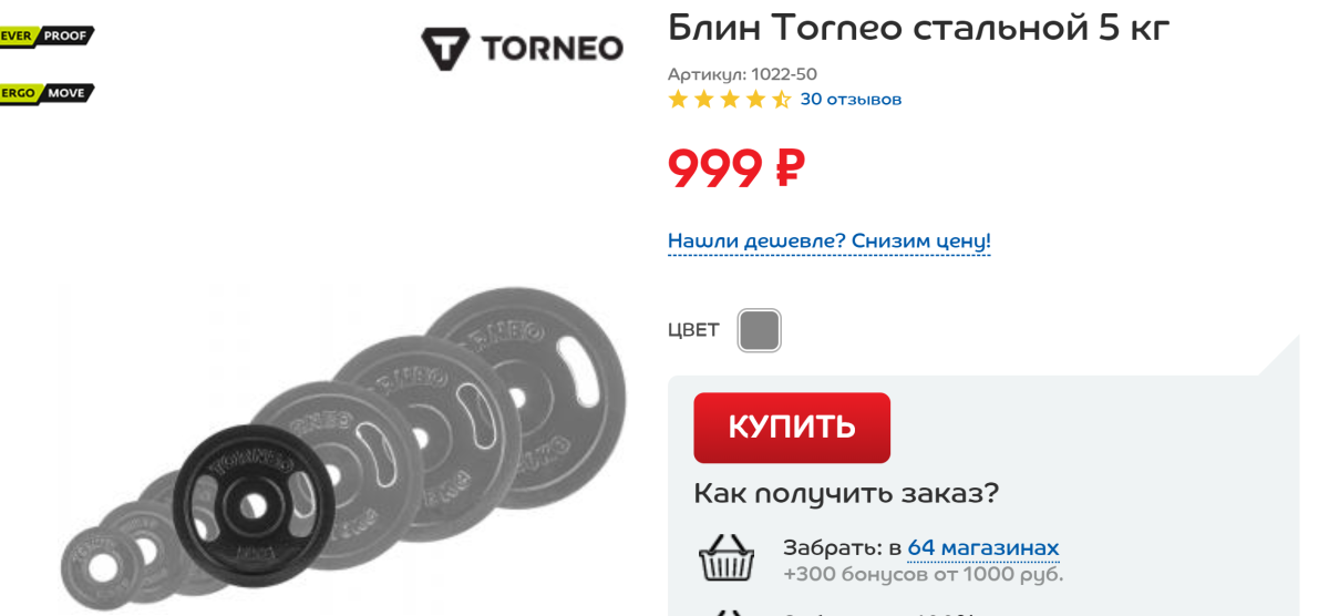Блин Torneo в пластиковом корпусе 10 кг, 2020-21