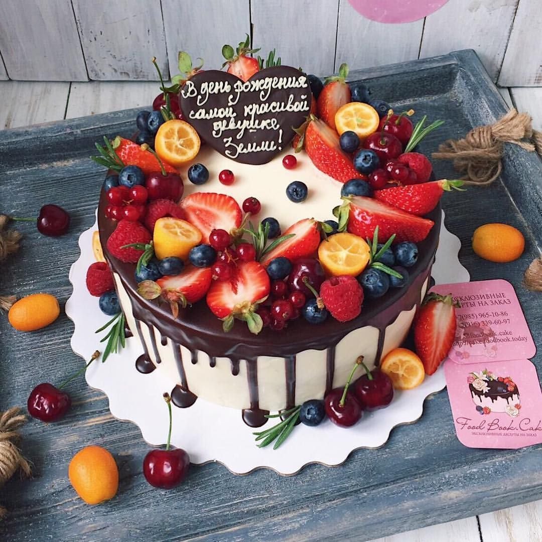 Торт на день рождения с фруктами и ягодами