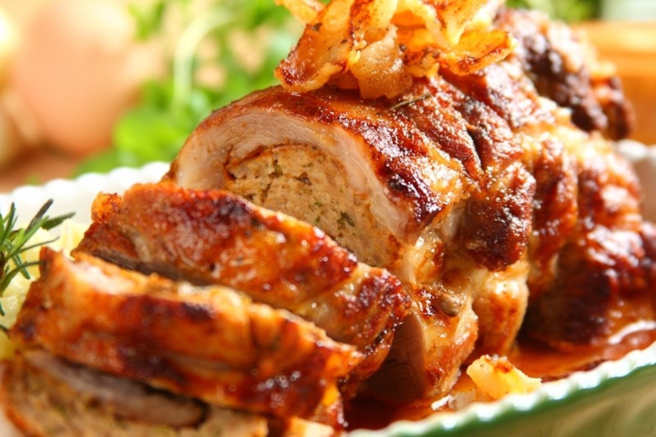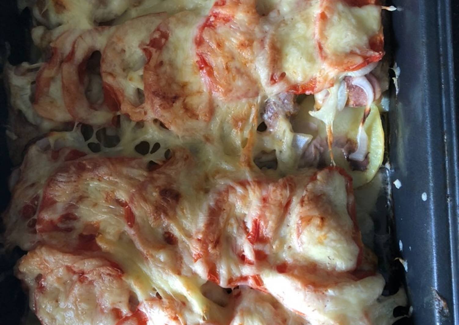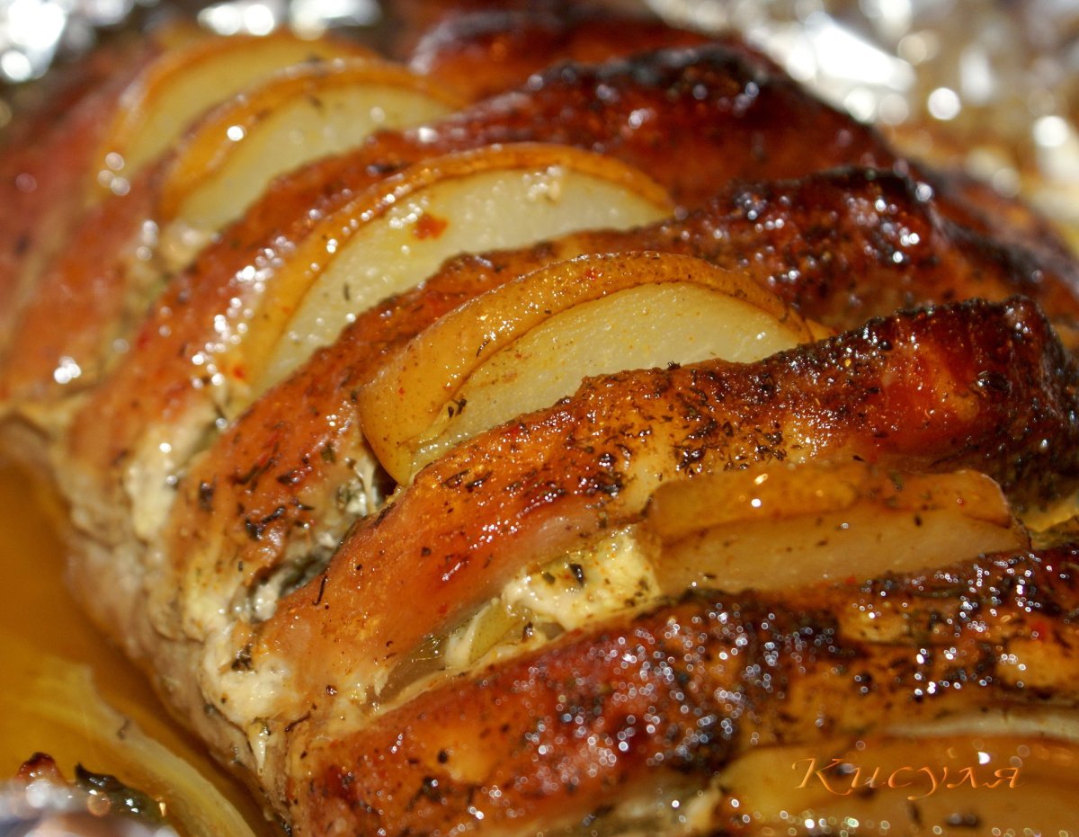 Свинина гармошка запеченная в духовке с помидорами и сыром