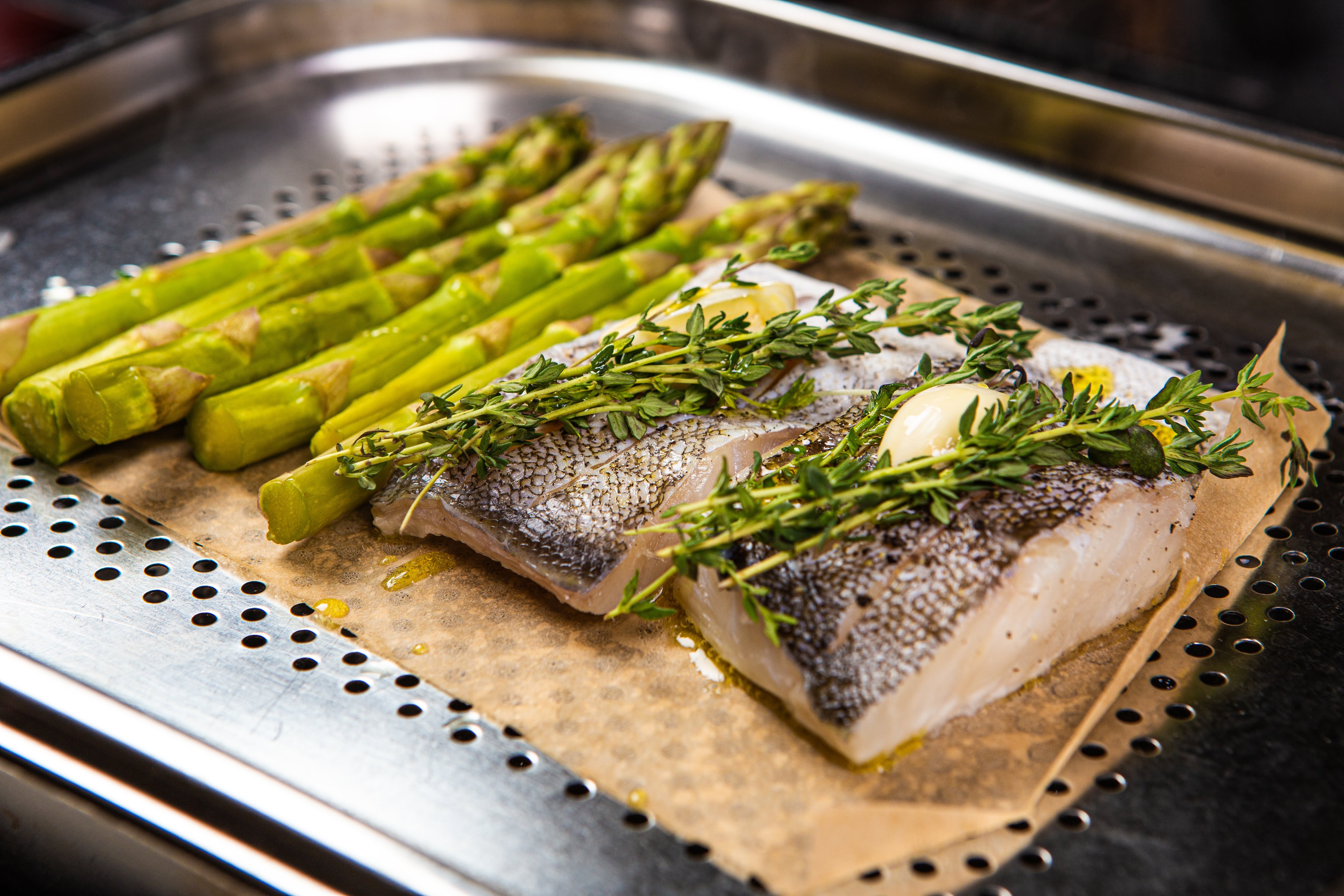 Карпаччо сибас спаржа