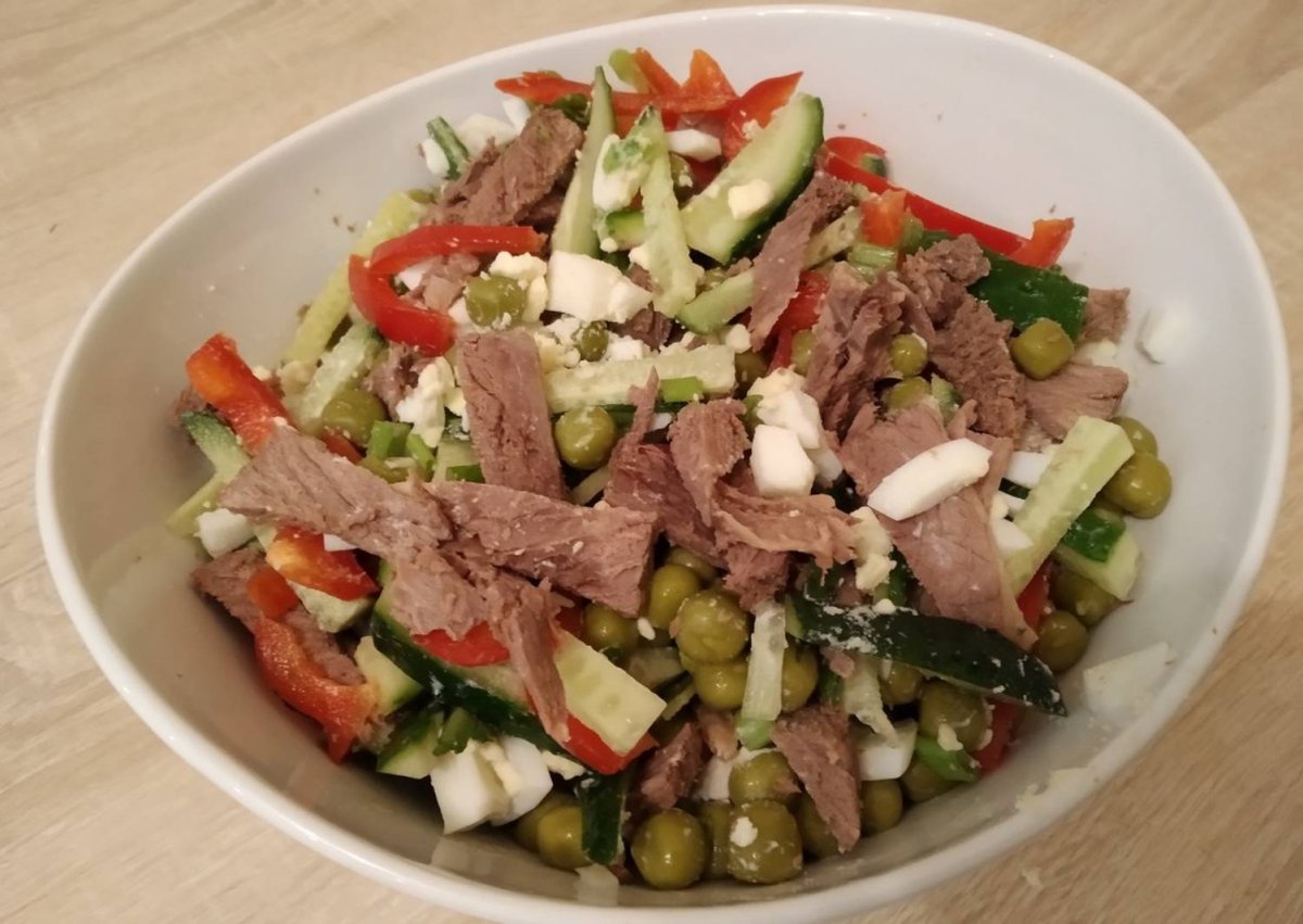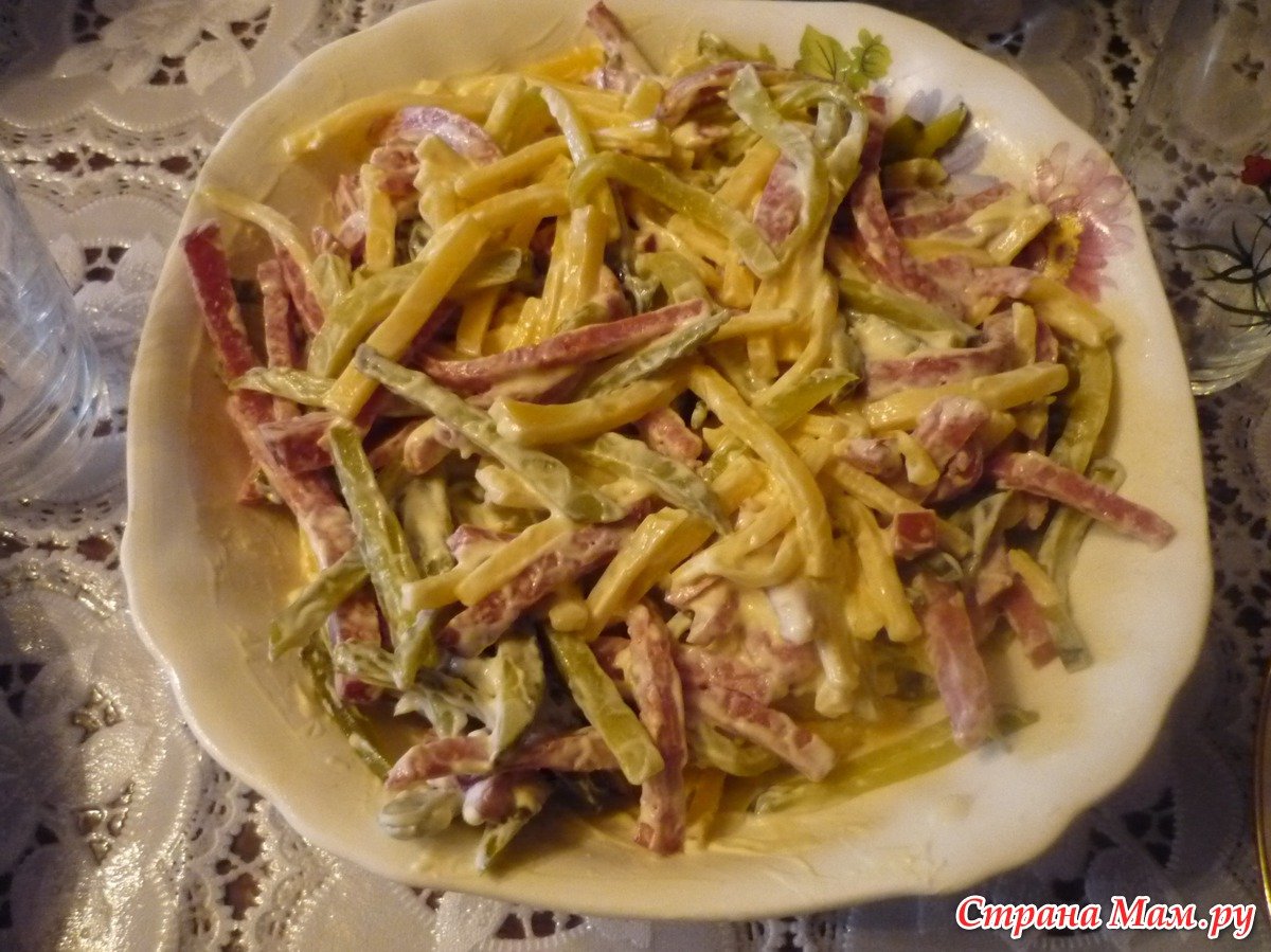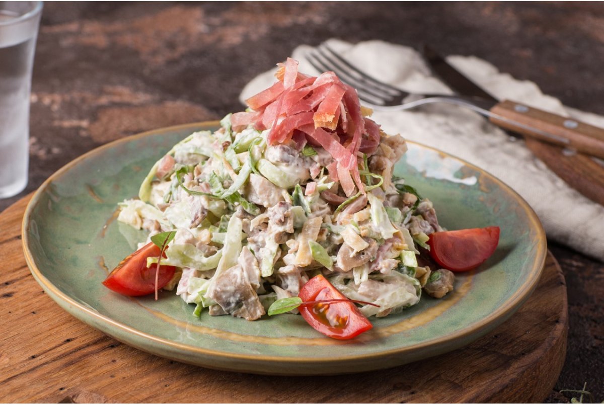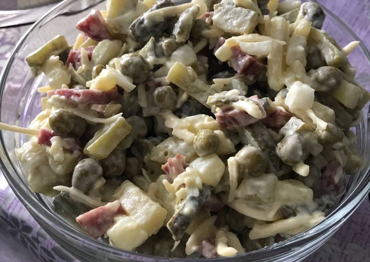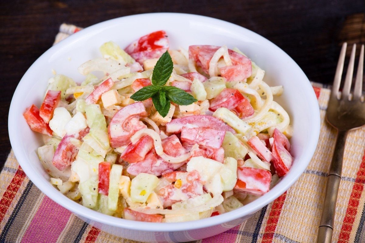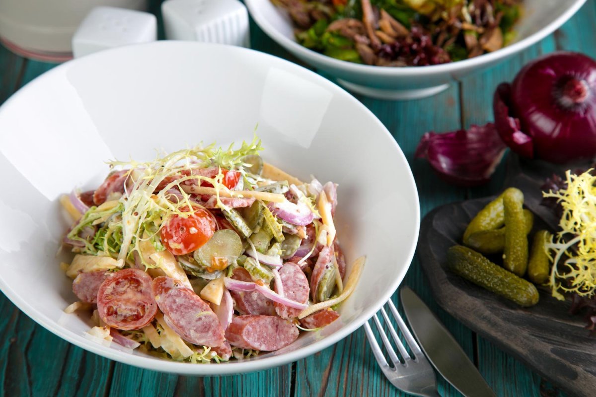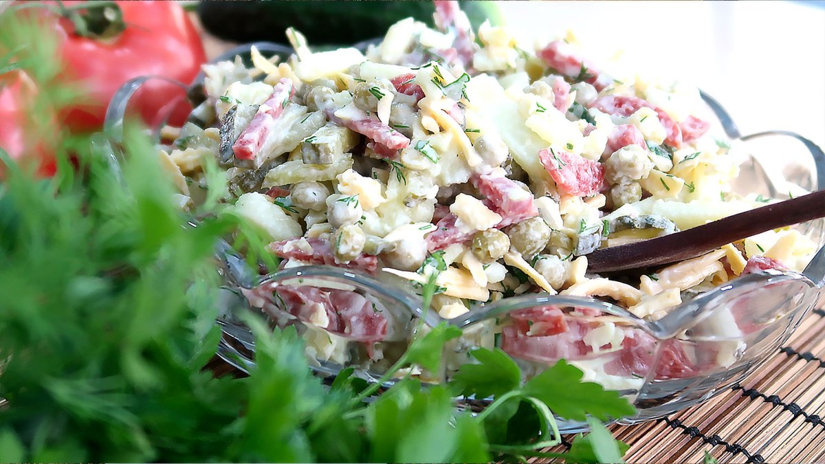 Салат из пекинской капусты с огурцом и кукурузой и колбасой копченой