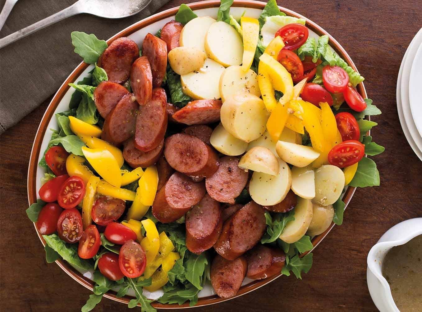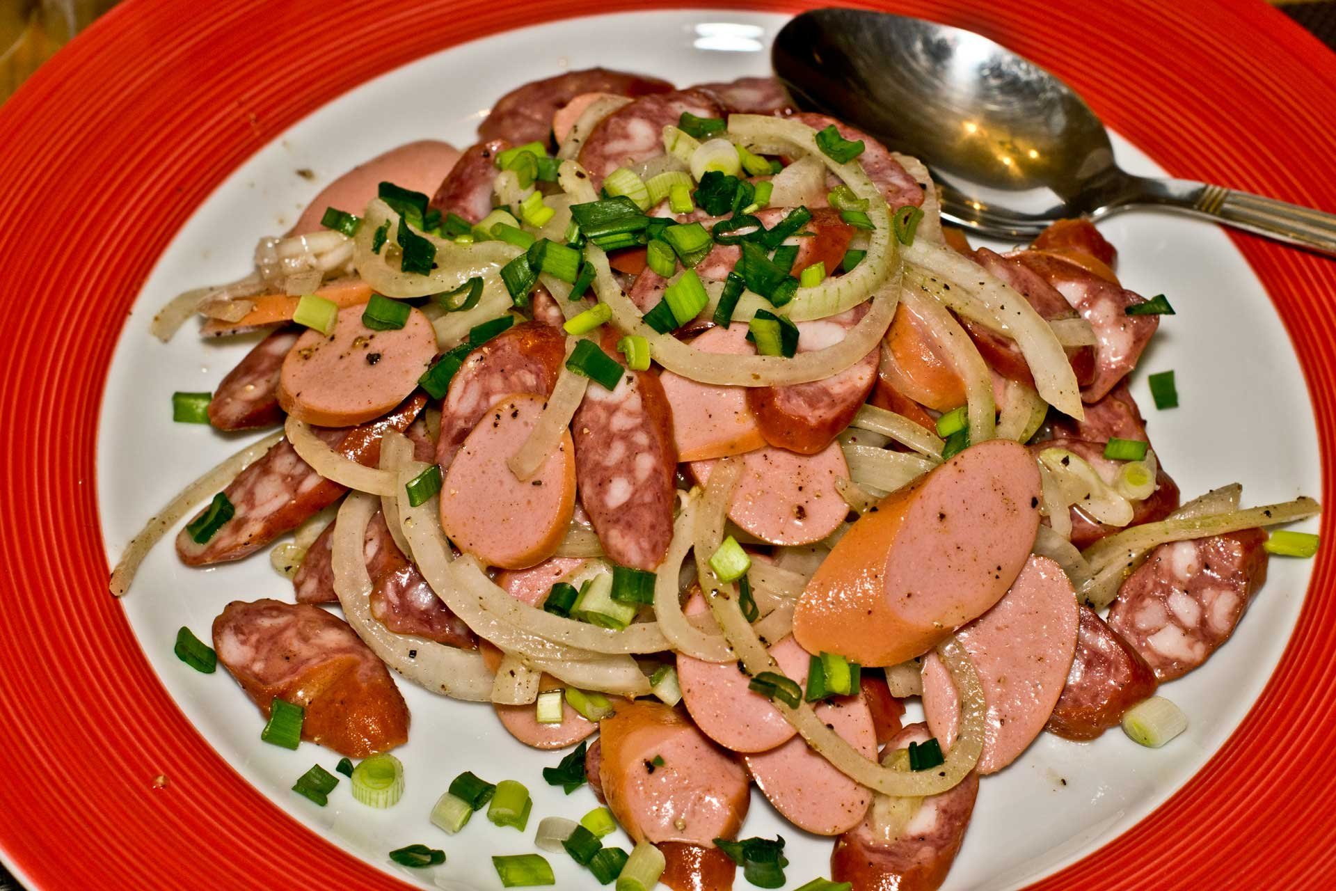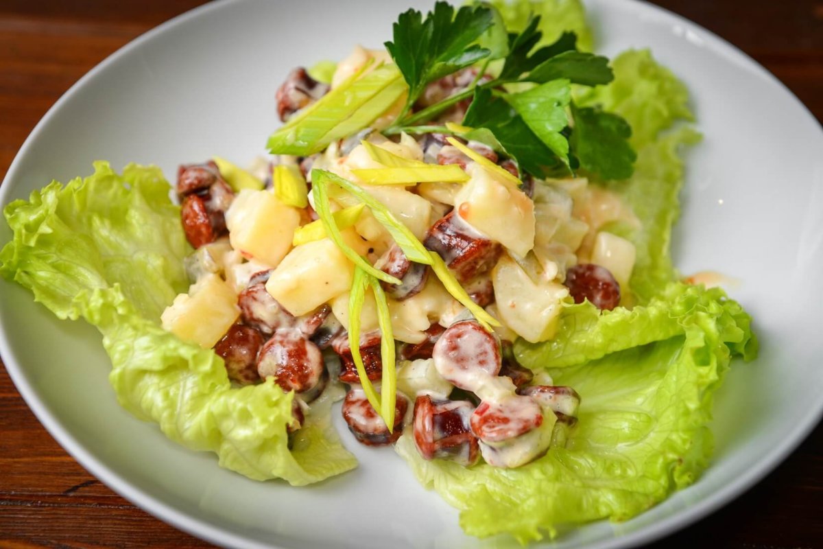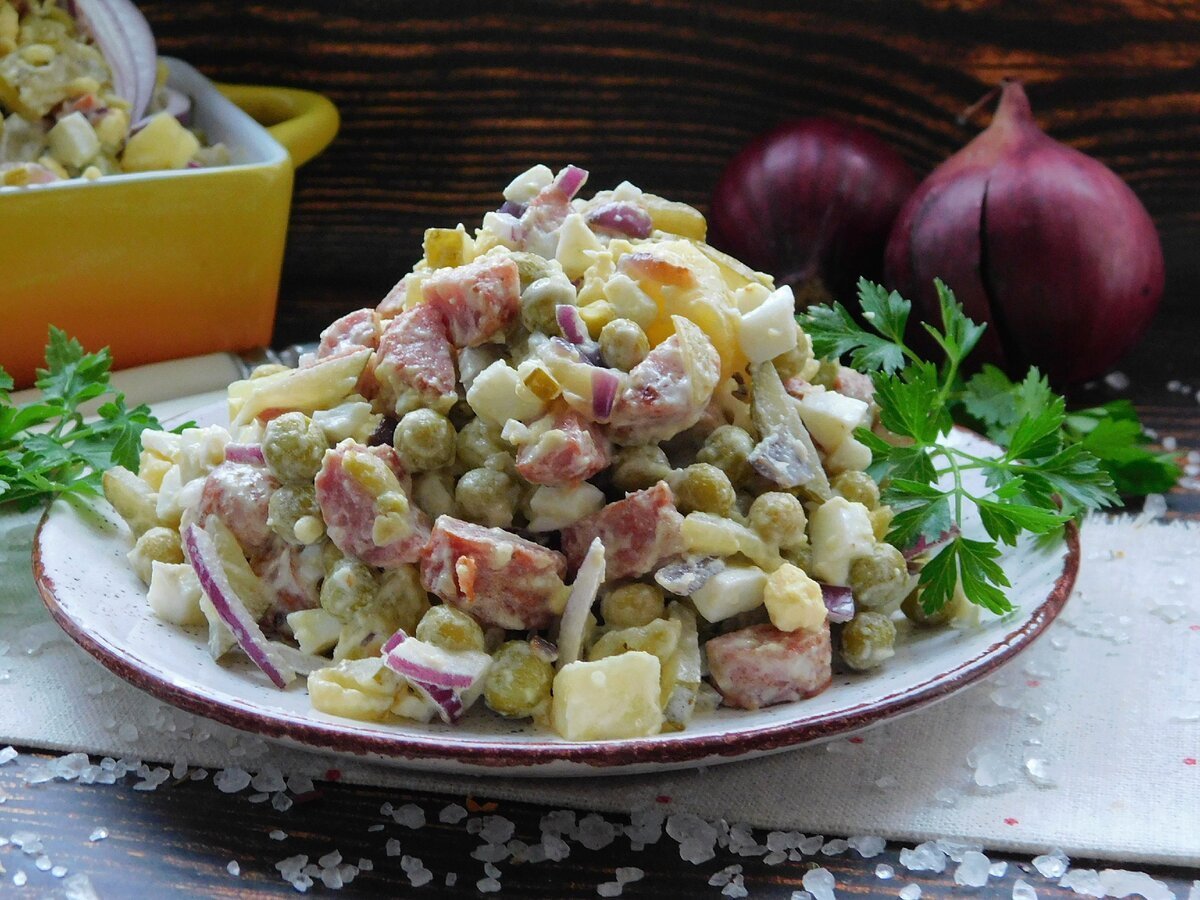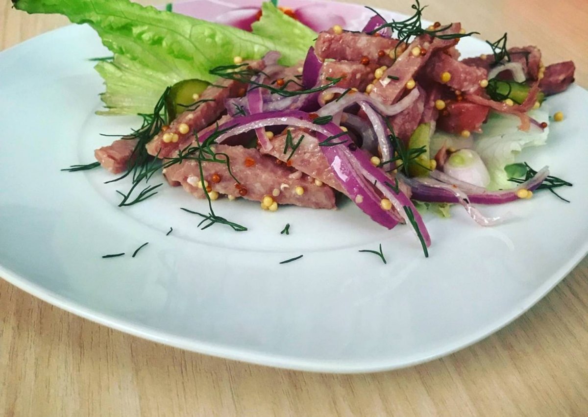 Салат из пекинской капусты с огурцом и кукурузой и колбасой копченой