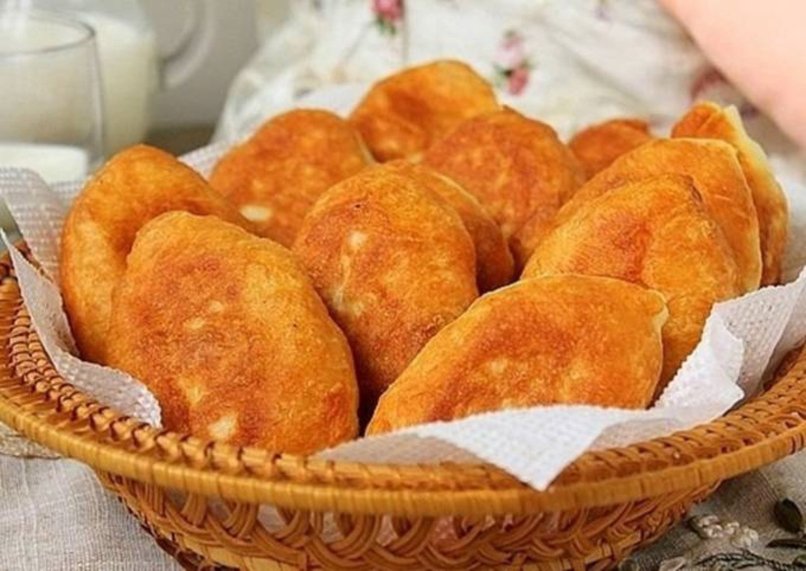 Жареные пирожки в корзинке