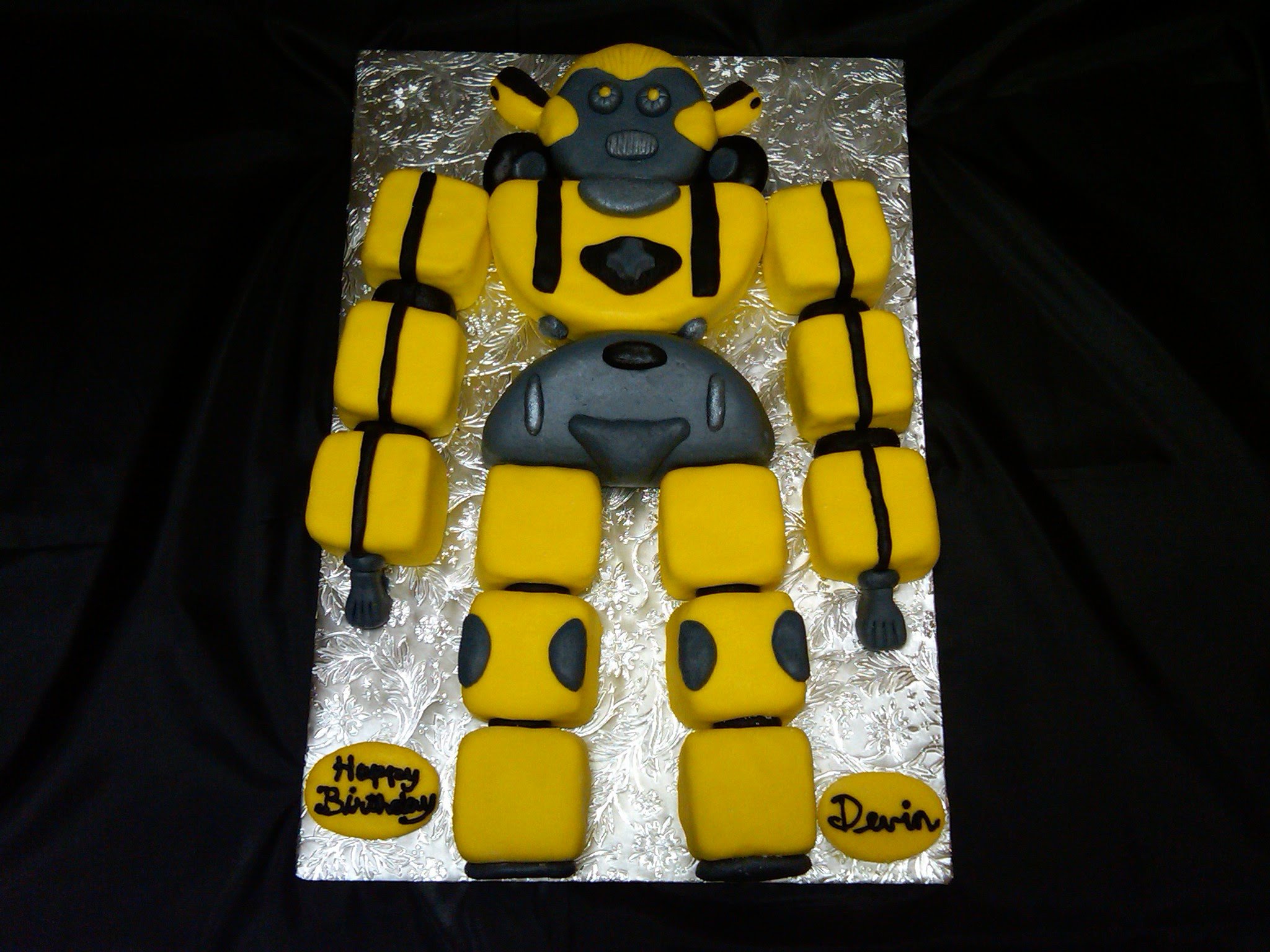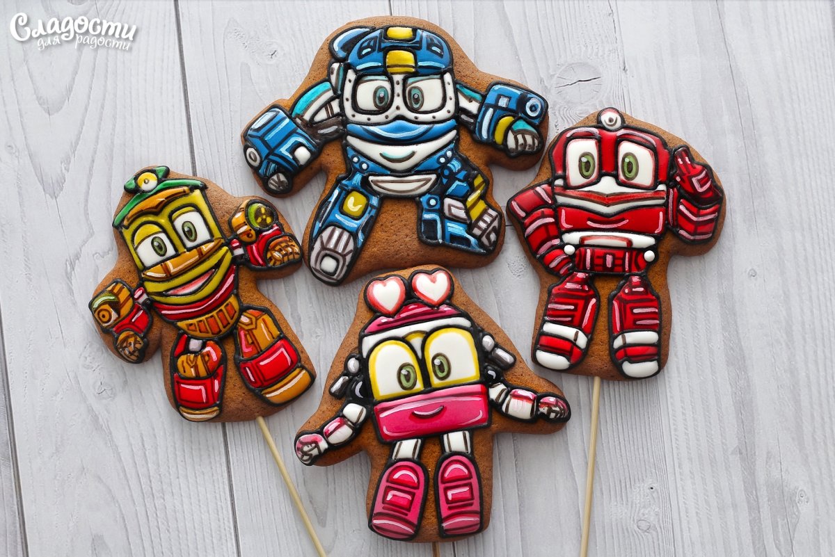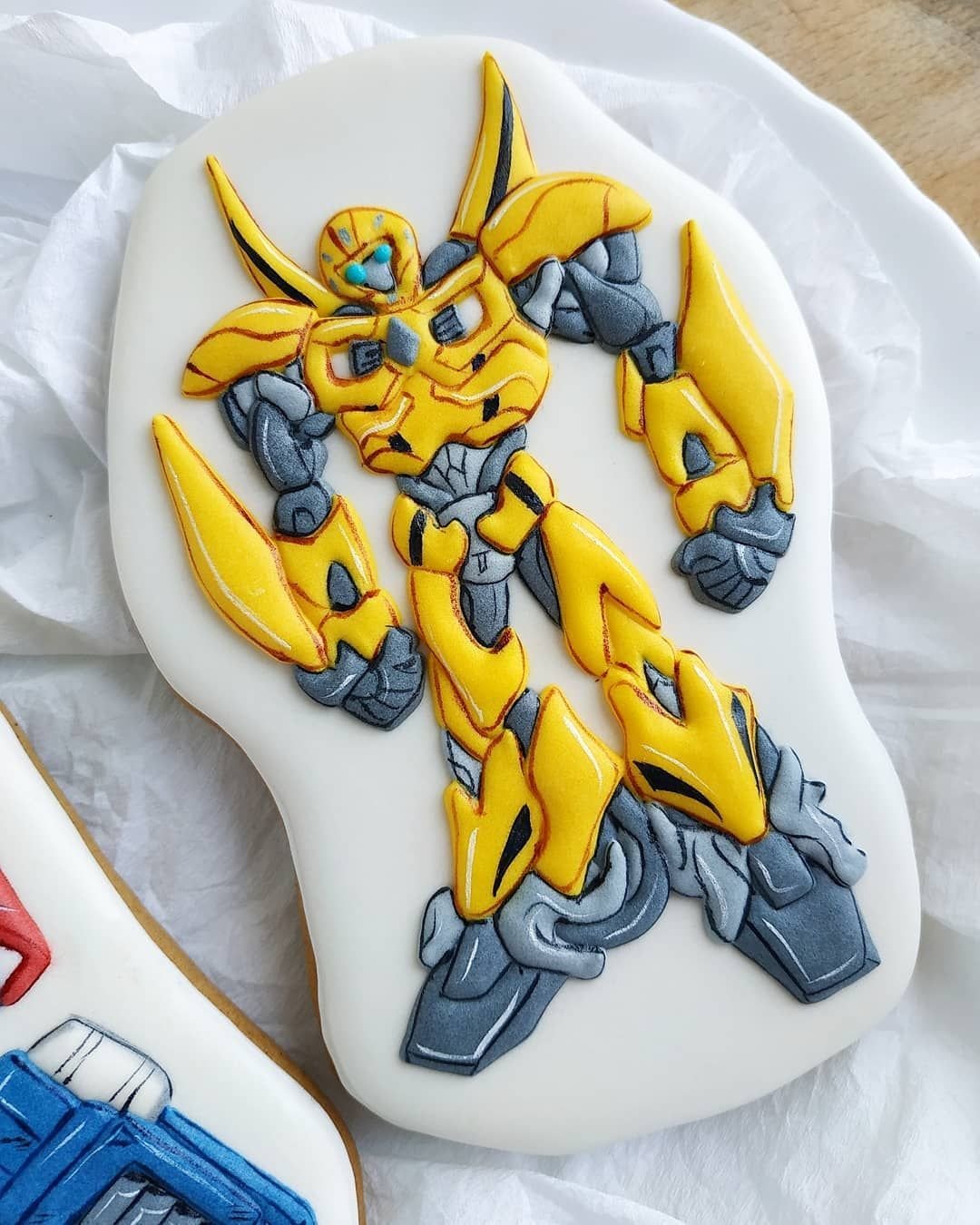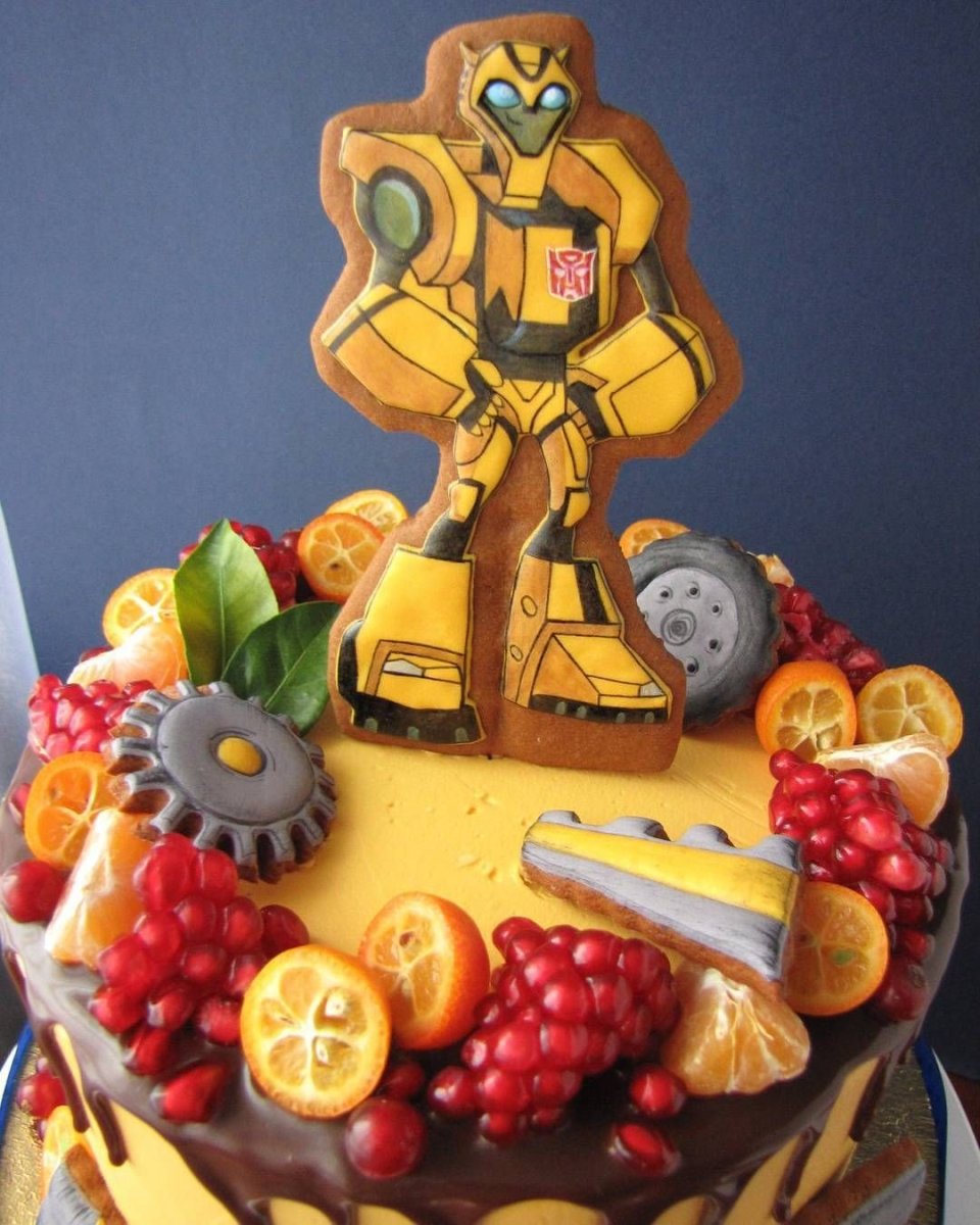 Торт на 6 лет мальчику с пряниками Бамблби и Оптимус Прайм
