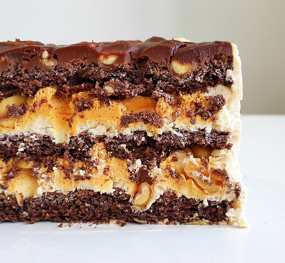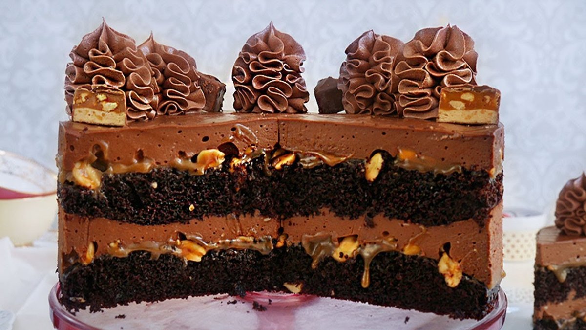 Snickers Mousse Cake - Chocolate Caramel Peanut Mousse Cake