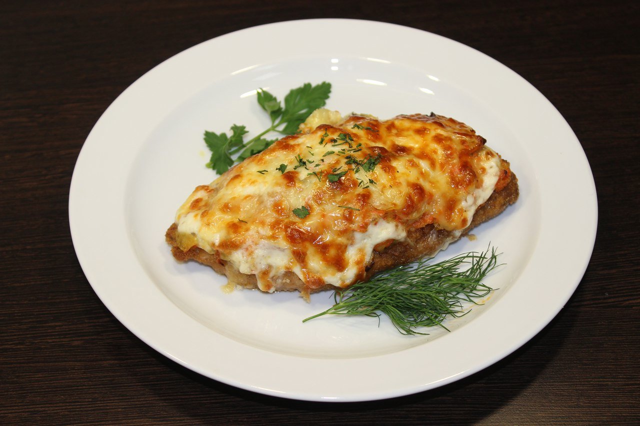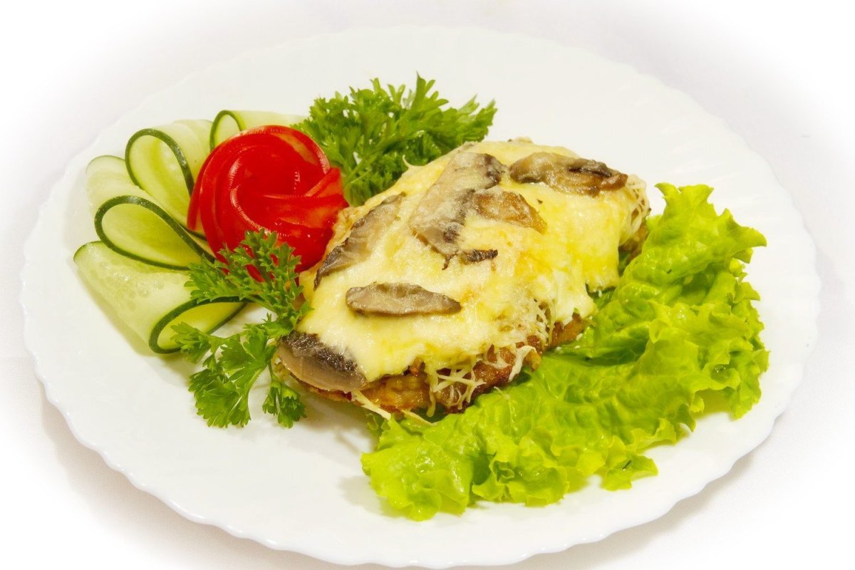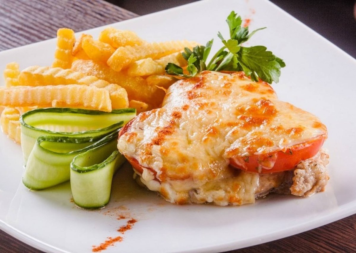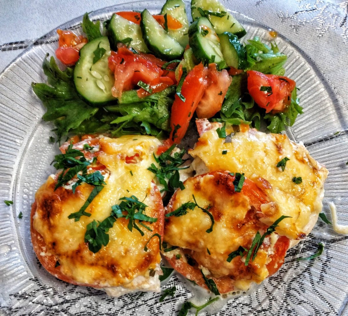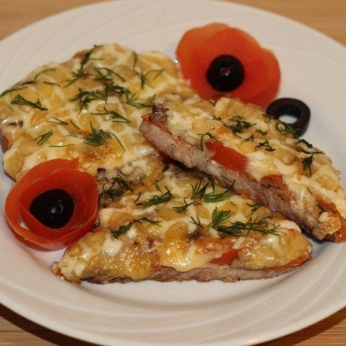 Куриная грудка под шубой в духовке с помидорами и сыром