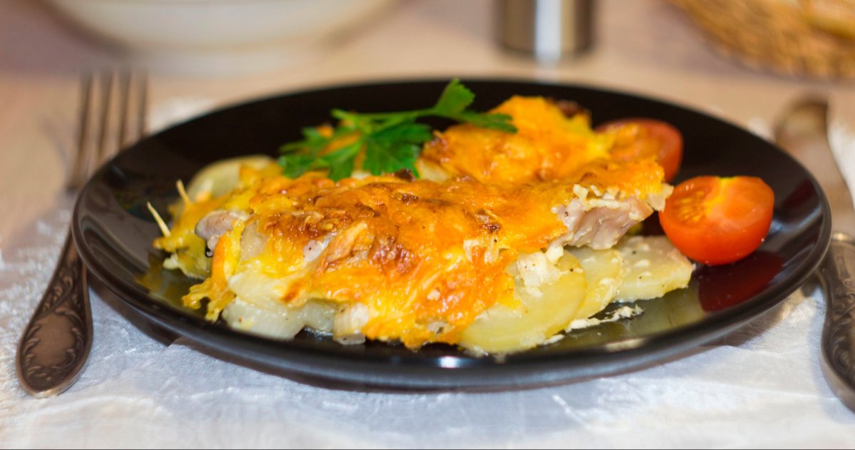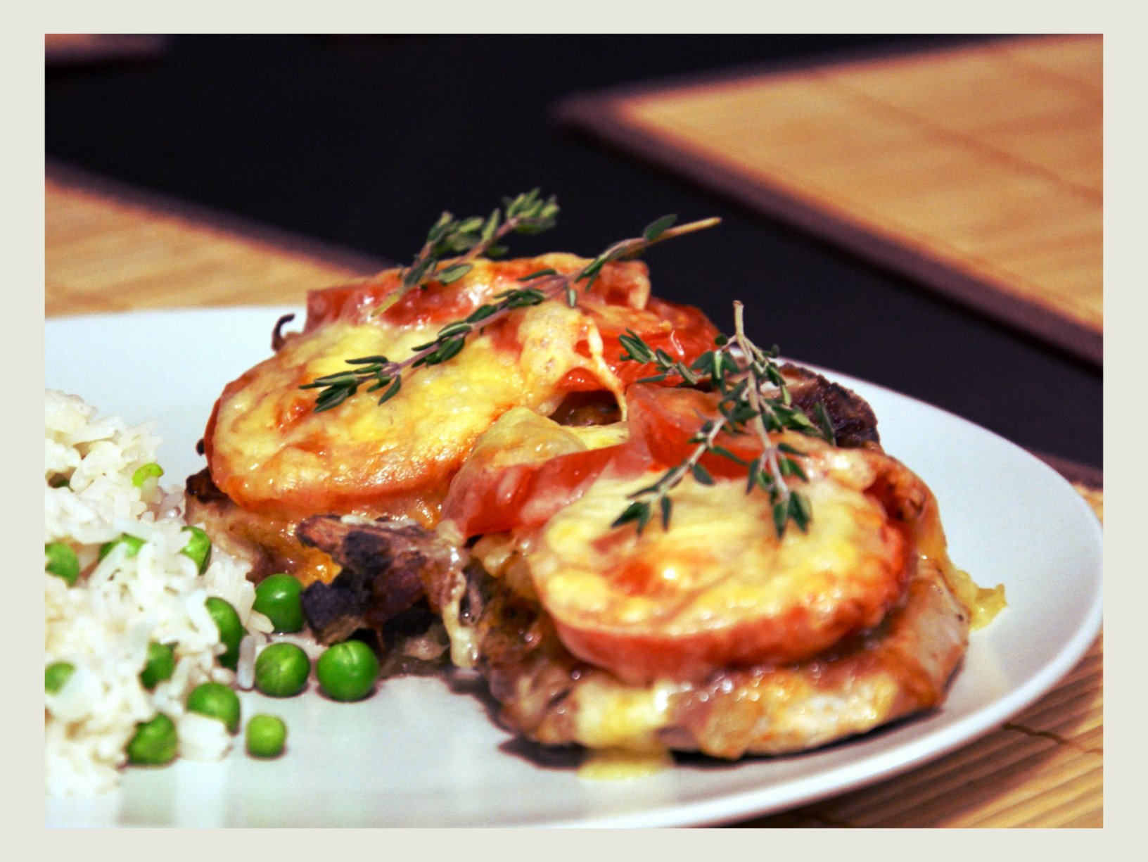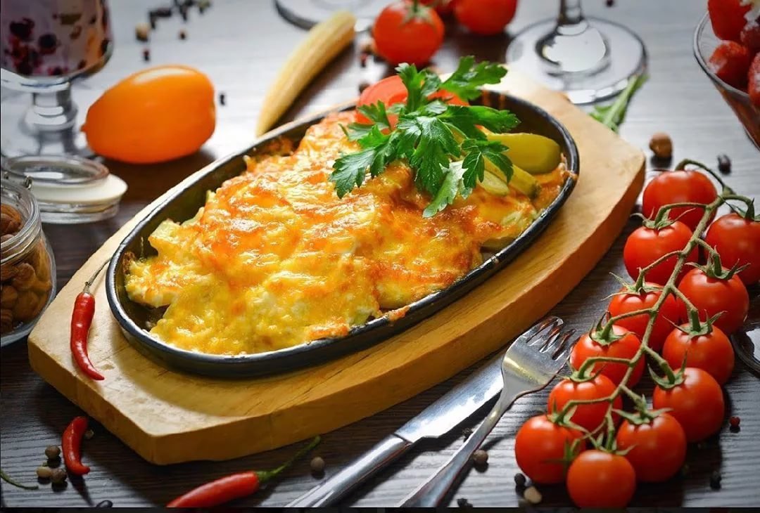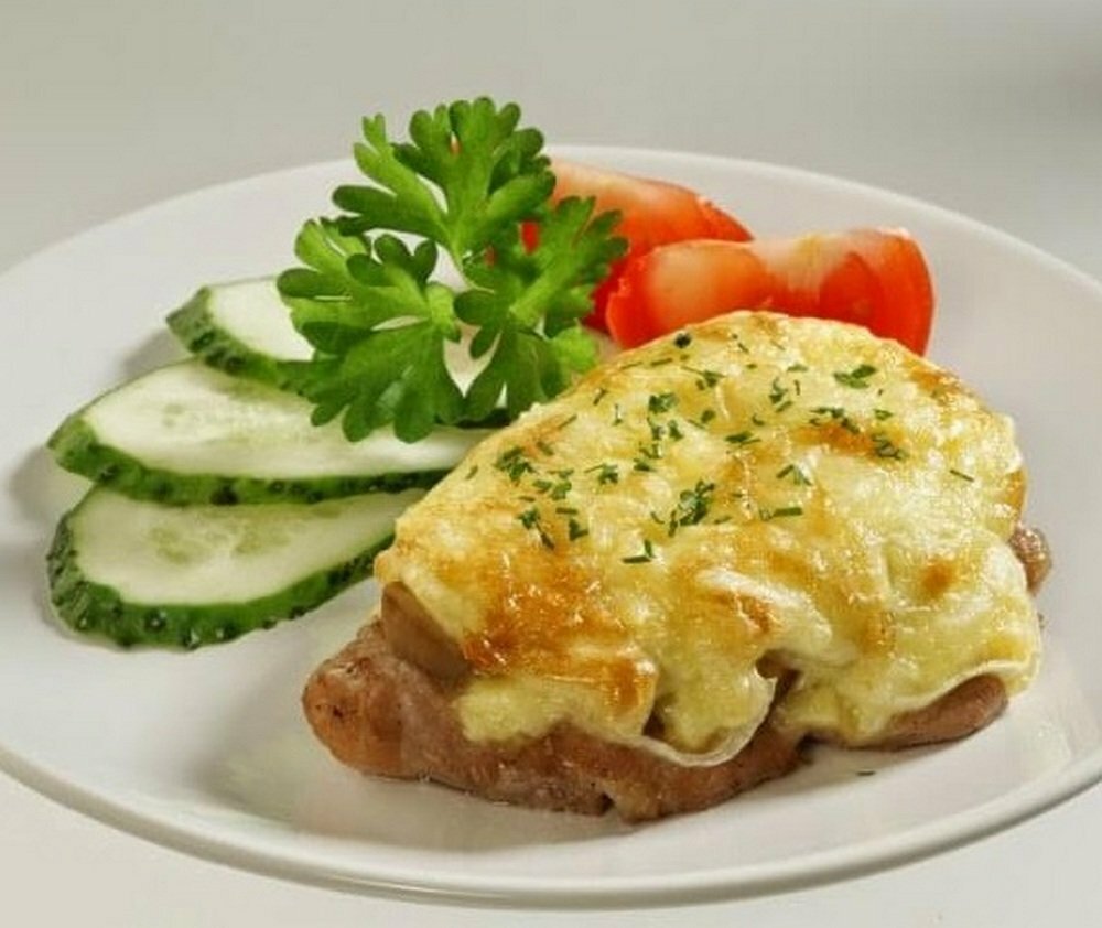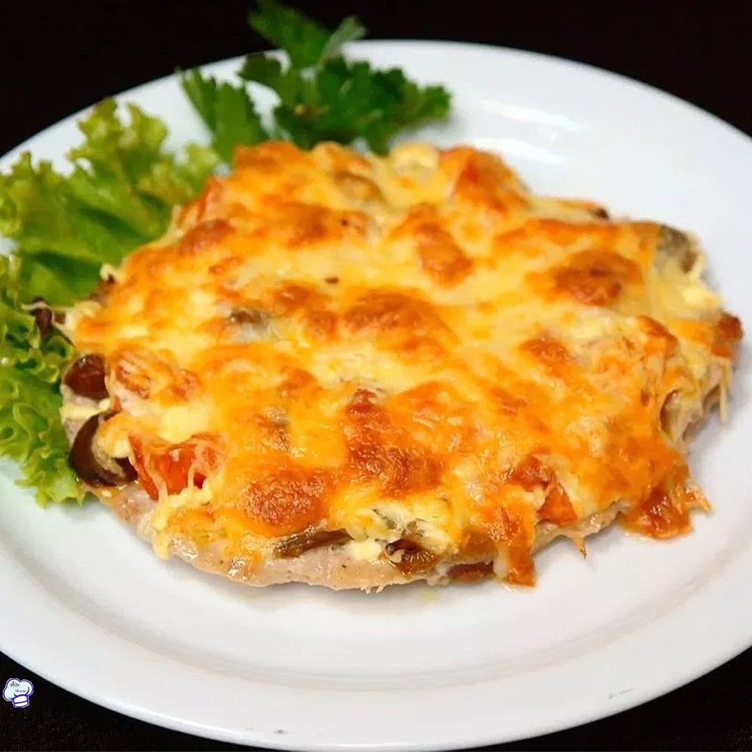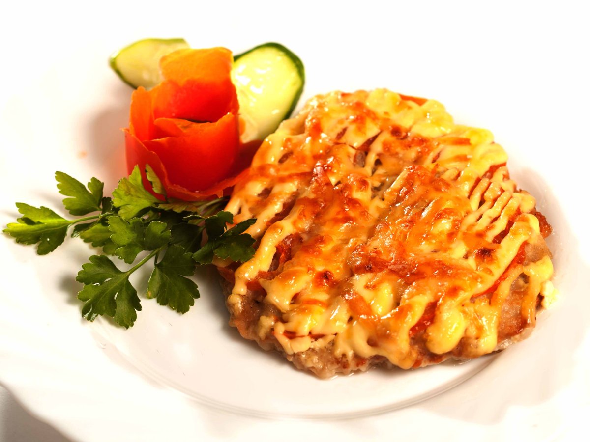 Куриная грудка под шубой в духовке с помидорами и сыром