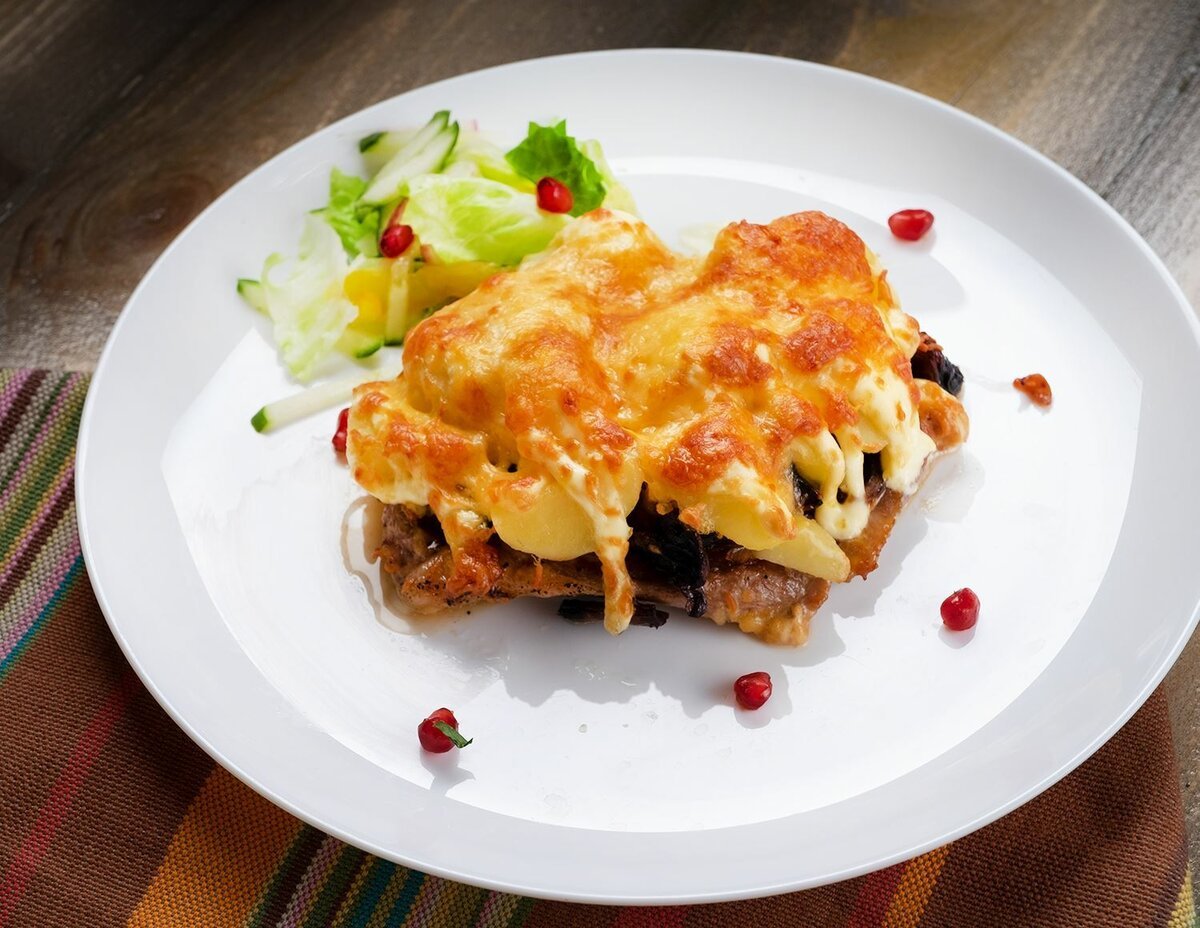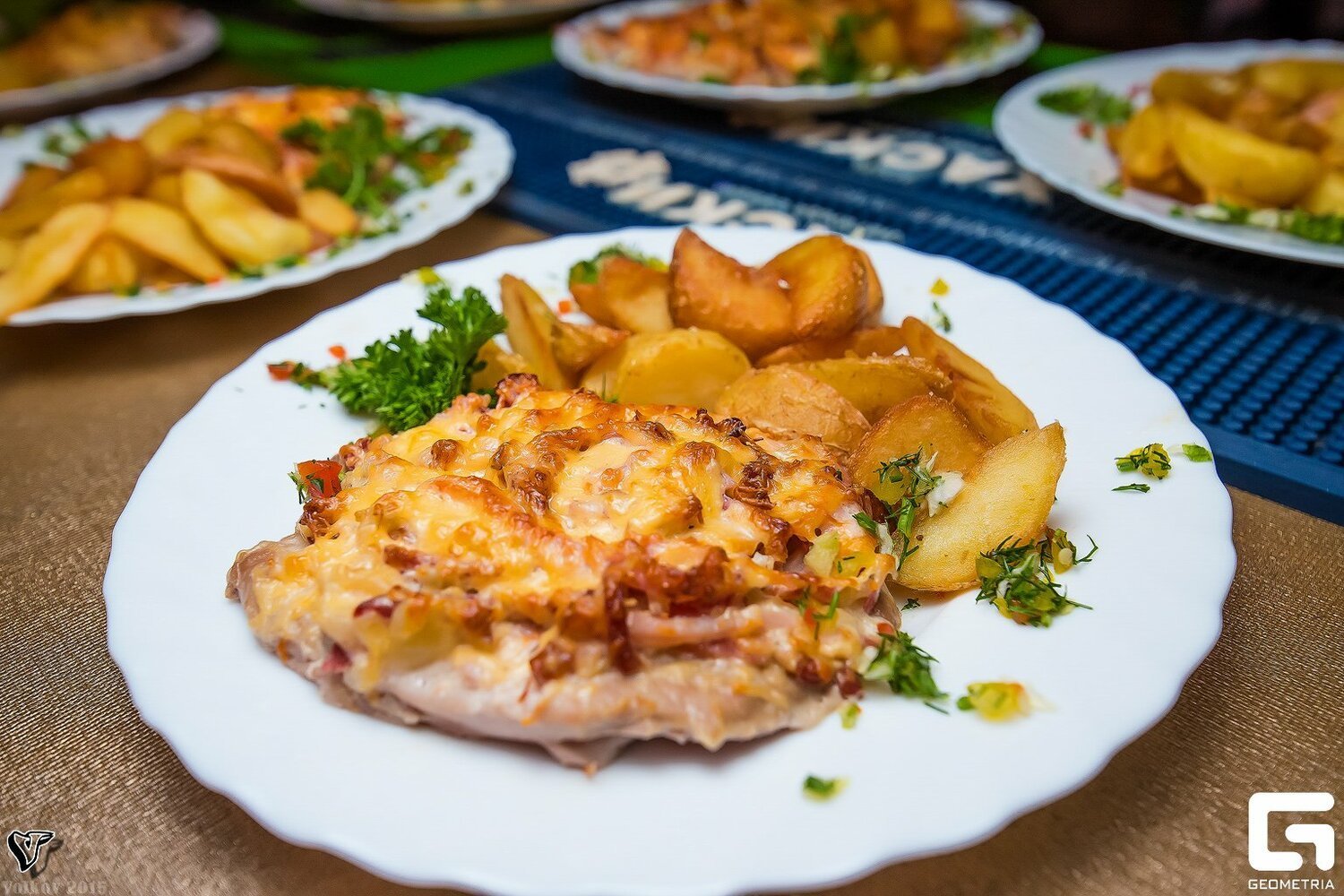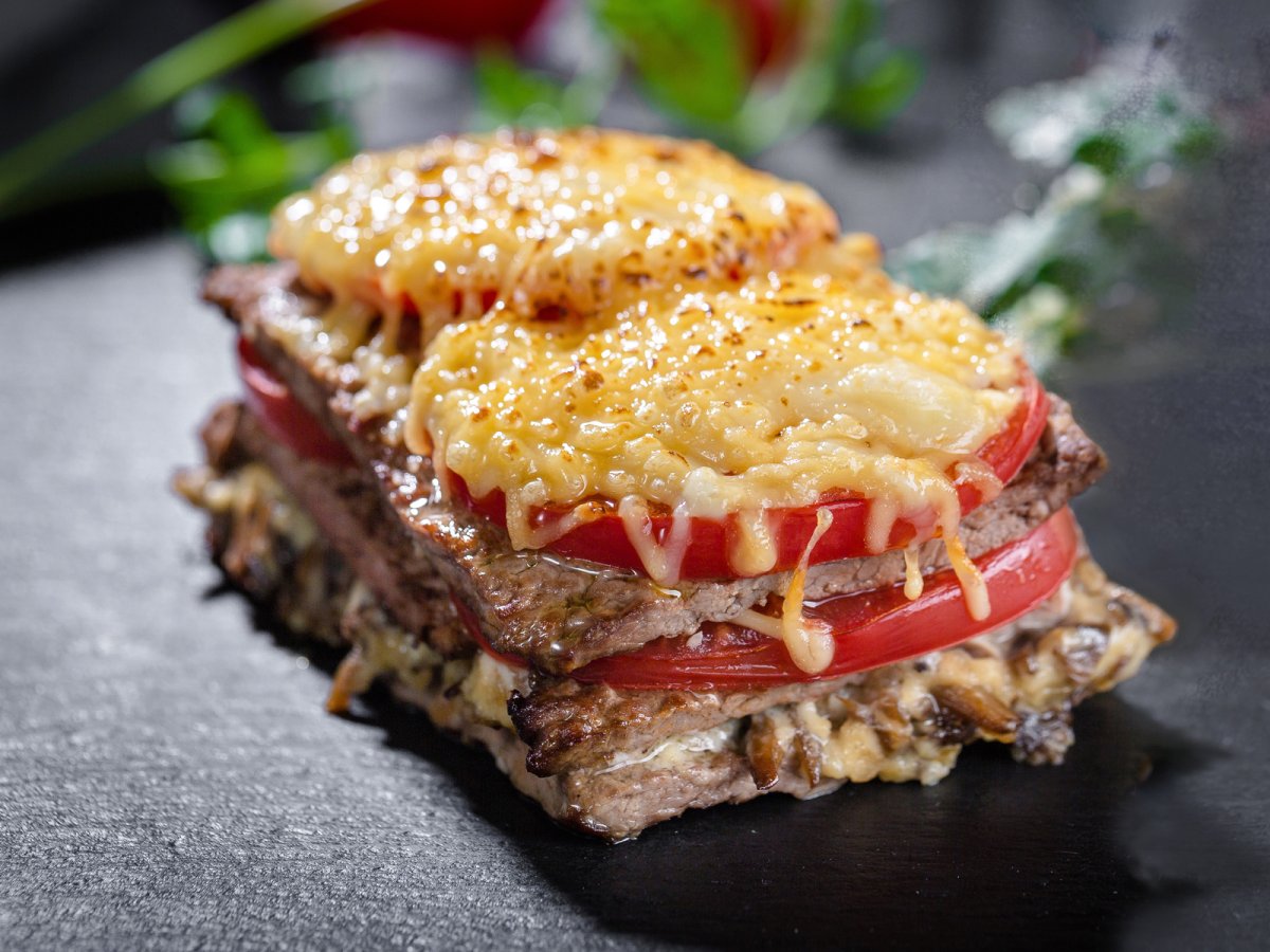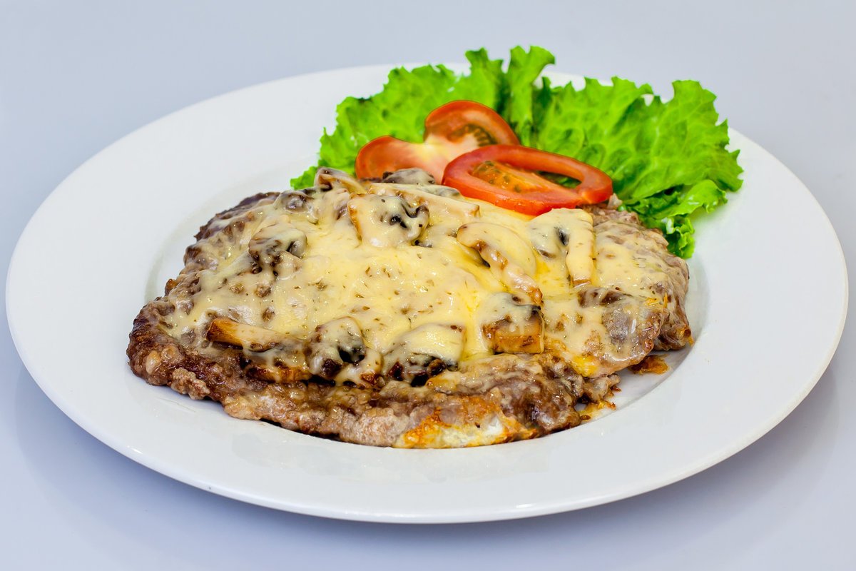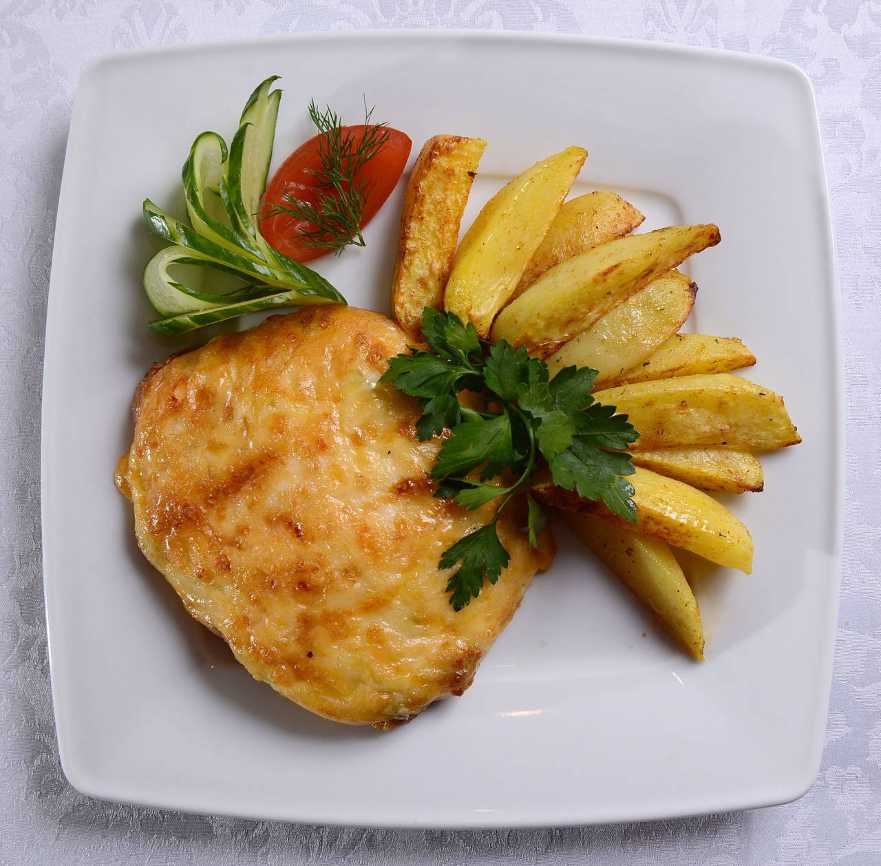 Куриная грудка под шубой в духовке с помидорами и сыром