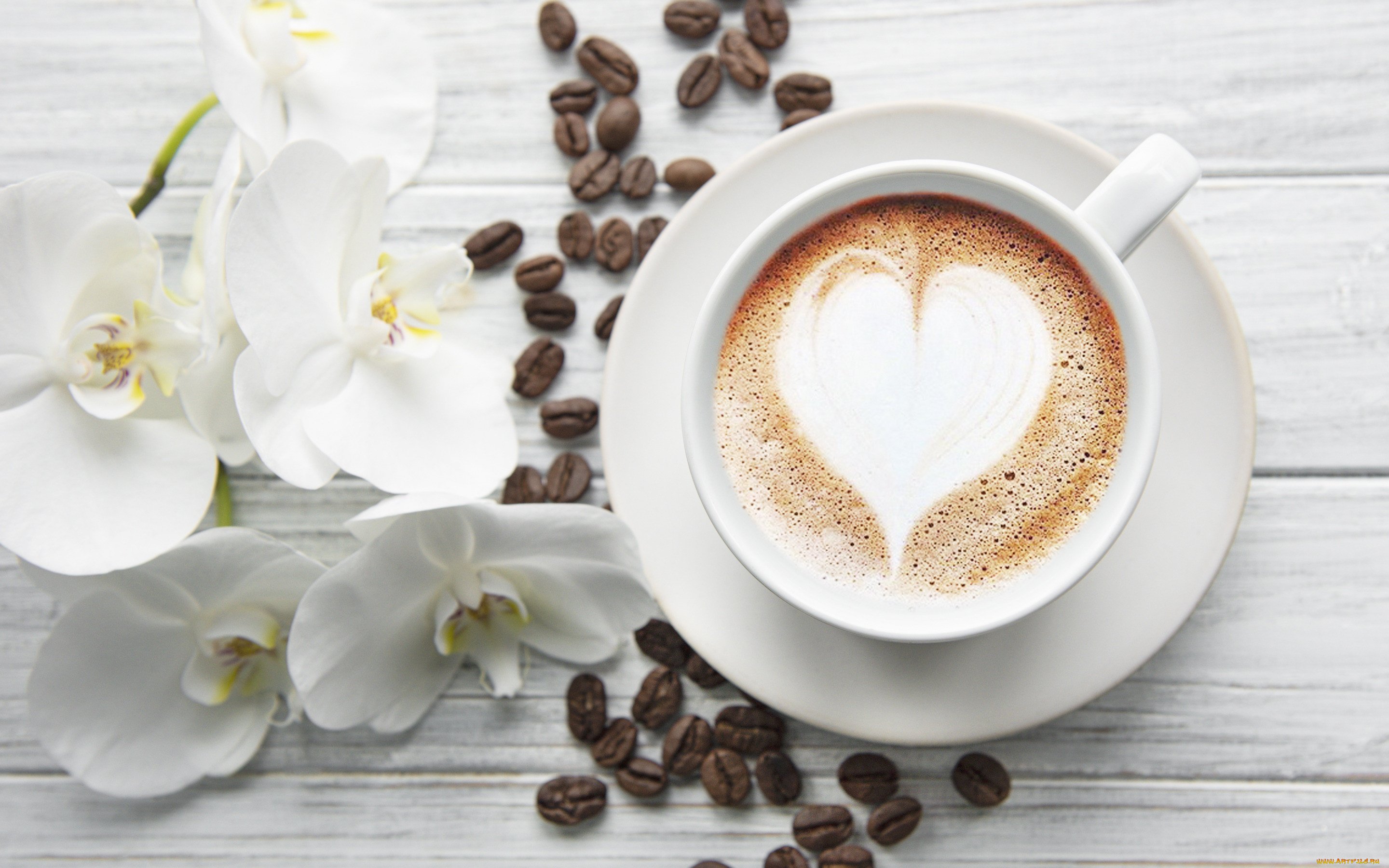 Чашка кофе с орхидеей